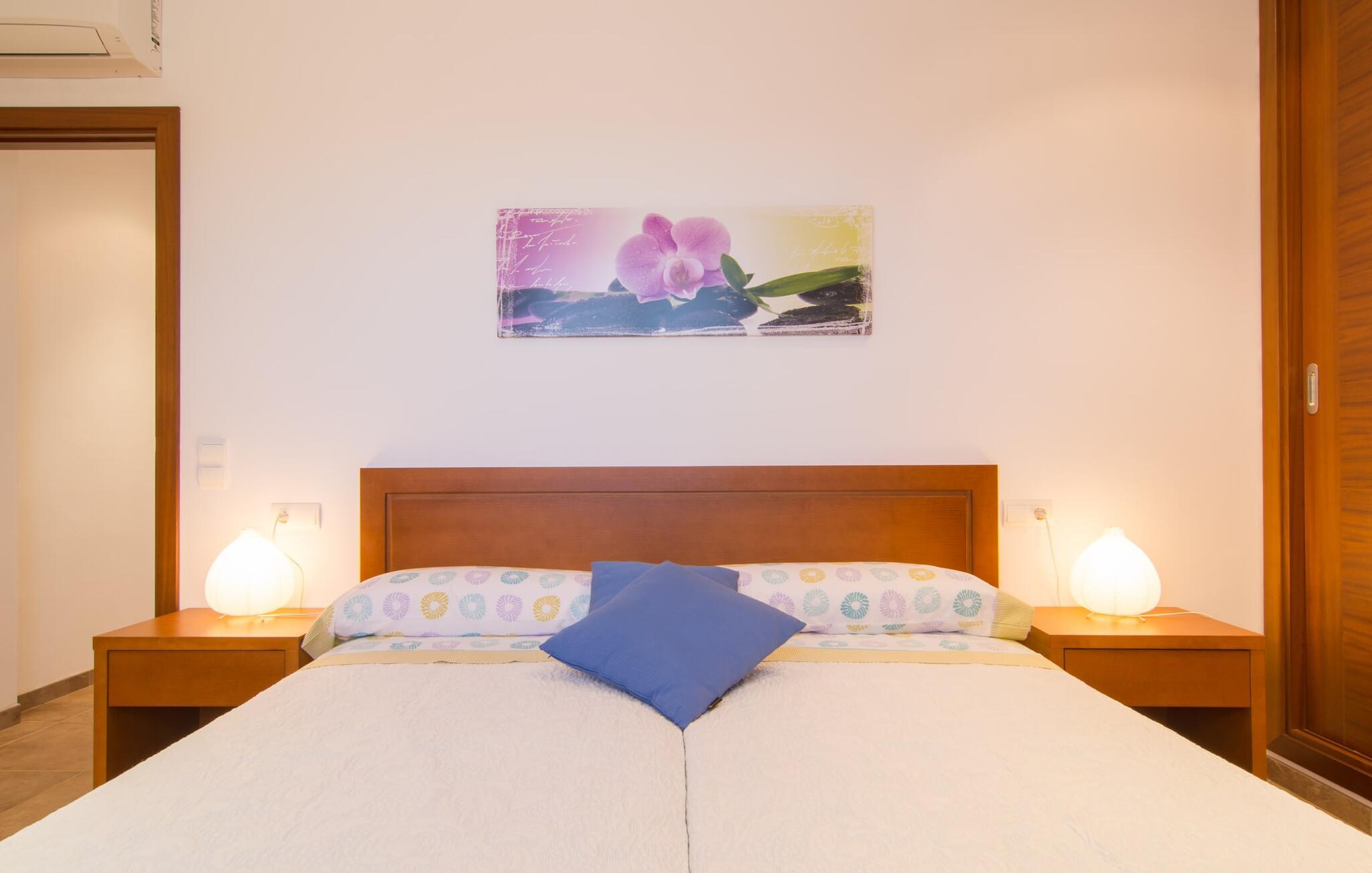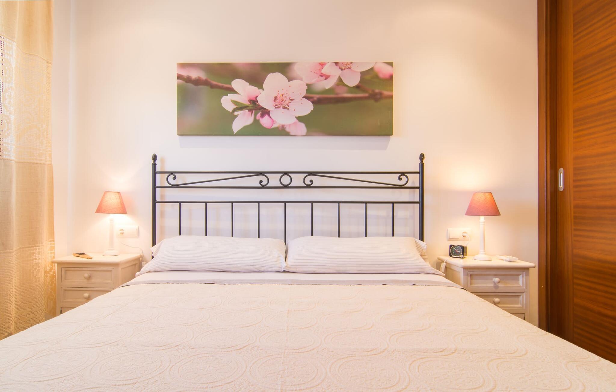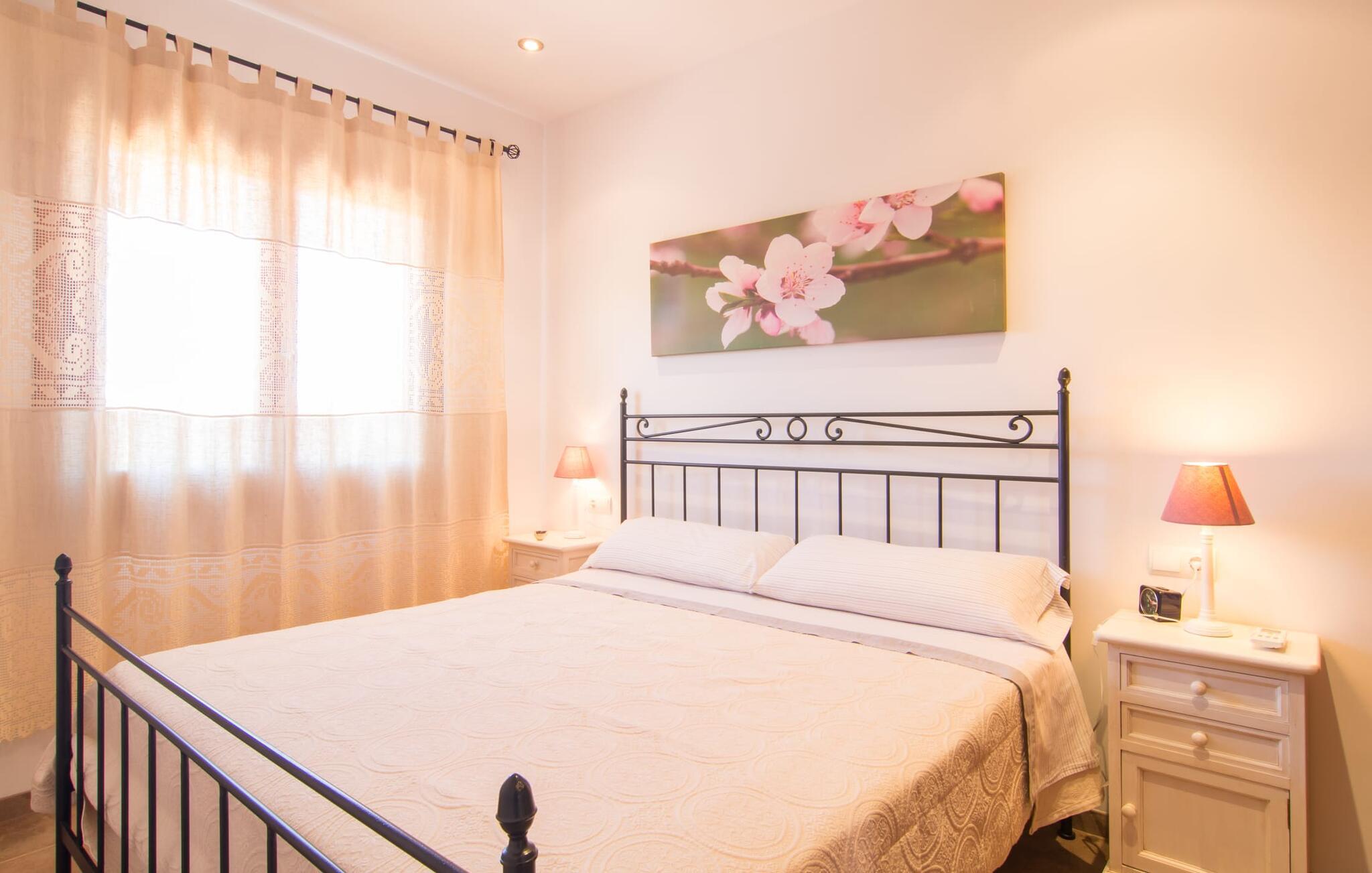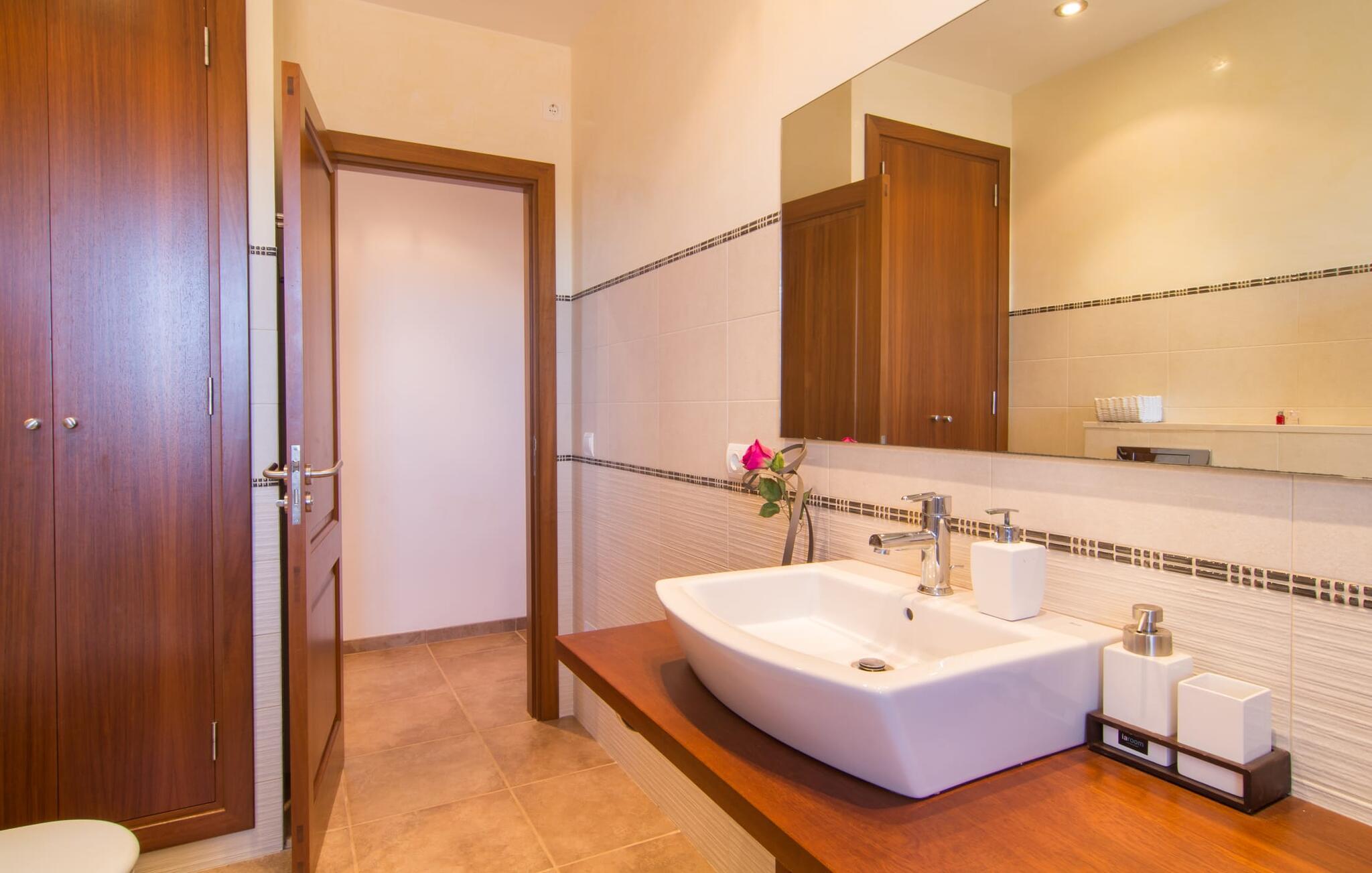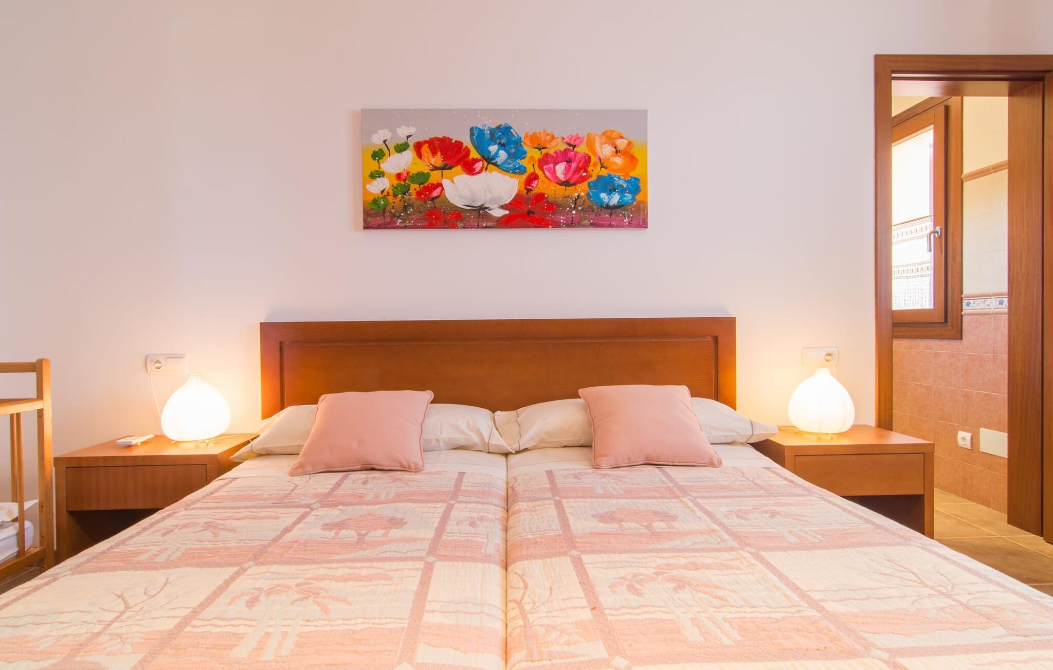 Nicht nur das Äußere lässt Sie rundum sorgenfrei zurück, auch das Innere des Hauses bietet nahezu alles, was das Herz begehrt. Die klassisch-mallorquinische Küche mit angrenzendem Wohn-/Essbereich bietet Platz für viele Dinge gleichzeitig. Während eine Person in der Küche ein leckeres Abendessen zaubert, kann eine andere dafür sorgen, dass sie kein wichtiges Spiel oder ihre Lieblingsserie im Fernsehen verpasst. Dank der ebenerdigen Bauweise der Villa sind die drei liebevoll eingerichteten Doppelzimmer nicht weit entfernt, die Ihnen jeweils ein Lächeln aufs Gesicht zaubern werden. Ruhige Nächte garantieren auch die Moskitonetze an den Fenstern, die vier tragbaren Ventilatoren und die Klimaanlage. Doch auch an kälteren Tagen erfüllt diese familienfreundliche Villa keine Wünsche und sorgt dank des Kamins für eine wunderbare Atmosphäre. Dies ist ein fantastischer Ort zum Entspannen und Erholen, perfekt für Familien mit Kindern.