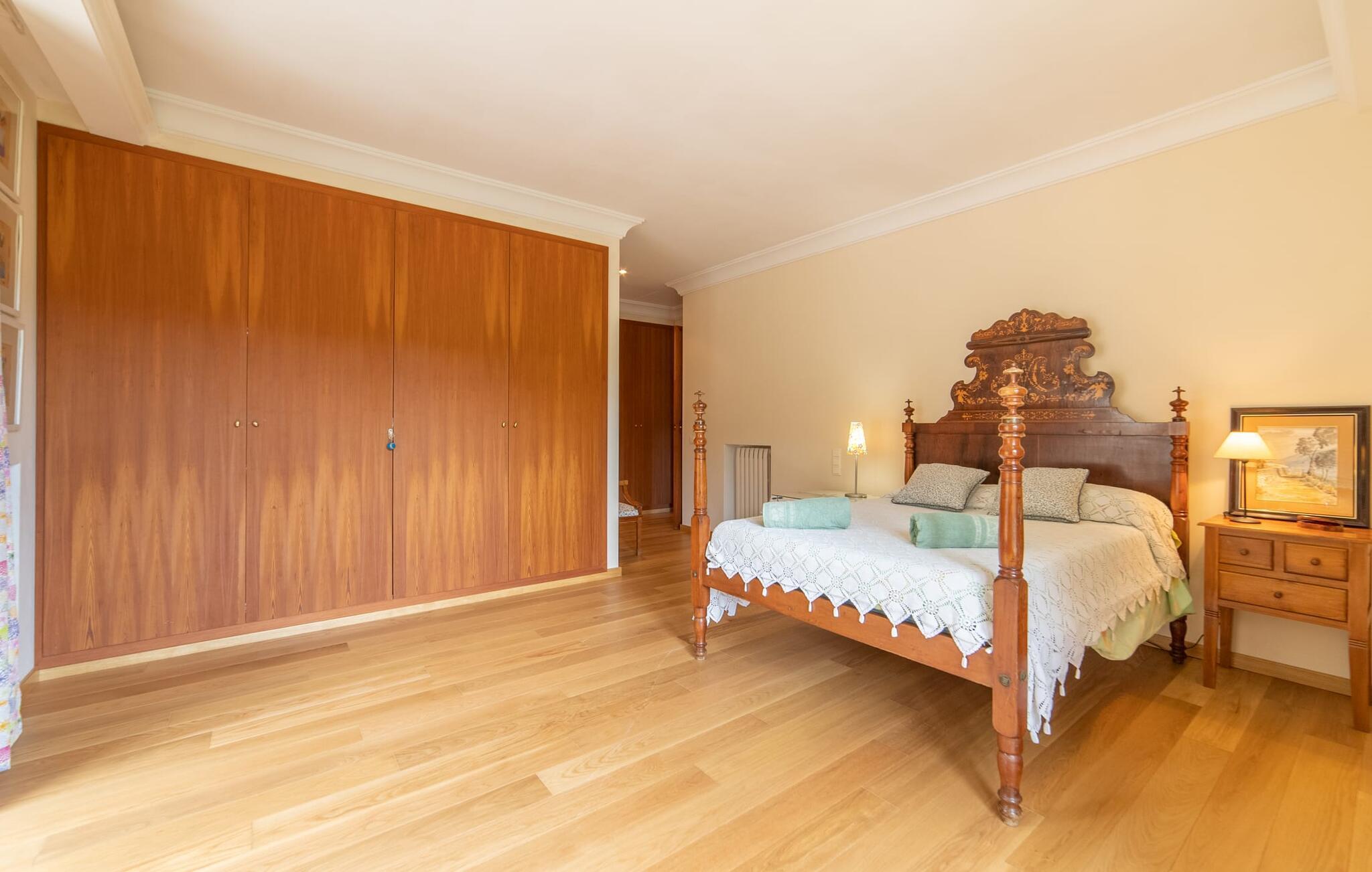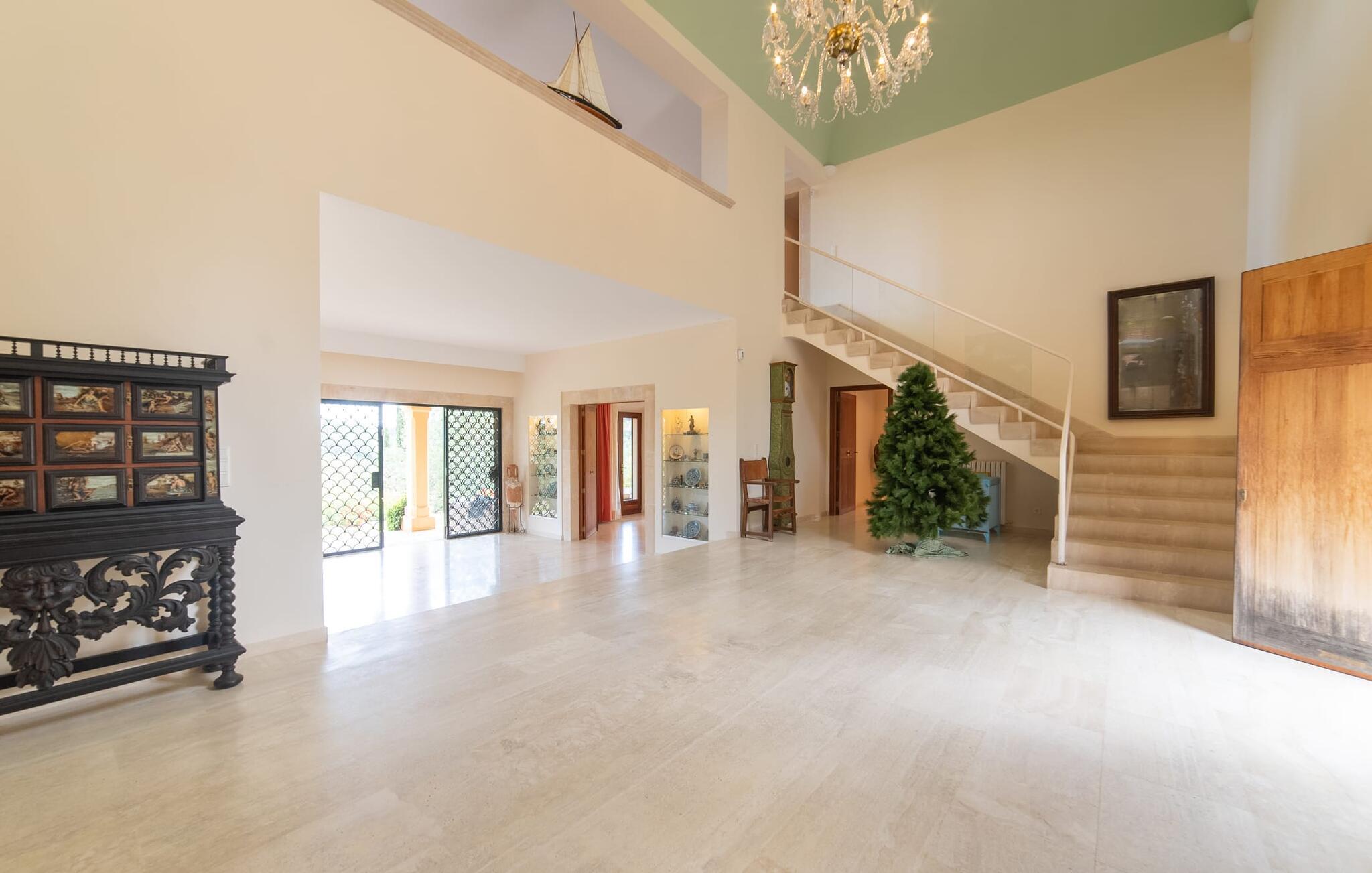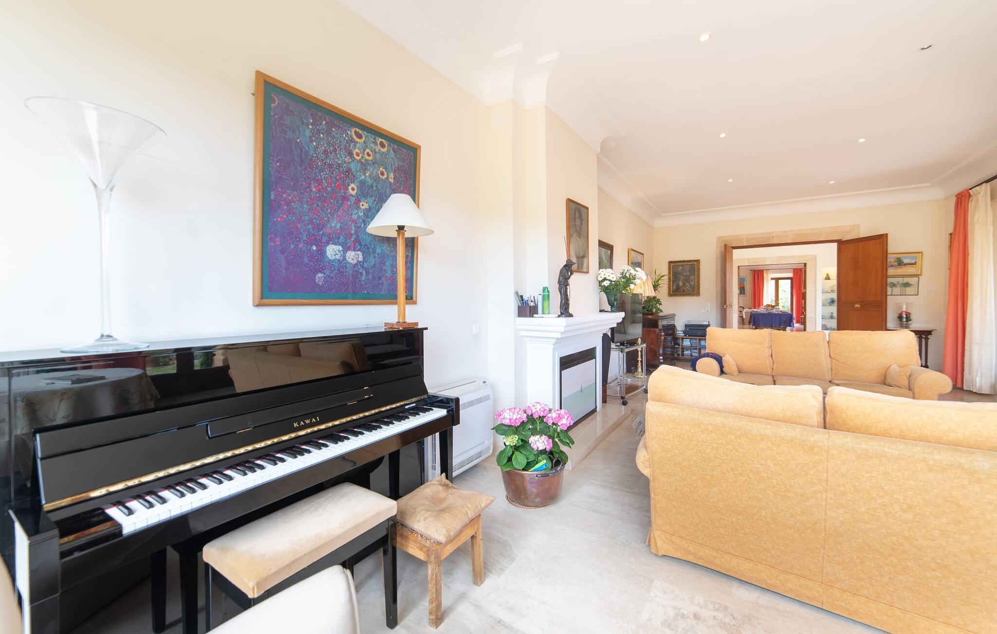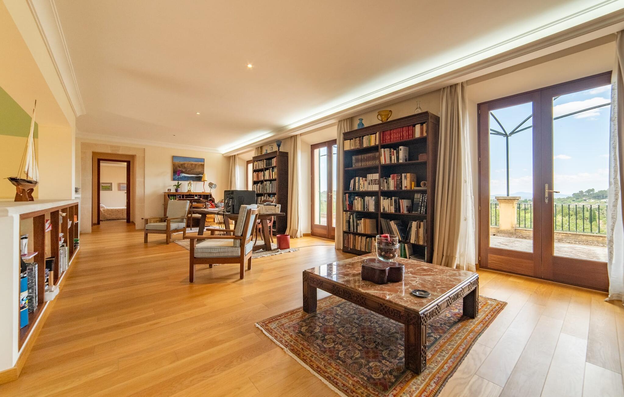 Von hier aus gelangt man direkt in das stilvolle und sehr großzügige Innere des Hauses. Der großzügige Wohnraum erstreckt sich über zwei Wohnebenen. Im Erdgeschoss gibt es ein großes Esszimmer und ein gemütliches Wohnzimmer mit Kamin und Klimaanlage. Auf dieser Etage befindet sich außerdem eine voll ausgestattete Küche, die ebenfalls viel Platz bietet, sowie ein gemütliches Schlafzimmer mit Doppelbett. Im Obergeschoss dieses Bauernhauses auf Mallorca befindet sich eine schöne Bibliothek. Außerdem gibt es noch die angenehmen vier Doppelzimmer, jeweils mit eigenem Bad. Im Obergeschoss gibt es außerdem eine große Terrasse, von der aus Sie eine spektakuläre Aussicht genießen können. „Ca Nostra de Esporlas“ – ein tolles Domizil für Naturliebhaber, Ruhesuchende und Individualisten!