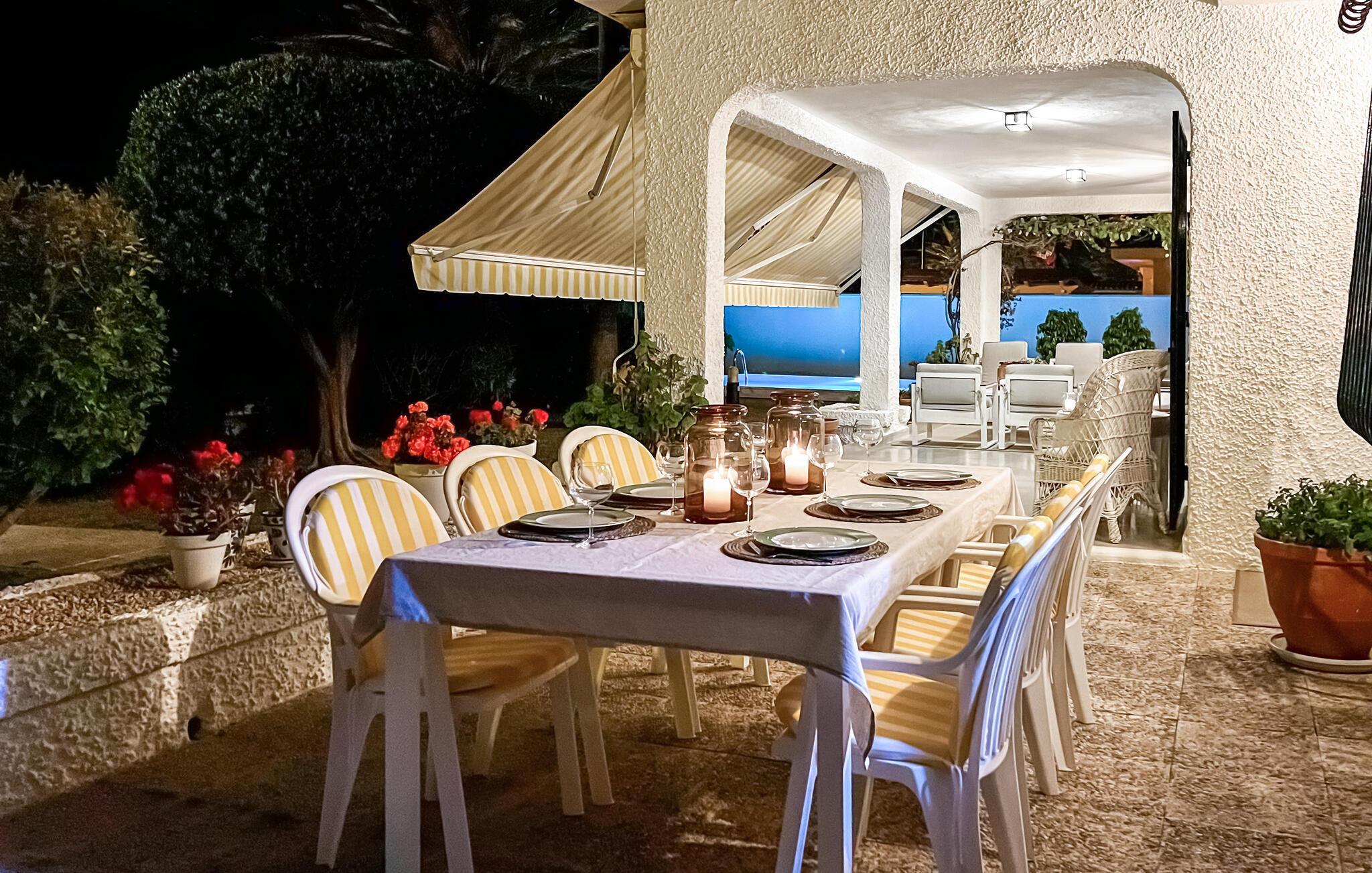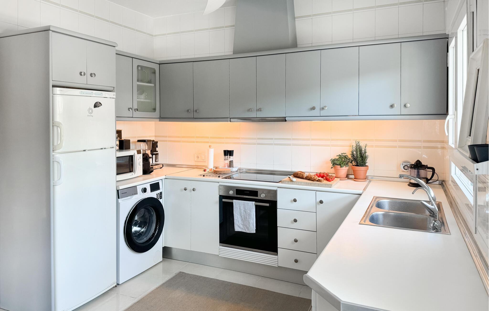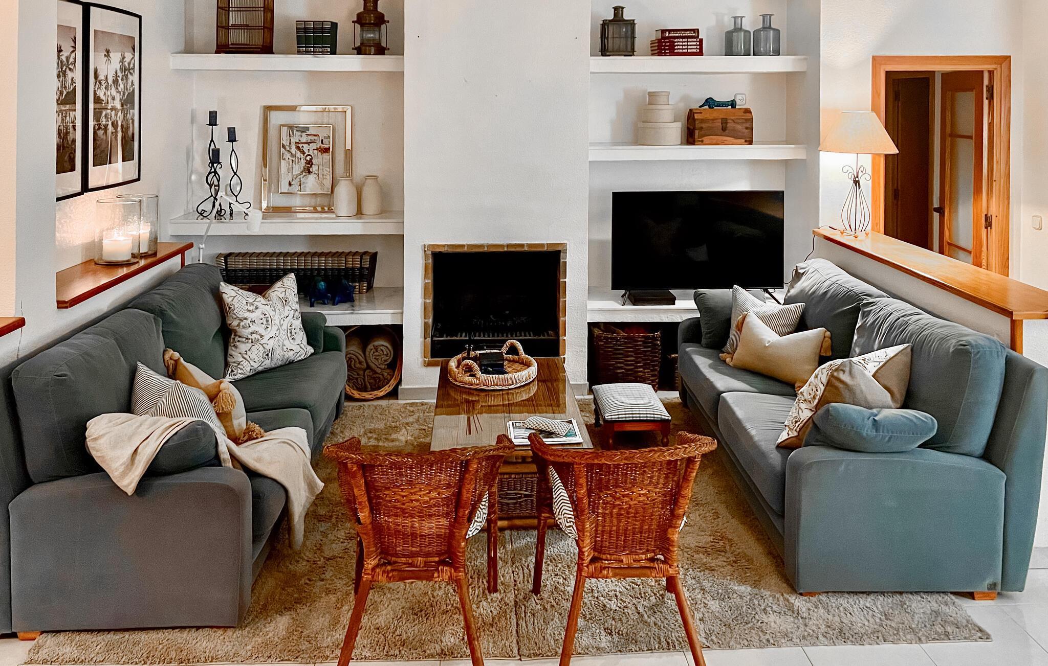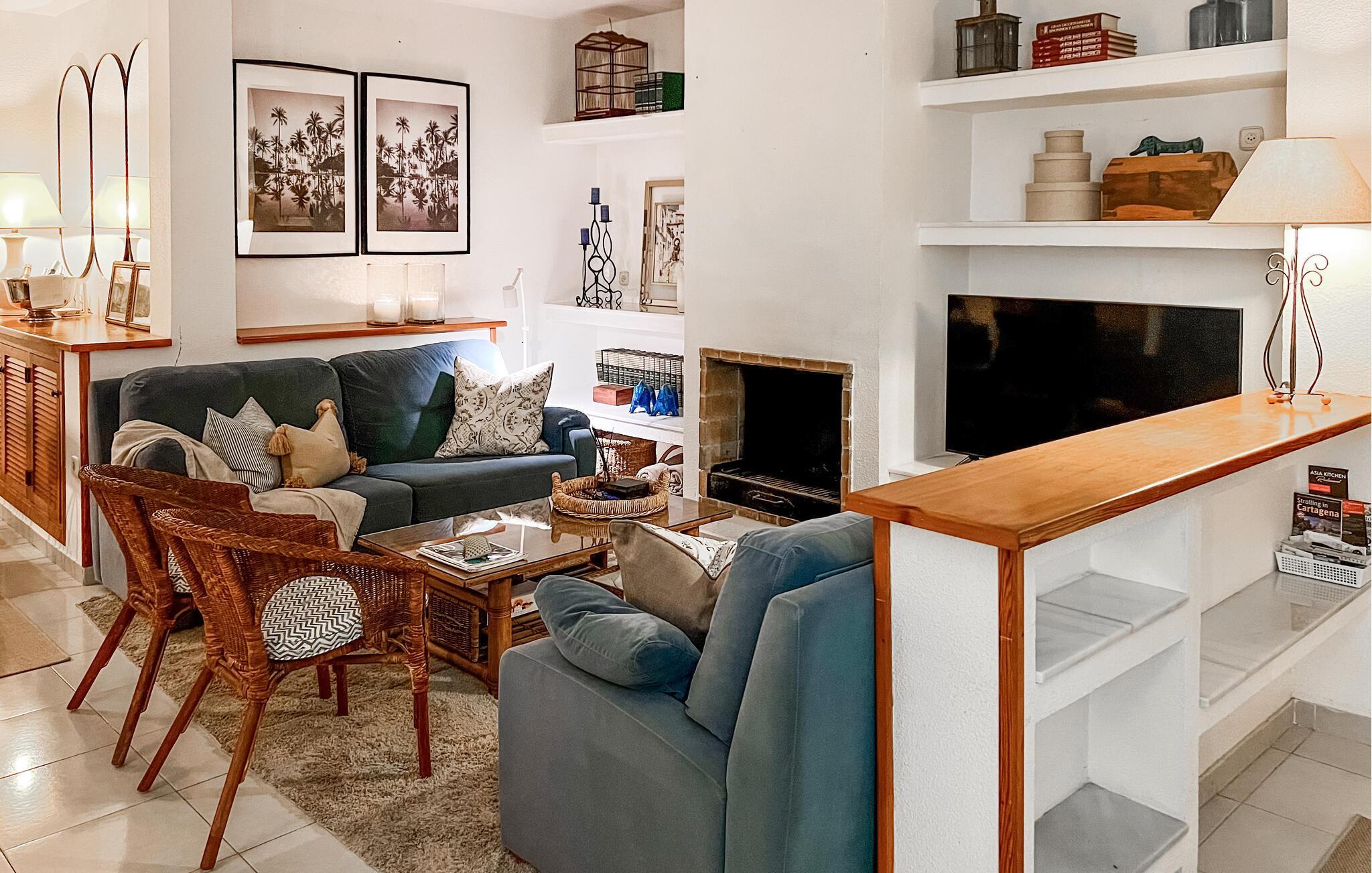 Dieses geschmackvolle Ferienhaus in Cabo Roig bietet Ihnen eine einladende und wohnliche Atmosphäre, die ideal für unvergessliche Tage mit Ihren Lieben ist. Im gemütlichen Wohnzimmer mit Kaminofen können Sie entspannen, während die gut ausgestattete Küche und das Esszimmer zu geselligen Mahlzeiten einladen. Erleben Sie erholsame Stunden auf den Terrassen, im gepflegten Garten oder bei einem Sprung in den Swimmingpool – perfekt für sonnige Tage und laue Abende.