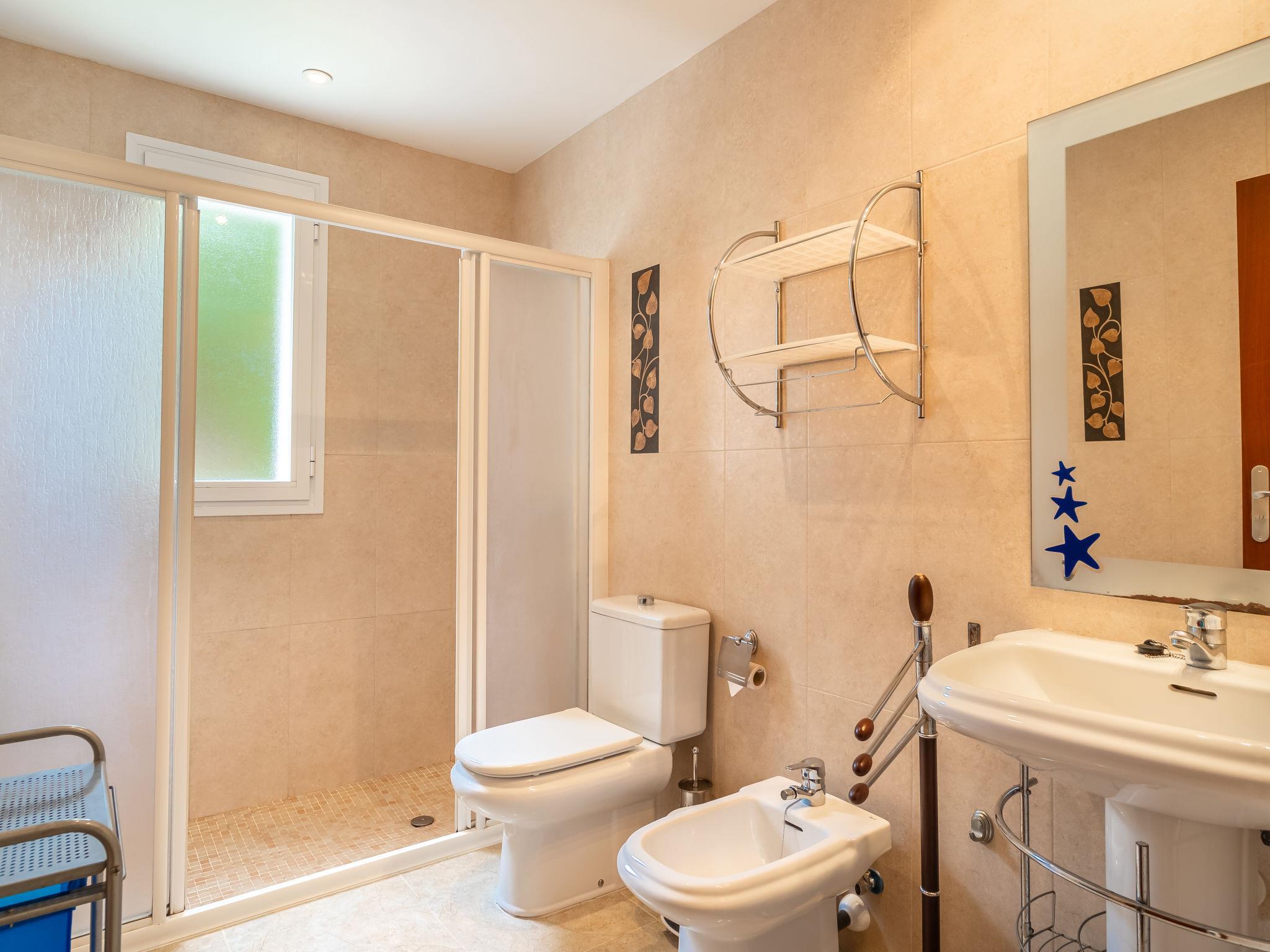 Sa Coma 2 km from Cala Millor: Large, cosy, comfortable single-family house "Sa Coma". 1 km from the centre of Sa Coma, 2 km from the centre of Cala Millor, 18 km from the centre of Manacor, in a central position in the residential district, 3 km from the edge of the forest, 2 km from the sea, 2 km from the beach, south-east facing position. Private: property 450 m2 (fenced), well-kept garden with lawn, swimming pool angular (6 x 3 m, seasonal availability: 01.Jan. - 31.Dec.). Outdoor shower, pool maintenance by the owner/gardener. In the house: air conditioning. Parking on the premises. Shop 3 km, grocery, supermarket 400 m, shopping centre 4 km, restaurant 400 m, bar 500 m, bakery 700 m, 10 minute walk to the centre, bus stop "Savines 1 (51002)" 1.4 km, railway station "Estación de Manacor" 18 km, sandy beach "Platja de Sa Coma" 2 km. Sports harbour 6 km, marina 6 km, golf course (18 hole) 9 km, surf school 6 km, sailing school 6 km, tennis 18 km, riding stable 3 km, walking paths from the house 10 km. Nearby attractions: Rafa Nadal Academy 16 km, Coves del Drac 8 km, Coves dels Hams 8 km, Es Trenc 50 km, Poblat Talaiòtic de Ses Païsses 15 km. Object suitable for 12 adults. The owner does not accept any youth groups. Please note: airfield 66 km from the property.