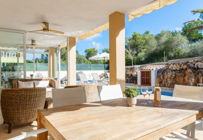 The holiday resort of Cala Murada itself is characterised by its fine sandy, gently sloping beach, which is particularly family-friendly. This is located just around a 10-minute walk from the villa and is thus quickly accessible. Small restaurants, cafés and shopping opportunities are also located nearby, as are the picturesque bays in the surrounding area, including Cala Domingos or Cala Antena. For excursions, the charming harbour towns of Portocolom and Porto Cristo are recommended, which inspire with Mediterranean flair, promenades and diverse restaurants. Thus, this holiday home combines tranquillity and relaxation with an ideal location for varied holiday days.