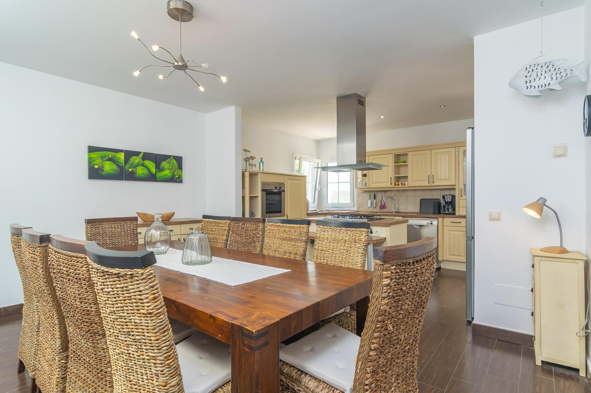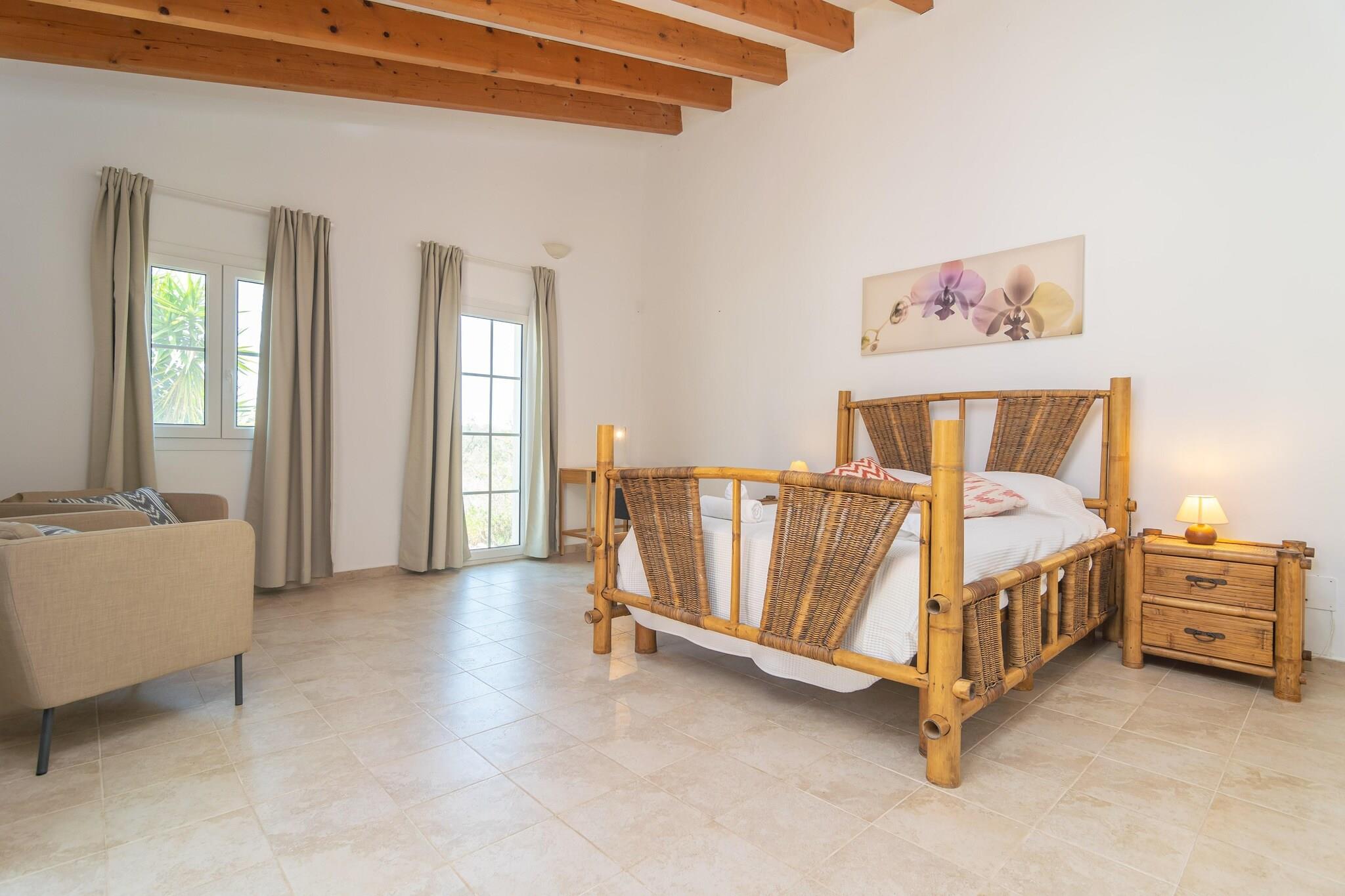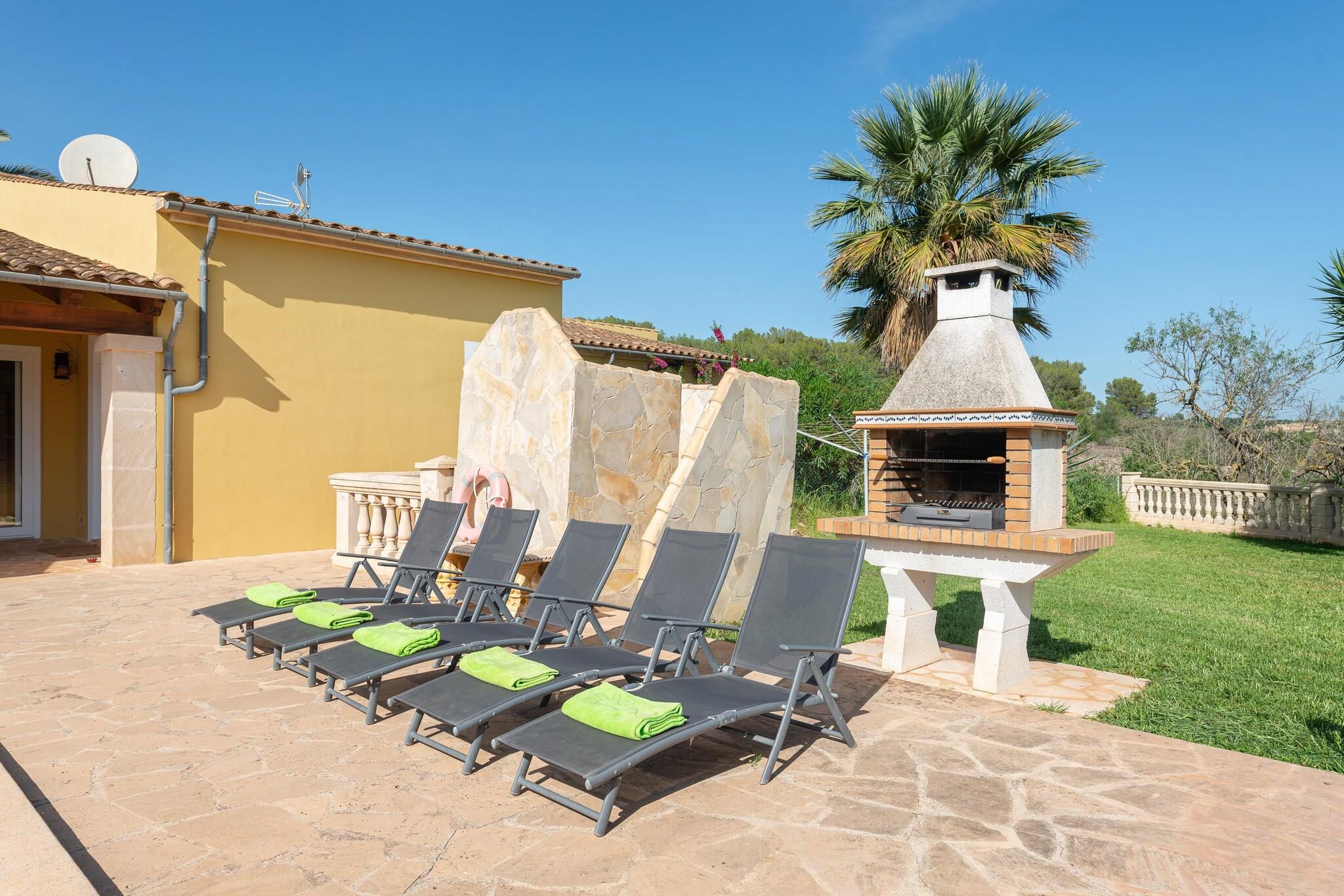 The exteriors are fantastic to enjoy the good weather on the island. You will be able to swim in the chlorine pool that sizes 10 x 5 meters and has a depth that ranges from 0.50 to 1.60 meters. Later on, bask in the sun the sun on the loungers and enjoy a delicious barbecue at the porch. The property is fenced and the privacy is total. The single-story interior offers a comfortable and welcoming style. In the large living room you can watch satellite TV. It is connected to the eat-in kitchen through an archway and the kitchen has a gas cooktop. In the house there are 5 bedrooms, all with a double bed except one with twin beds. Three of them have an en suite bathroom with a shower and there is also another bathroom with a bathtub and a toilet. The separate laundry room is equipped with a washing machine, iron and ironing board. The equipment is completed by a cot, a high chair, and 3 fans. The house is located on the outskirts of Cala Murada. Here you will find basic services such as any supermarket or restaurant. For everything else you can go to Felanitx. The area is full of different beaches and coves such as Cala Domingos, Cala Murada and Cales de Mallorca. The nearest golf course -Vall d'Or- is only 6.1 km away. Consult the advertiser for possible charges. Pets are not allowed. The holding of events is forbidden. There is exterior parking for 6 cars. Distances Beach: 4 km - Cala Murada Airport: 58.4 km - Son sant Joan Golf course: 6.1 km - Vall d'Or Town: 5.3 km - Cala Murada Train station: 18.3 km - Manacor Bus stop: 3.4 km - Cala Murada Ferry: 67.8 km - Palma de Mallorca Hospital: 19 km - Hospital de Manacor Guests are kindly required to dispose of all rubbish and ensure the property is properly tidied before departure. Should this not be the case, a charge of EURO90 will be deducted from the security deposit. Tourist license: ETV/15383Single Rental Registry: ESFCTU0000070230005709180000000000000000000ETV/153830Homerti - Central de Reservas CR/33 Heating (January - December): 25 EUR/Night (optional)