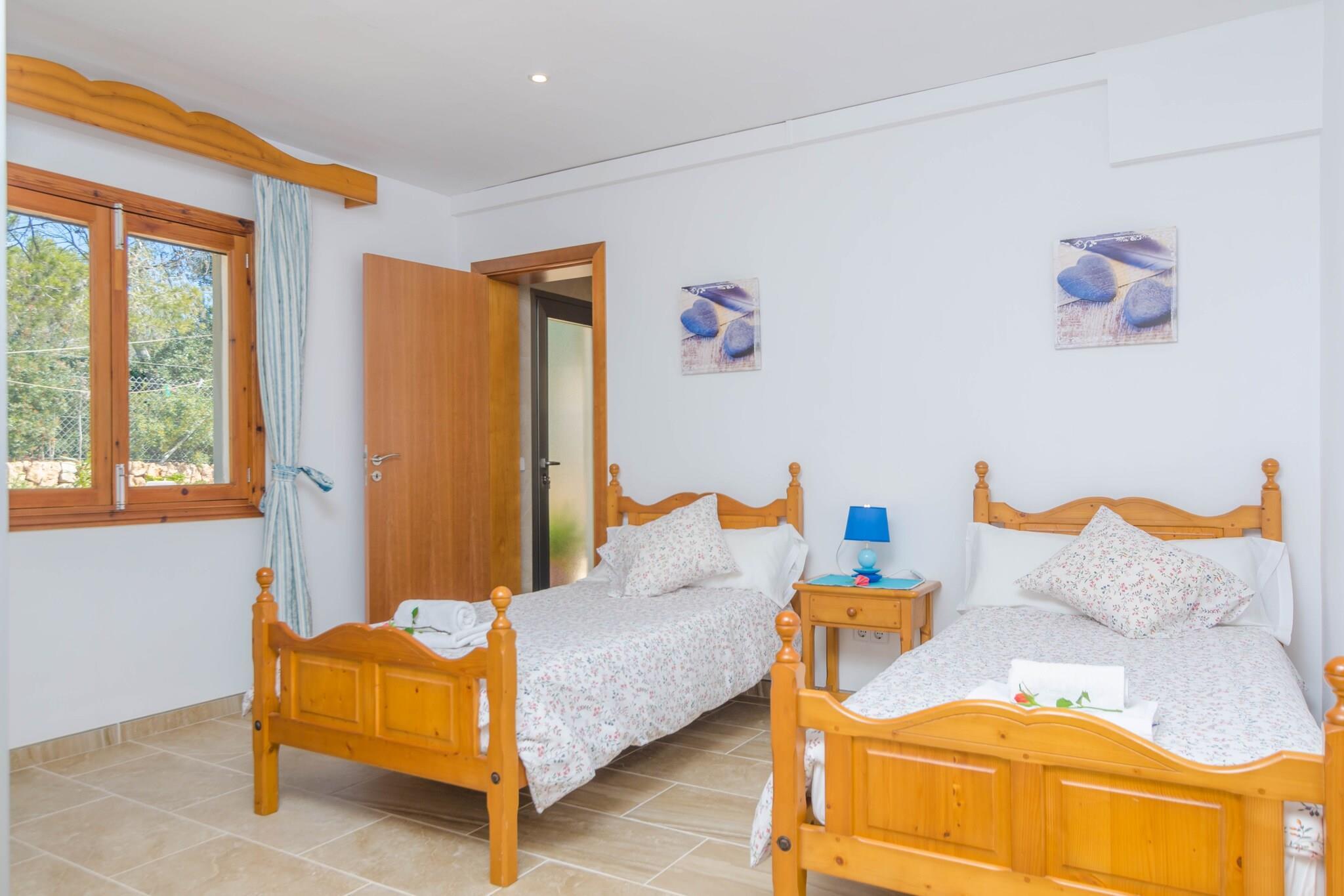 The exteriors are very beautiful. In front of the construction, with an ibizan air, you have a wonderful chlorine private pool, 8 x 4 m and 0.6 to 1.8 m depth. Next to it, there is a space where to enjoy the sun on the 9 sun loungers or a drink, as well as a furnished porch. Then, a terrace invites you to have breakfast or make barbecues in the fresh air. Inside the house, there is a lovely living-dining room with satellite television, air conditioning and wooden stove. The kitchen is equipped with gas hob. Both stays have access to the outside. As well as that, you have three dormitories with A/C, of which two of them feature a double bed, the other two single beds. Moreover, two of the bedrooms also have wardrobe and one of these even boasts an ensuite shower bathroom. Even so, there is also a second shower bathroom that services the entire house. A cot, a high chair as well as a radiator are also available. The laundry room has washing machine, iron and ironing board. The chalet is situated at the urbanisation of Cala Pi. Its white fine sand and crystal-clear waters beach has easy access. Moreover, in its surroundings there are other amazing coves and beaches such as Es Trenc or Sa Ràpita. Note: This accommodation is intended for families and guests over 25 years old who are looking for a peaceful stay. Bookings for parties or celebrations are not accepted. A copy of the identification document of all guests will be required to confirm the reservation. Consult the advertiser for possible charges. Pets are not allowed. The holding of events is forbidden. There is exterior parking for 1 cars. Distances Beach: 1.2 km - Platja de Cala Pi Airport: 34.1 km - Son Sant Joan, Palma Golf course: 17 km - Golf Son Antem Llucmajor Town: 0.001 km - Cala Pi Train station: 42.3 km - Estació Intermodal, Palma Bus stop: 1.1 km - Cala Pi Ferry: 42 km - Port de Palma Hospital: 38.6 km - Hospital Son Llàtzer, Palma Tourist license: ETV/3834The Ecotasa (tourist tax) must be paid cash on site when checking in. The amount varies between 0.55EURO/night and guest during the low season and 2.2EURO/night and guest during the high season. The tax is reduced by half from the 9th day of your stay. All guests have to pay the Ecotasa, except people under 16 years. You will have to pay the deposit amount at the arrival to the owner.