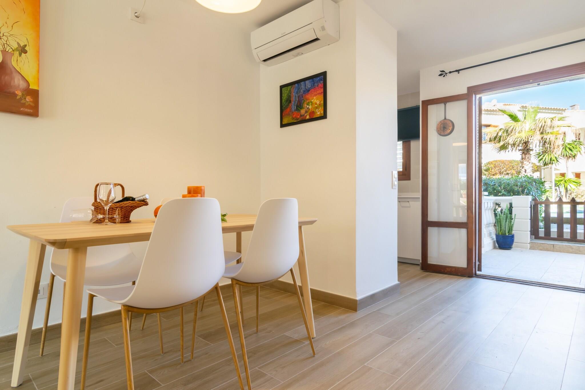 The beautiful residential offers a spectacular shared chlorine pool that measures 17 x 3 meters and has a depth ranging from 1 to 1.9 meters. The attached children pool sizes 3 x 2 meters and the depth is 0.5 meters. So when you return from the beach you can cool off in the pool and then go to the apartment private terrace where you can cook a delicious barbecue. On the other side of the house there is also a porch where you can have a drink at sunset. The apartment is located on the ground floor, and from the terrace you have direct access to the shared pool. The interior offers bright and cosy spaces such as the living dining kitchen -with AC- where you can watch TV with satellite channels and cook on the ceramic hob. The washing machine is in the kitchen and you will also find an iron and ironing board. In the accommodation, you can rest in 2 bedrooms (both with a fan), one with a double bed and the other with 2 twin beds. A bathroom with a shower completes the apartment. And if you travel with your baby we can provide a cot and a high chair. Cala Ratjada is a great tourist destination within the island of Mallorca. It offers all the needed services for an independent stay in addition to a beautiful white sandy beach, Cala Agulla, although there are other beautiful beaches in the area such as Cala Mesquida or Cala Torta. The area has a great nightlife and you can visit nearby monuments such as the the Caves of Artà or the Capdepera Castle. Golf lovers will be able to enjoy their favourite sport on the Capdepera Golf course, which is just 7.7 km away. Pool opening hours: from 7 a.m. to 10 p.m. Please, do not disturb between 1 and 3 pm. Consult the advertiser for possible charges. Pets are not allowed. The holding of events is forbidden. Please note that the opening and closing dates of the communal pool are subject to community regulations and may vary depending on the season, without prior notice. Updated information will be available upon your arrival. Distances Beach: 0.950 km - Cala Agulla Airport: 81.6 km - Son Sant Joan Golf course: 7.7 km - Capdepera Golf Town: 1.4 km - Cala Ratjada Train station: 32.5 km - Manacor Bus stop: 0.290 km - Cala Ratjada Ferry: 46.7 km - Port d'Alcúdia Hospital: 30.3 km - Hospital de Manacor Tourist license: ETVPL/14252Single Rental Registry: ESFCTU00000702300005594100000000000000000ETVPL/142522The Ecotasa (tourist tax) must be paid cash on site when checking in. The amount varies between 0.55EURO/night and guest during the low season and 2.2EURO/night and guest during the high season. The tax is reduced by half from the 9th day of your stay. All guests have to pay the Ecotasa, except people under 16 years. You will have to pay the deposit amount at the arrival to the owner. Electricity (January - December): 0.30 EUR/KW (mandatory)