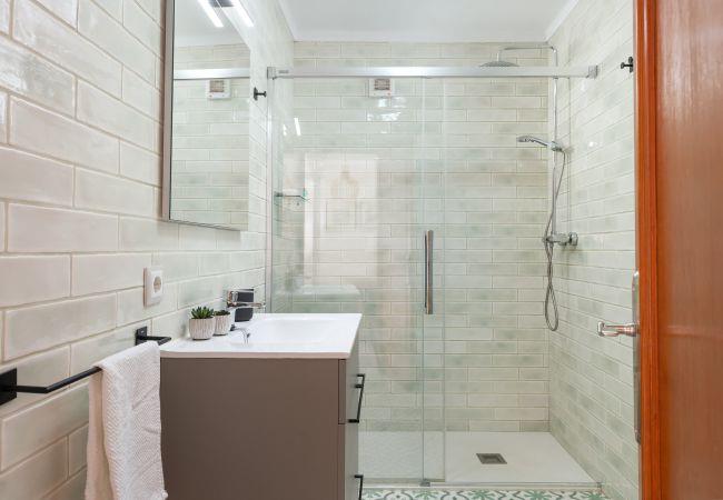 Can Marc consists of a living room and a separate kitchen. There are two bedrooms, one with a double bed and the other with two personal beds, and a bathroom with a shower and bathtub.