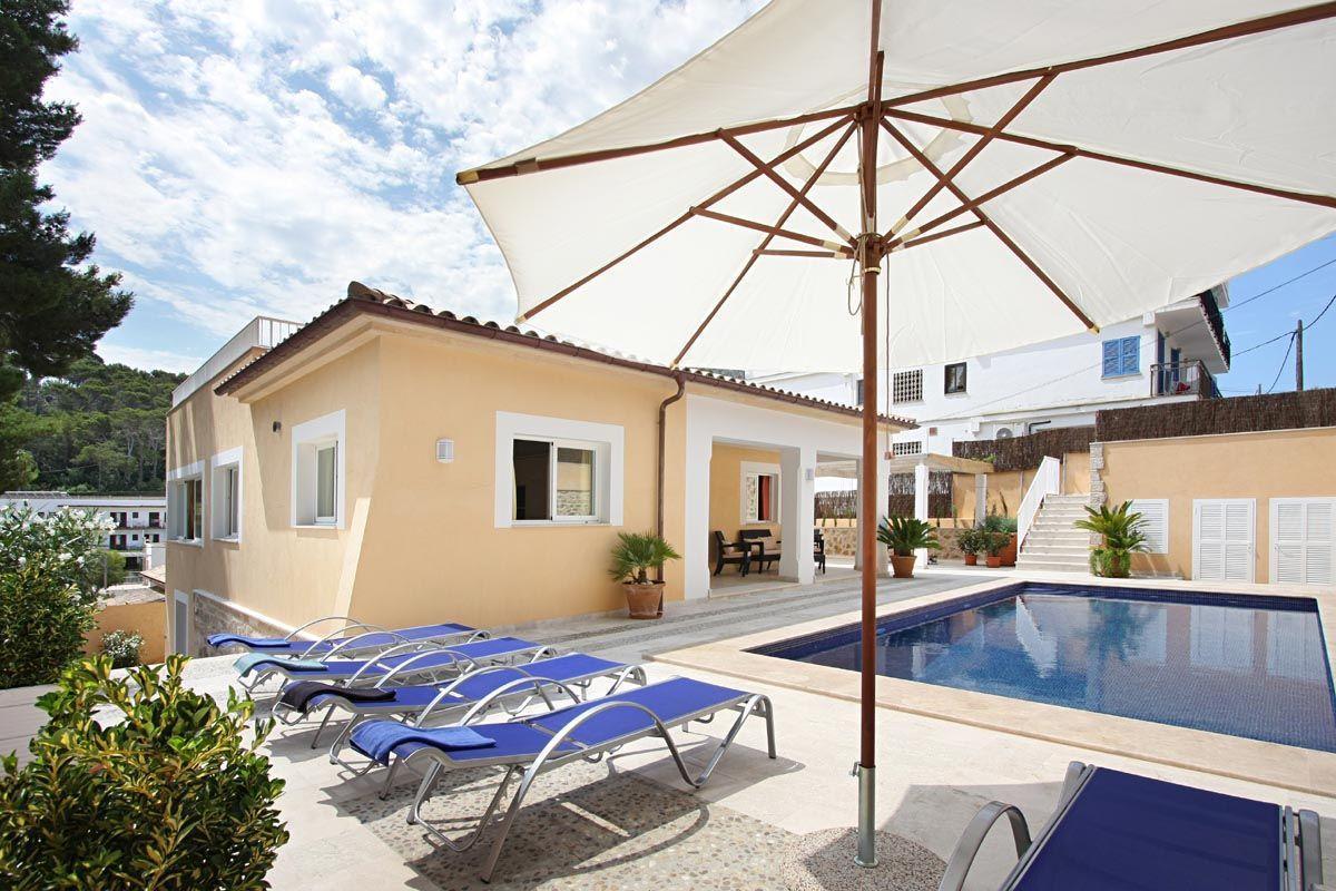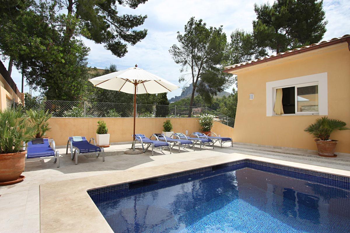 All in all, Casa Medina is ideal for a family holiday. It is located right in the centre of the residential area of Cala San Vicente, close to other buildings and also very close to the beaches, restaurants and other services of this popular and beautiful area, and finally, it is worth mentioning that villa Medina has free Internet connection via Wi-Fi and a ping-pong table Cala San Vicente- 4 bedrooms (2 double and 2 twin bedrooms)- 5 bathrooms (4 en suite and a toilet)- Air conditioning in the bedrooms, living room and kitchen- Internet connection (Wi-Fi)- Dishwasher and washing machine- Satellite TV and DVD- Ping-pong table- Size of the swimming pool: 4 x 8 m. (approx.)- POOL TOWELS- DISTANCE TO BEACH: 325 m. (approx.).- DISTANCE TO VILLA: In the centre of Cala San Vicente