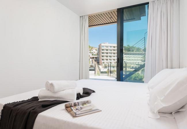 Mirador Blue L is a newly built luxury duplex apartment for 5 people located in front of the Cala Sant Vicenç beach with a garden, WIFI and AACC.