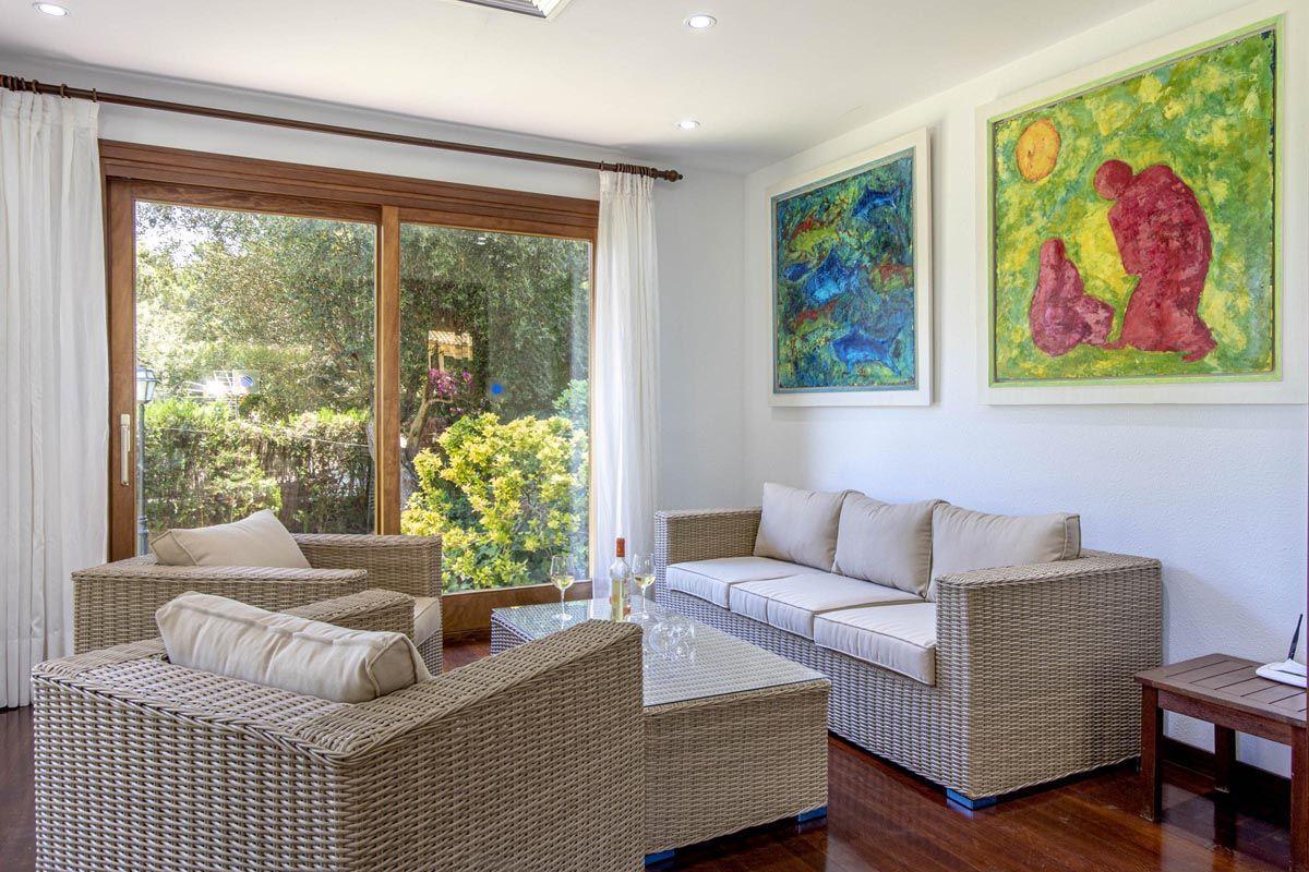 This wonderful house with large surrounding gardens and beautiful mountain views is located in the centre of the peaceful urbanisation of Cala San Vicente. The cosy interior is beautifully decorated, and perfectly conveys the love and attention that has been given to it by its owners. The entrance welcomes us into a spacious and bright dining room. On a slightly lower level is a lounge with two comfortable sofas and delightful views of the covered terrace. The rustic style kitchen is fully equipped with dishwasher, fridge-freezer, microwave, oven, ceramic hob and all the other necessary appliances for this type of holiday home. The sleeping area consists of 3 bedrooms, all of them equipped with air conditioning. There is a double bedroom with an en-suite bathroom with shower, and two twin bedrooms sharing a full bathroom. Although the interior of the property is truly remarkable (the top quality wooden parquet flooring deserves a special mention), the main attraction of this property is its spectacular garden, as well as its fantastic swimming pool of colossal dimensions (12 x 7 mts.) and crowned with a small waterfall in one of its corners. In the garden there is also a generously sized barbecue, with which you can put your culinary skills to the test and savour the result in the idyllic surroundings that this property offers. In short, Villa Formosa is ideal to enjoy with the family, as the youngest members of the family have a large garden area with lawn where they can spend endless summer afternoons playing outdoors. And as if all this were not enough, the fact that the beaches and restaurants of Cala San Vicente are within walking distance is just the icing on the cake. -