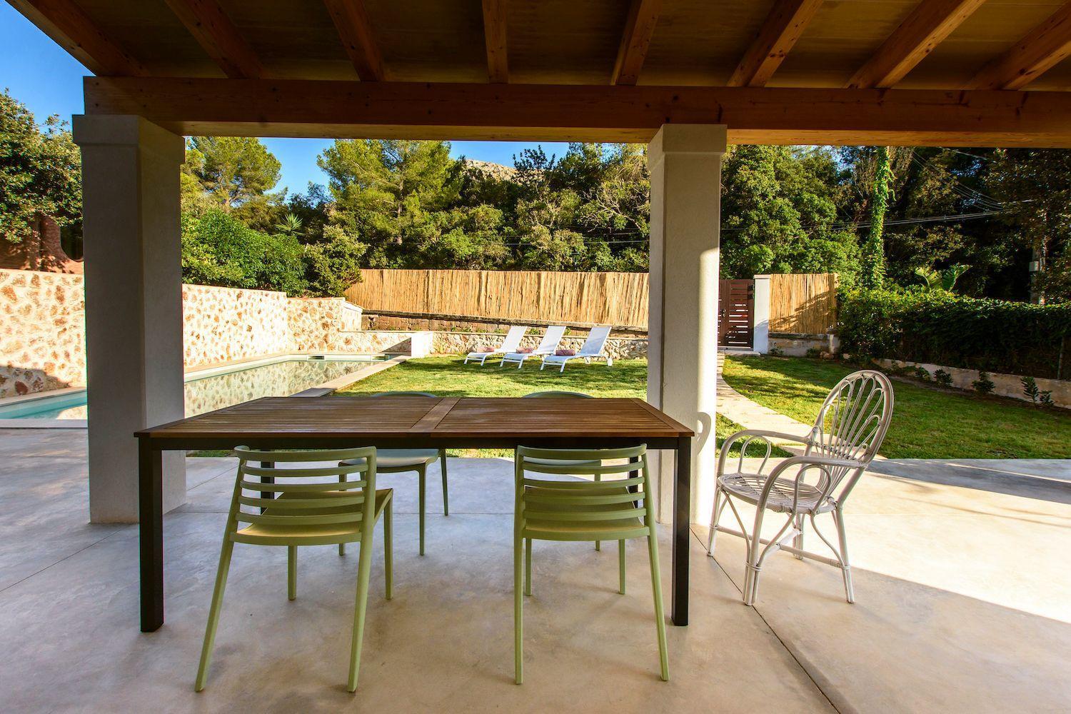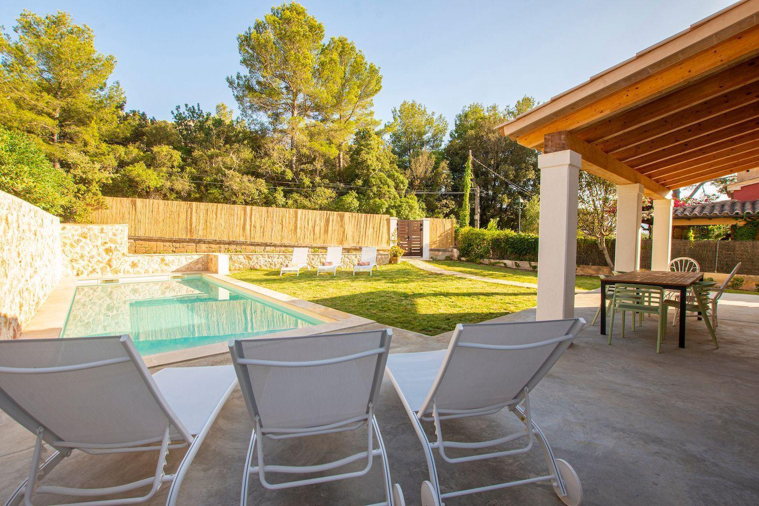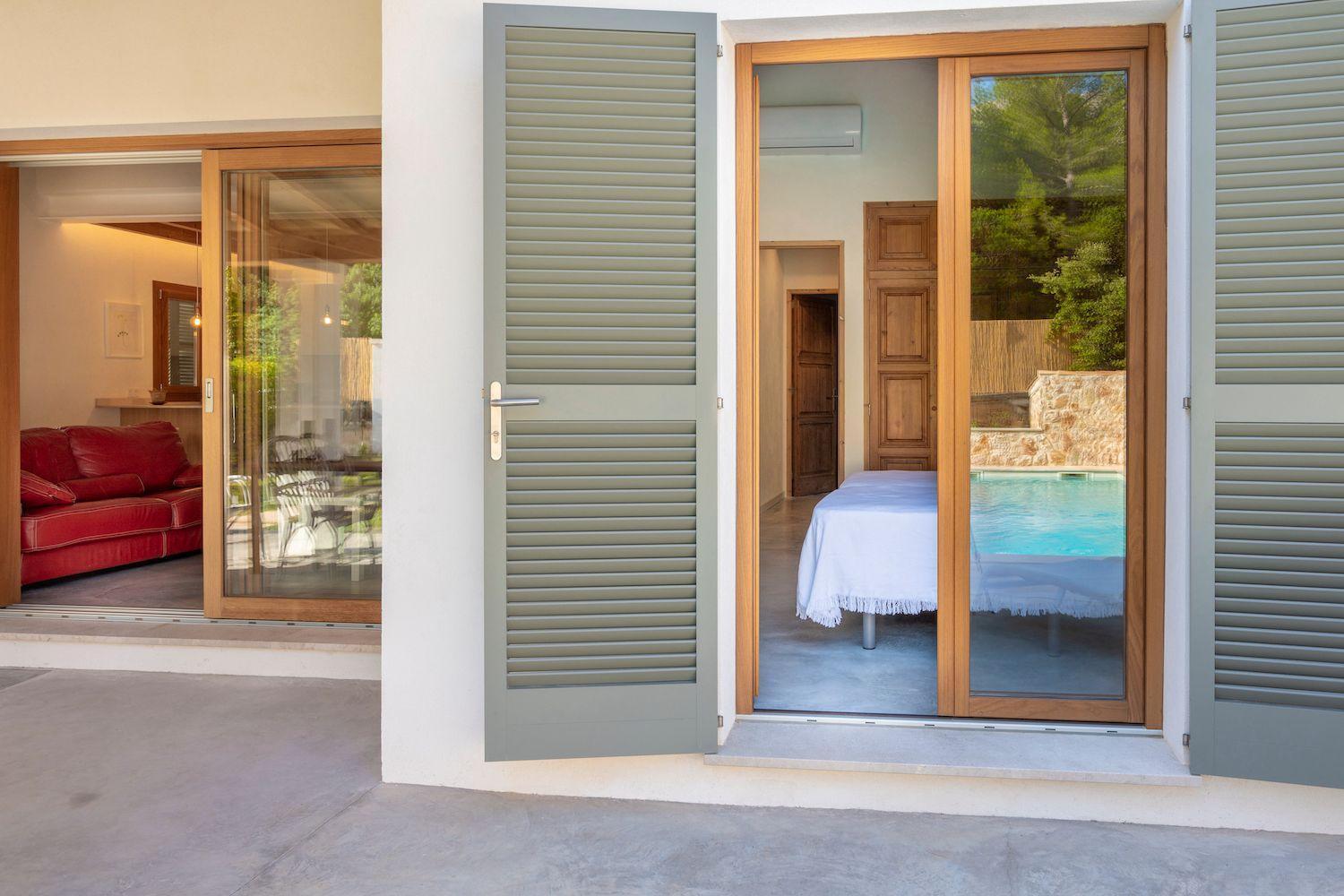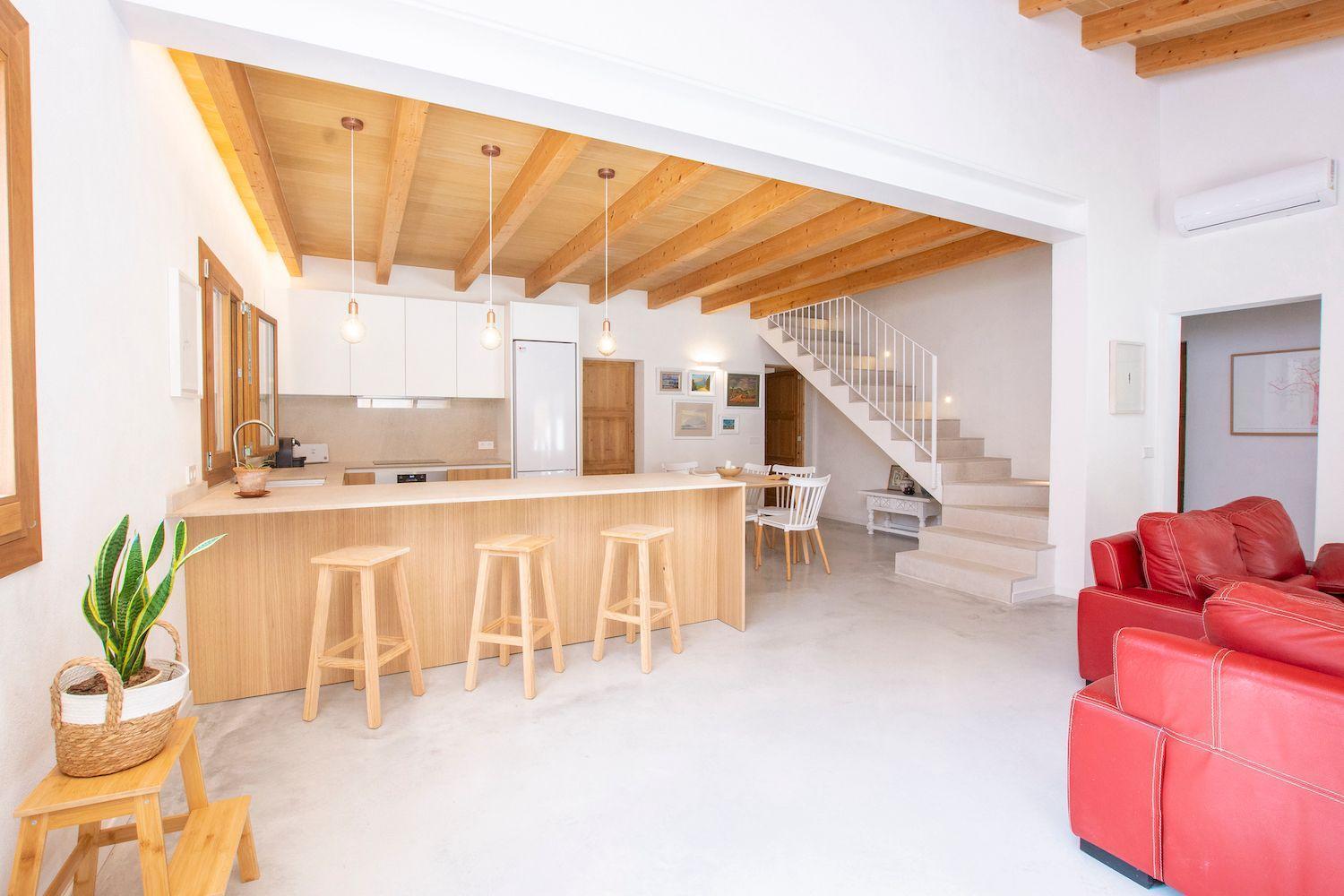 The house was renovated and completed in June 2022 using high quality materials and in compliance with new energy and environmental regulations. The interior is spacious and bright, with modern furnishings. All bedrooms are located on the ground floor (please note that there is a locked and inaccessible storage room on the upper floor). The living-dining room has a cosy sitting area with Smart TV and hot and cold air conditioning for pleasant evenings during the autumn or spring holidays or the hottest days of summer. The modern kitchen is equipped with appliances such as dishwasher and oven. There are three nice bedrooms, two bedrooms with single beds and another bedroom with a double bed and a bathroom en suite. There is another bathroom with shower. This is a perfect option for families who want to have their own private villa and pool but also have the beautiful bay of Cala Molins nearby, why not have it all?