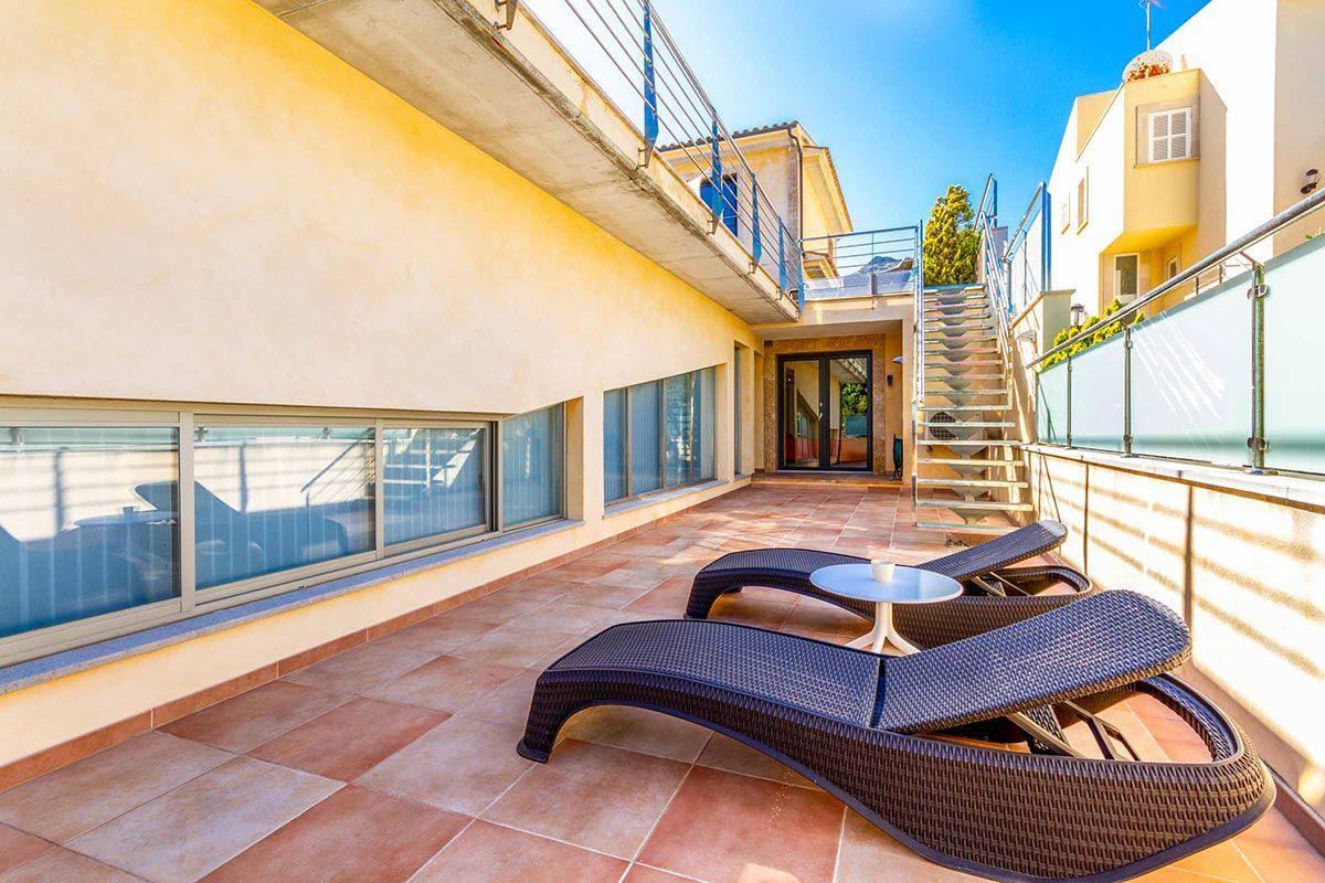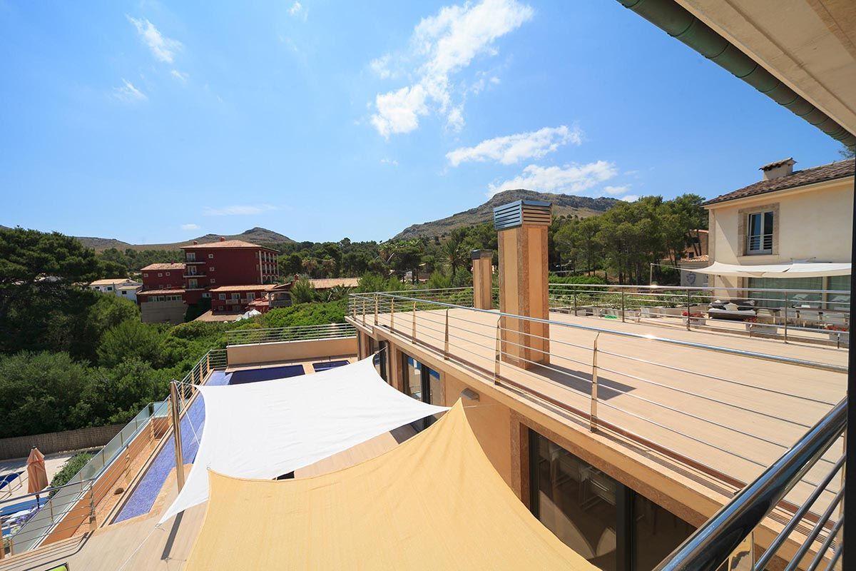 This avant-garde property situated in Cala San Vicente enjoys a unique and privileged location, just 200 metres from the beach of Cala Barques, and with fantastic views from the terrace towards the sea and the ever-imposing cliffs of Cavall Bernat in the distance.