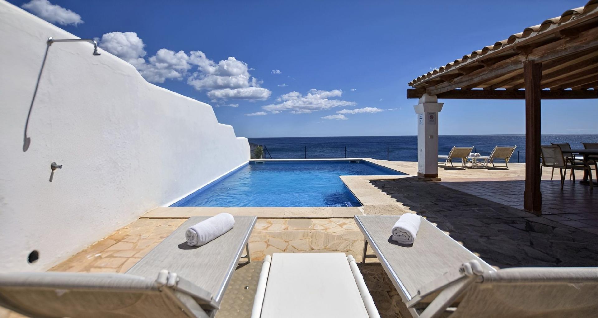 This wonderful Villa offers spectacular panoramic sea views. On the southwest coast, in the area of Cala Dor, only a few minutes away from the beaches of Cala Serena and Cala Ferrera, just above the rocks it is situated in an unbeatable location! The ibizencan architectural style with mediterranean furnishings make this house a real dream holiday home.