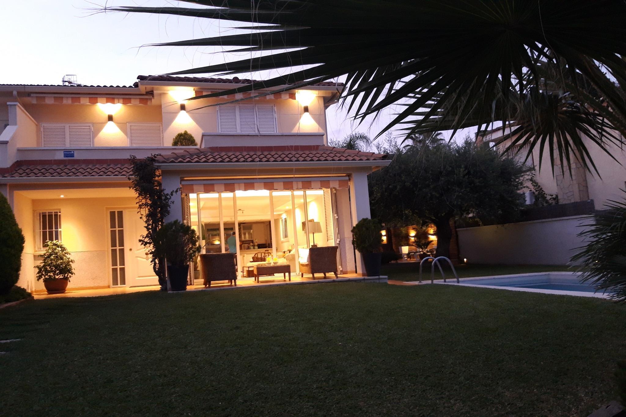 Semi-detached villa with private swimming pool only 300m from the extensive sandy beach and the longest beach promenade in Cataluña. The house is situated in Calafell in the Baix Penedes region. This area is well-known for its excellent wines and cavas which can be tasted in the different wine cellars. The town has a golf court and an attractive marina and moreover there is an interesting range of different restaurants, modern night clubs, cinemas and bars where you can enjoy the night life. The town offers village festivities all year around where the visitor is very much welcome to participate together with the friendly local people. The villa is oriented towards the South and is situated in a quiet neighbourhood only 300 m away from the beach. The distribution of the house is the following: On the ground floor there is a living-dinning room with direct access to the garden and the swimming pool, an open kitchen totally equipped with access to the external dining-terrace, a double bedroom and a bathroom. The first floor has three double rooms, two of them with own terrace, and one bathroom.