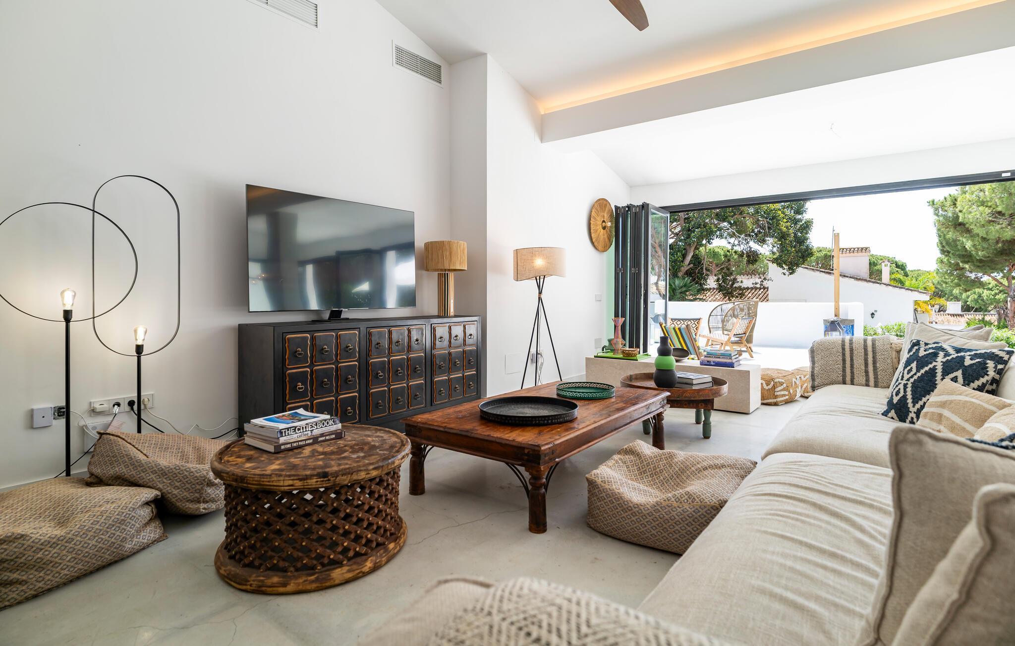 Diese geräumige und geschmackvoll eingerichtete Villa verwöhnt Sie mit hellen, eleganten Räumlichkeiten, in denen Sie sich auch mit einer größeren Gruppe während eines geselligen Urlaubs wohlfühlen werden. Zaubern Sie in der hochwertigen Küche kulinarische Highlights und zelebrieren Sie Ihre Mahlzeiten am langen Esstisch. Machen Sie es sich auf der herrlichen Sofalandschaft gemütlich, streamen Sie einen Film oder nutzen Sie die gemeinsame Zeit für gute Gespräche bei einem Glas Wein.