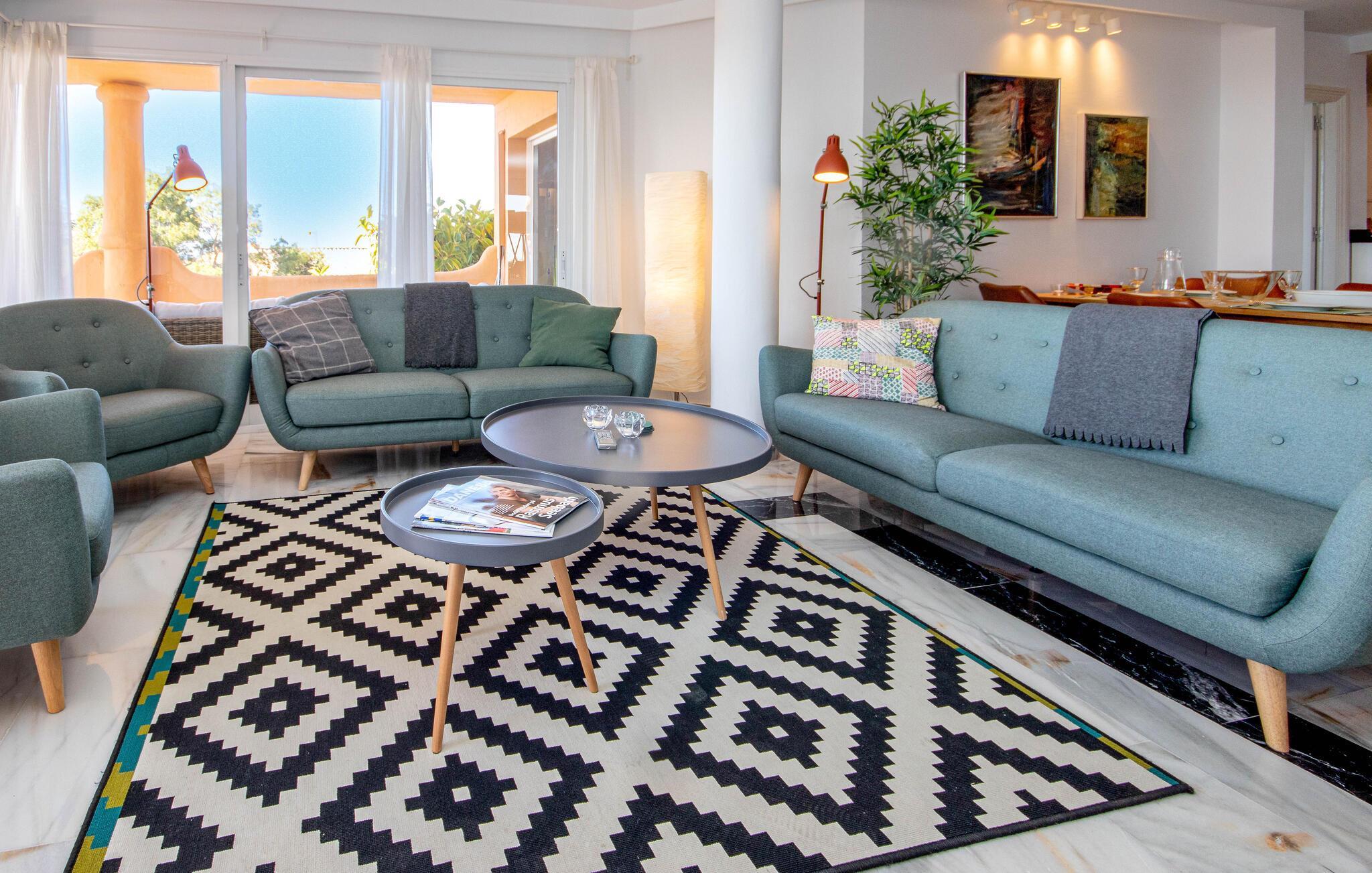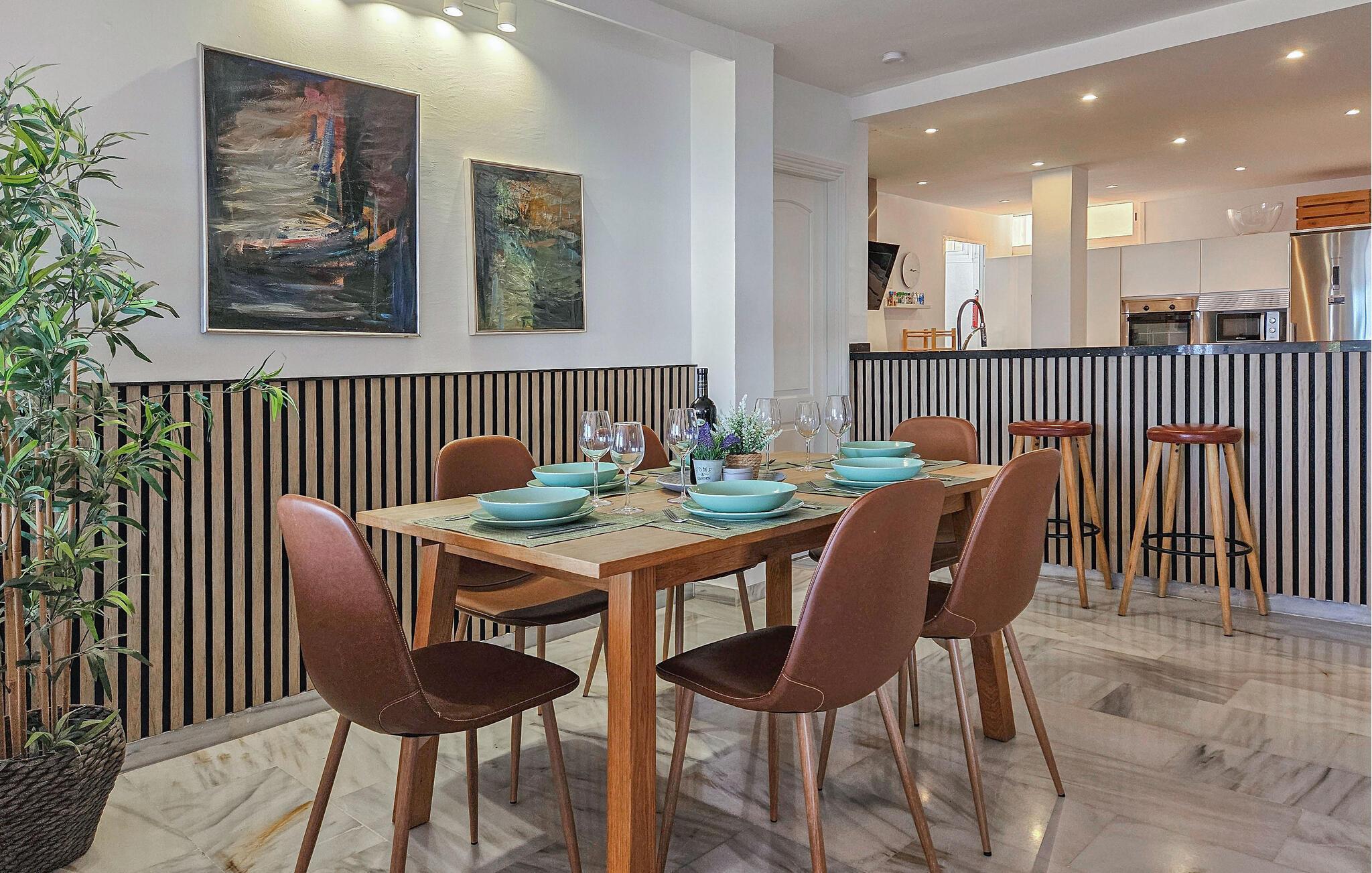 Das renovierte, geräumige Apartment befindet sich im 2. Stock mit dem Aufzug. Die Unterkunft erstreckt sich über eine Etage und besteht aus einem sehr geräumigen Wohn- / Essbereich mit offener, großer, moderner und voll ausgestatteter Küche mit einem Hauswirtschaftsraum und Waschmaschine. Die Wohnung ist durchweg sehr hochwertig eingerichtet und verfügt über eine Warm- und Kaltklimaanlage in der Lounge und in allen Schlafzimmern. Es gibt auch Glasfaser-WLAN und eine Digitalbox, die internationale Kanäle auf dem Fernseher überträgt. Zu den weiteren Einrichtungen gehören ein Blueray-DVD-Player und ein Radio.