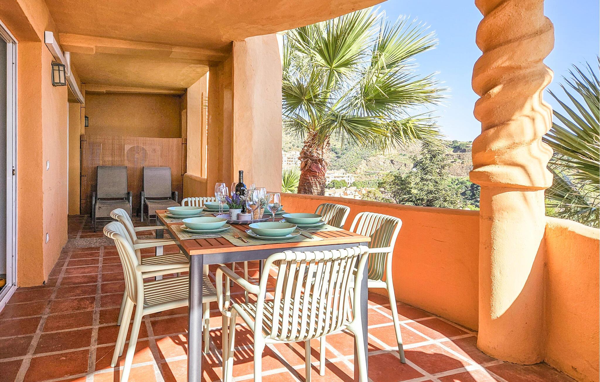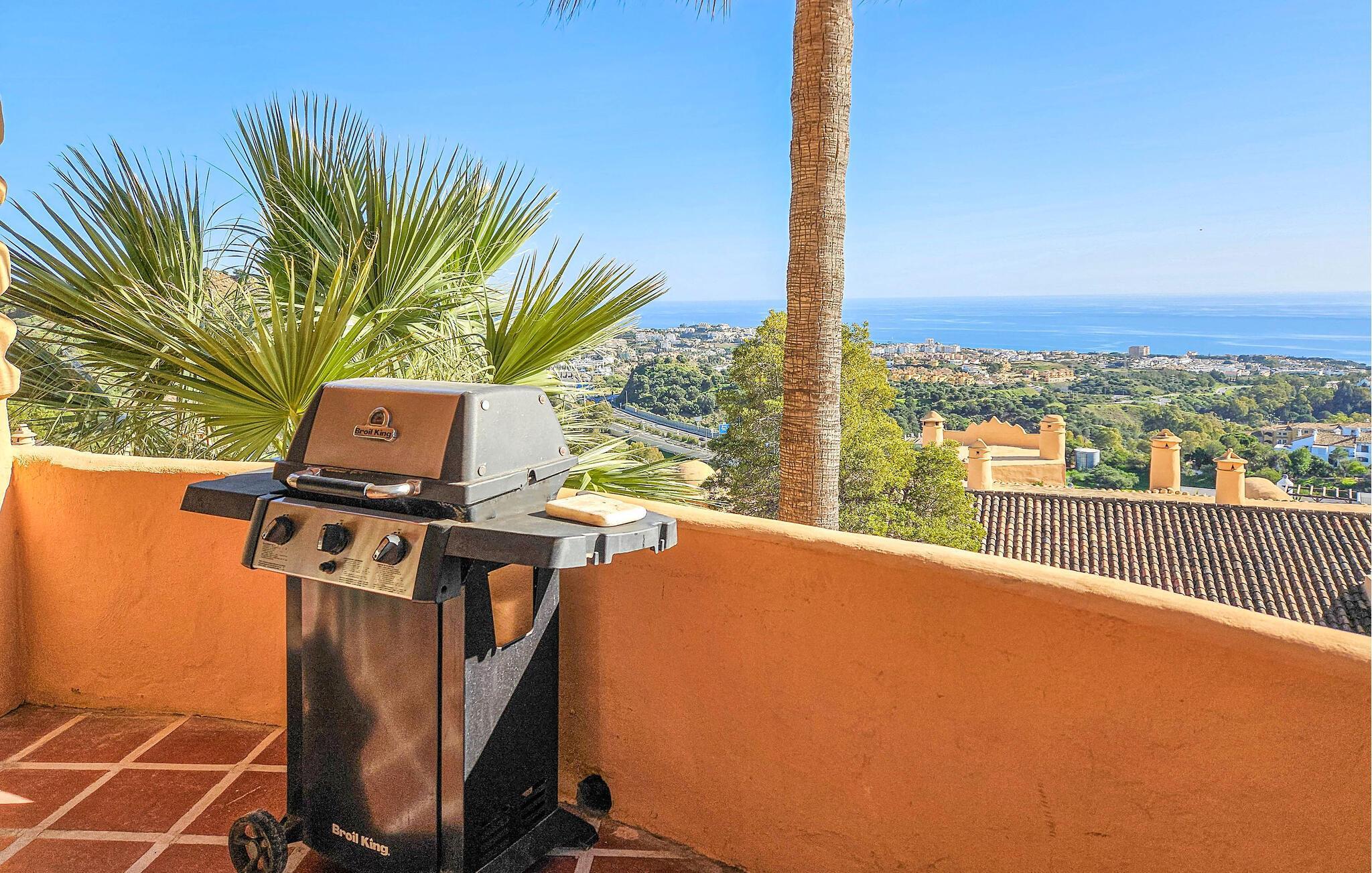 Dieses luxuriöse und sonnige Ferienapartment mit 3 Schlafzimmern befindet sich im Komplex „El Portón“ in Sitio de Calahonda und bietet vom Wohn- und Hauptschlafzimmer aus einen atemberaubenden Blick über die Umgebung bis zum Mittelmeer. Der Komplex verfügt über weitläufige gepflegte Gärten und 2 große Poolbereiche (einer davon ist ohne Rettungsschwimmer und ist bis Ende Oktober geöffnet) sowie ein Kinderbecken und einen Spielbereich. Er bietet ebenfalls Parkplätze im Freien innerhalb der Anlage. Restaurants sind sowohl zu Fuß als auch mit Auto erreichbar.