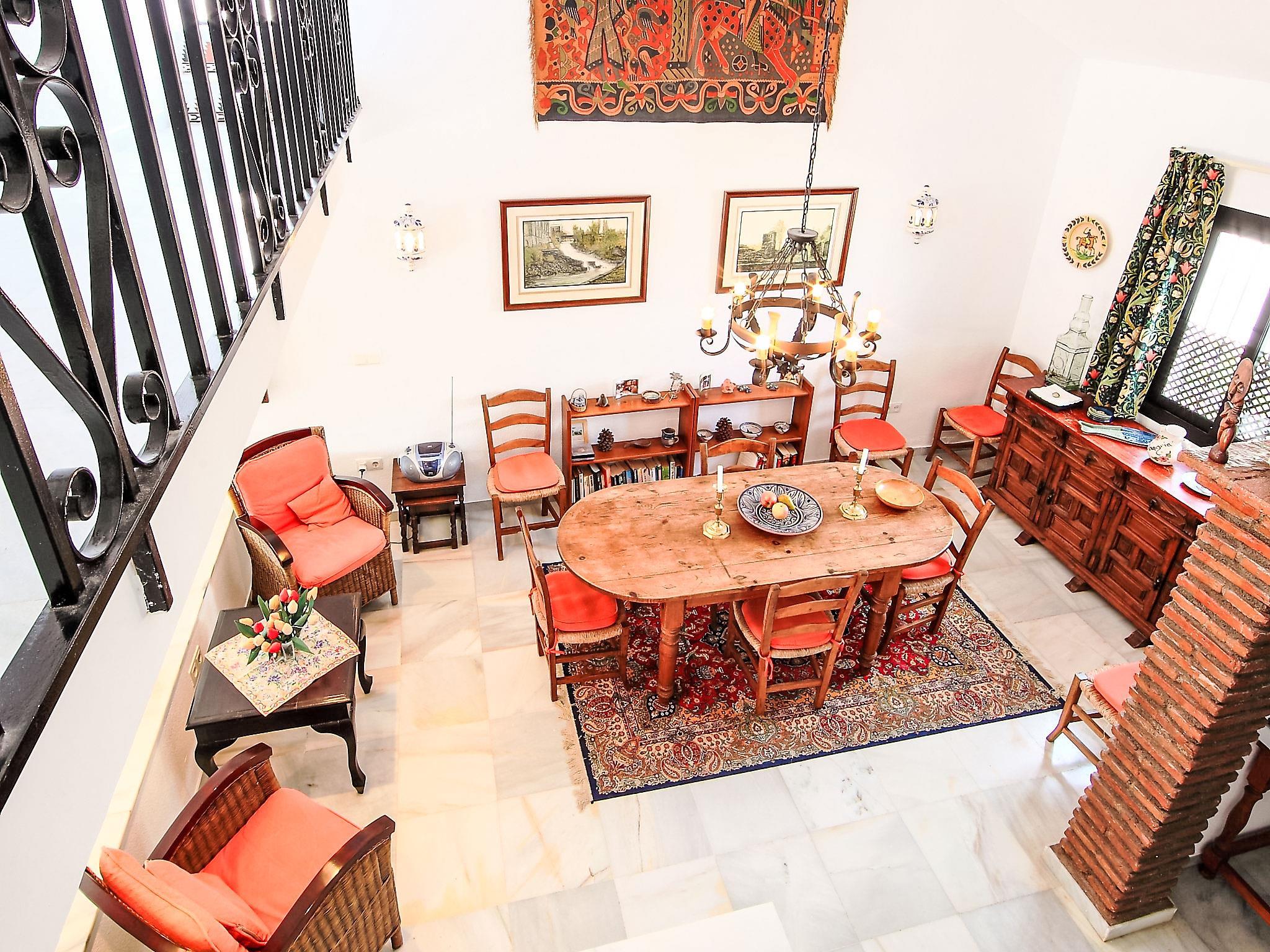 Sitio de Calahonda: Cosy, comfortable villa "Villa Cielo", 2 storeys, semi-detached. In the resort, 700 m from the centre, 5 km from the centre of La Cala de Mijas, 15 km from the centre of Marbella, in a quiet, sunny position, 1.2 km from the sea, in a cul-de-sac. Private: garden 270 m2 with lawn and trees, swimming pool (9 x 4 m, seasonal availability: 01.Jan. - 31.Dec.). Garden furniture, barbecue, parking at the house. Supermarket 1 km, restaurant 1 km, bar 1 km, bus stop "Leila Playa" 1.3 km, sandy beach 1.2 km. Sports harbour 3 km, golf course (9 hole) 1.5 km. Nearby attractions: Málaga 40 km. Please note: baby equipment on request (extra). Object suitable for 6 adults + 2 children groups of teenagers on request only. Neighbourhood highly sensitive to noise. Quietness and good behaviour expected.