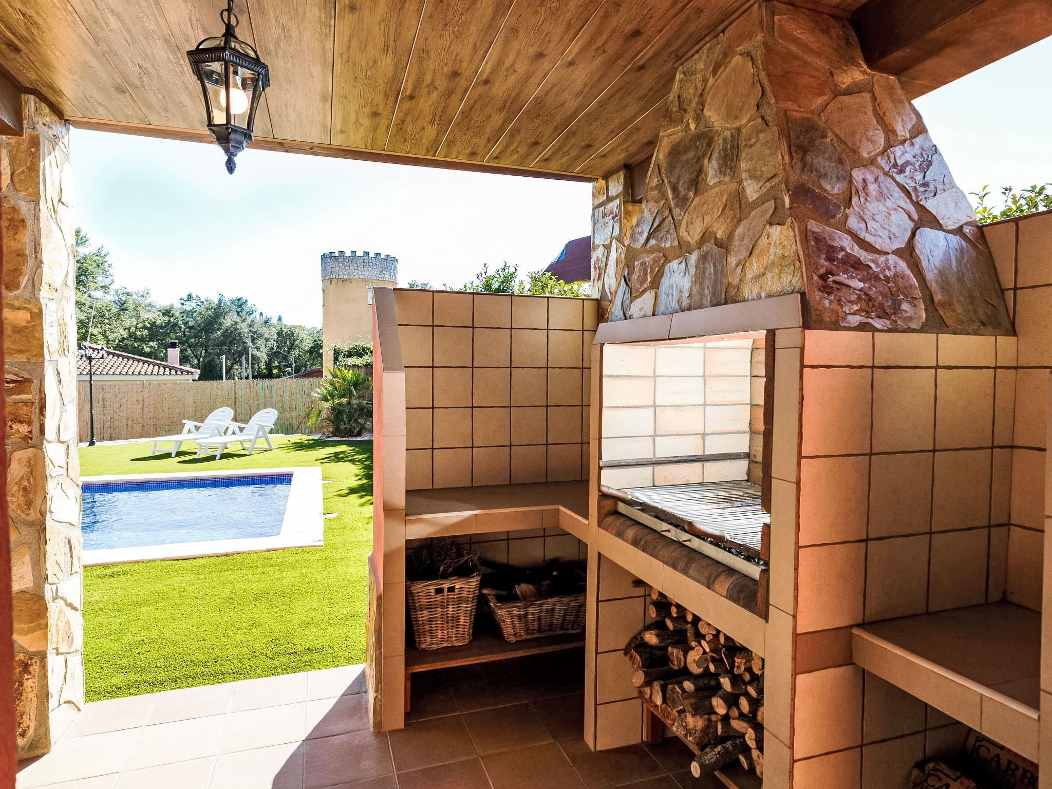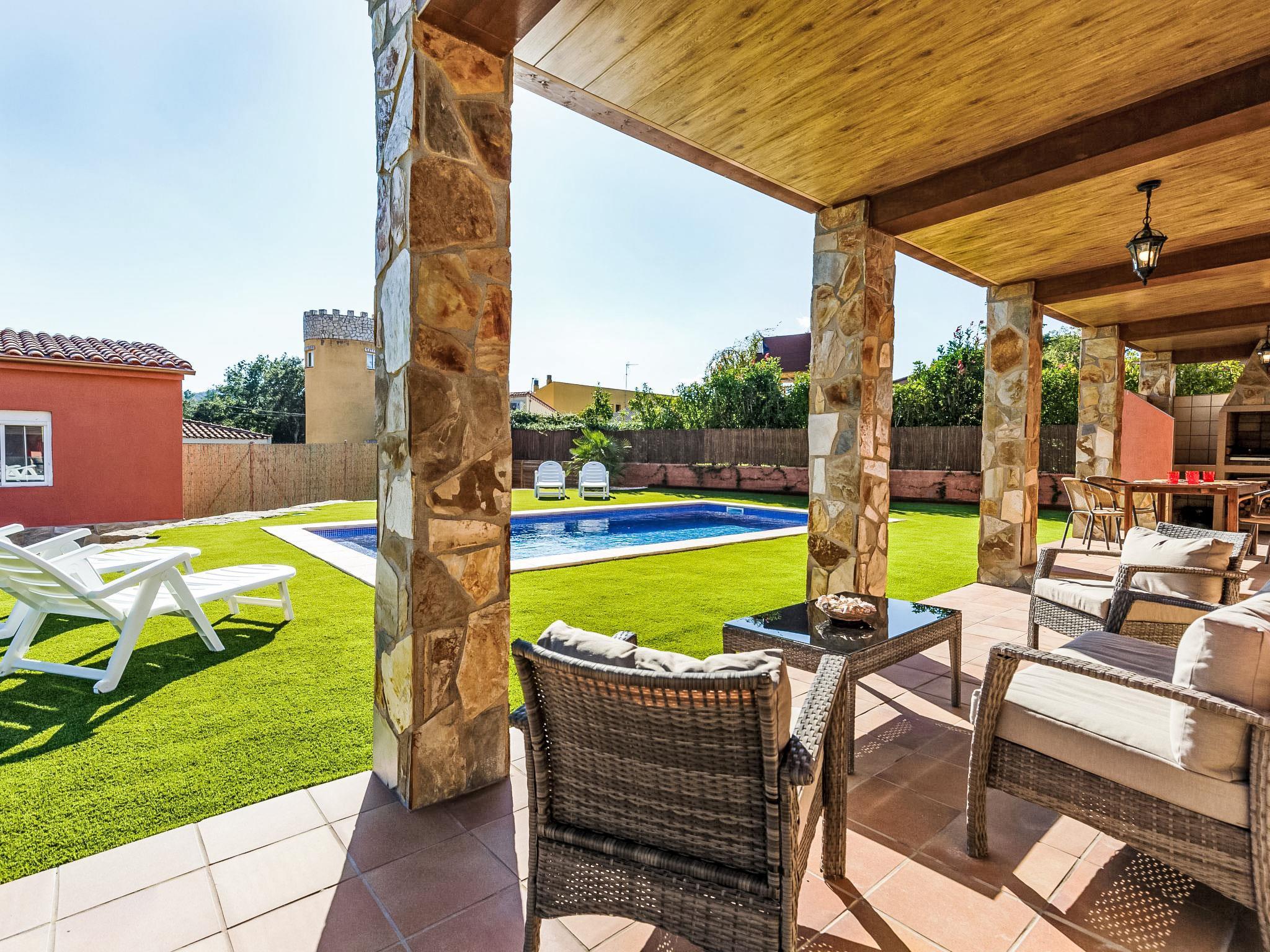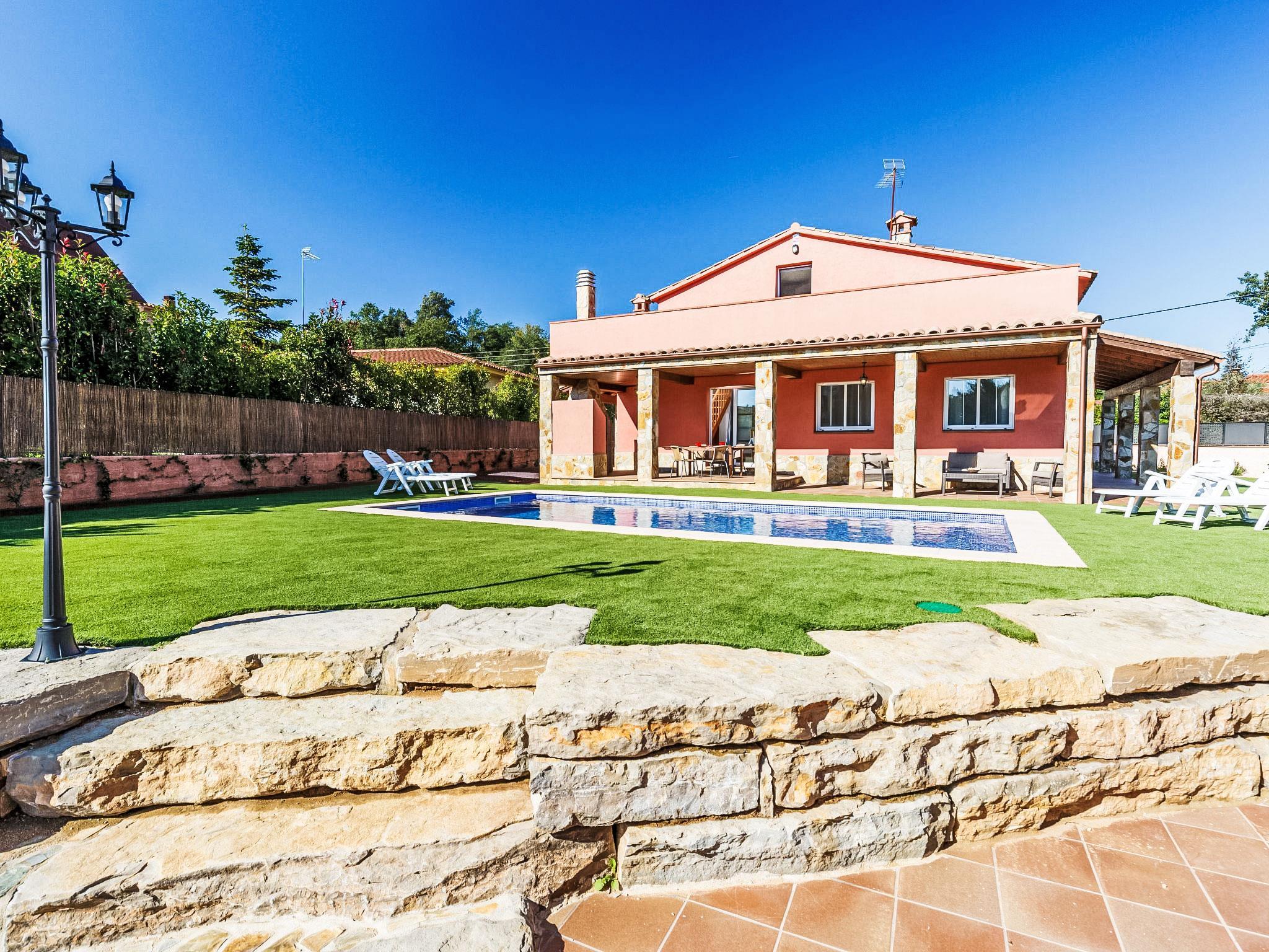 Can Carbonell 15 km from de Lloret de Mar: Cosy, comfortable house "Montverde", 2 storeys. In the district of can Carbonell, on the outskirts, 6 km from the centre of Vidreres, residential area (villas), traffic calmed area, 15 km from the sea, 15 km from the beach. Private: property (fenced) with flowers, beautiful garden to relax, swimming pool angular (8 x 4 m, 8 m diameter, depth 120 - 180 cm, seasonal availability: 06.Apr. - 19.Oct.). Shower/WC in the pool area, pool house, garden furniture, barbecue, parking at the house, public parking on the road. Shop 3 km, supermarket 3 km, shopping centre 30 km, restaurant 2 km, bakery 2 km, café 6 km. Golf course (18 hole) 17 km. Nearby attractions: Water World lloret de Mar 15 km, Golf Pga Caldes de Malavella 12 km, Agua Diver Platja de Aro 20 km, Marinland Blanes 20 km. Please note: car recommended. The owner does not accept any youth groups.