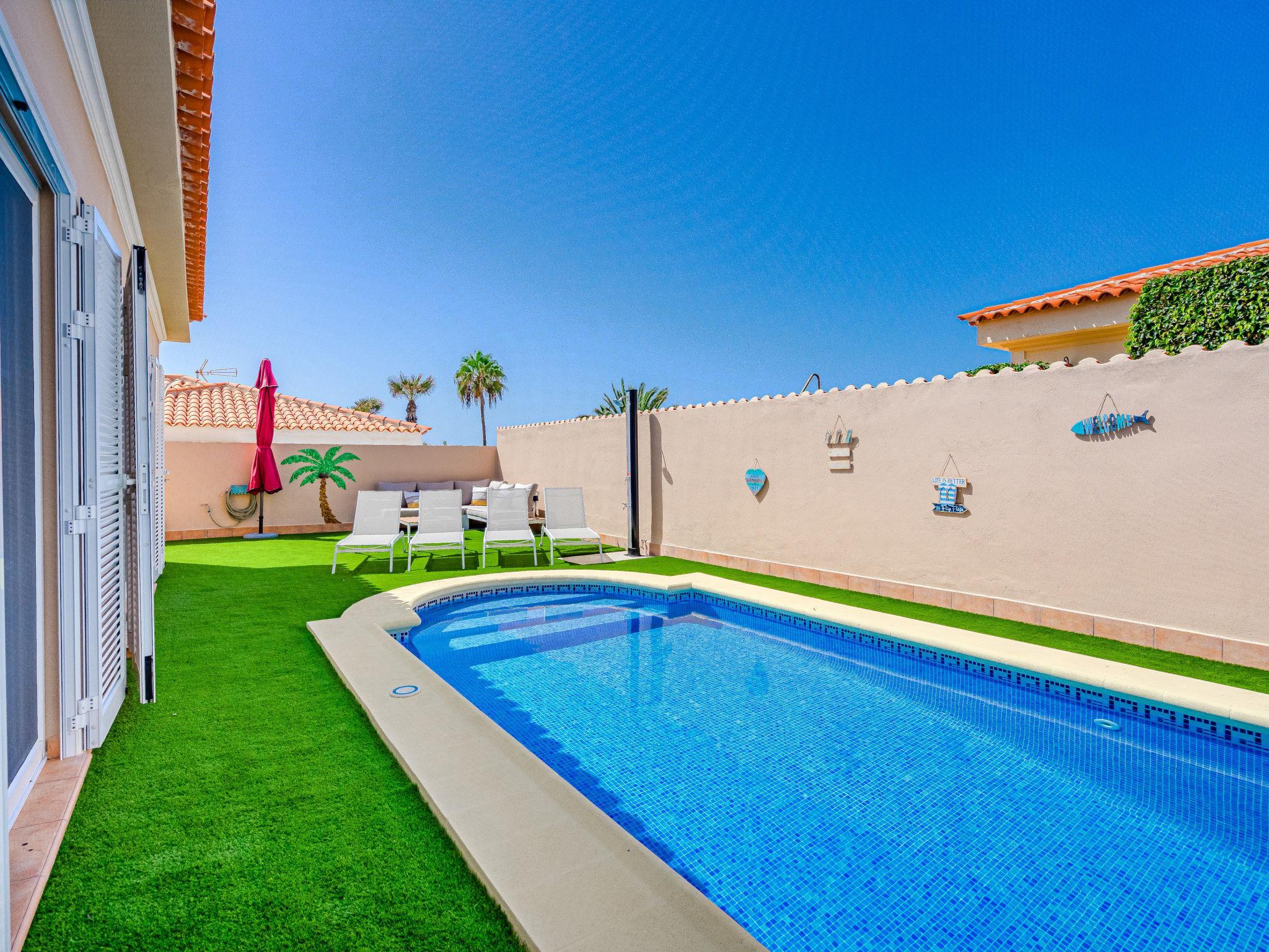 Large, child friendly villa "Sueño Azul". In the resort Callao Salvaje, in a quiet, sunny position residential area (villas), traffic calmed area, 100 m from the sea, 600 m from the beach, in a cul-de-sac. Private: swimming pool angular, heated (depth 60 - 160 cm, seasonal availability: 01.Jan. - 31.Dec.) with internal staircase and shutter cover. Outdoor shower, pool maintenance by the owner/gardener. Supermarket 450 m, shopping centre 4 km, restaurant, café 50 m, bus stop "Callao Salvaje" 600 m, sandy beach "Playa de Ajabo" 650 m. Golf course (18 hole) 7 km. Nearby attractions: Siam Park 13 km, Teide 59 km, Masca 30 km, Aeropuerto Sur 27 km, Playa Las Americas 15 km. The owner does not accept any youth groups. Neighbourhood highly sensitive to noise. Quietness and good behaviour expected.
