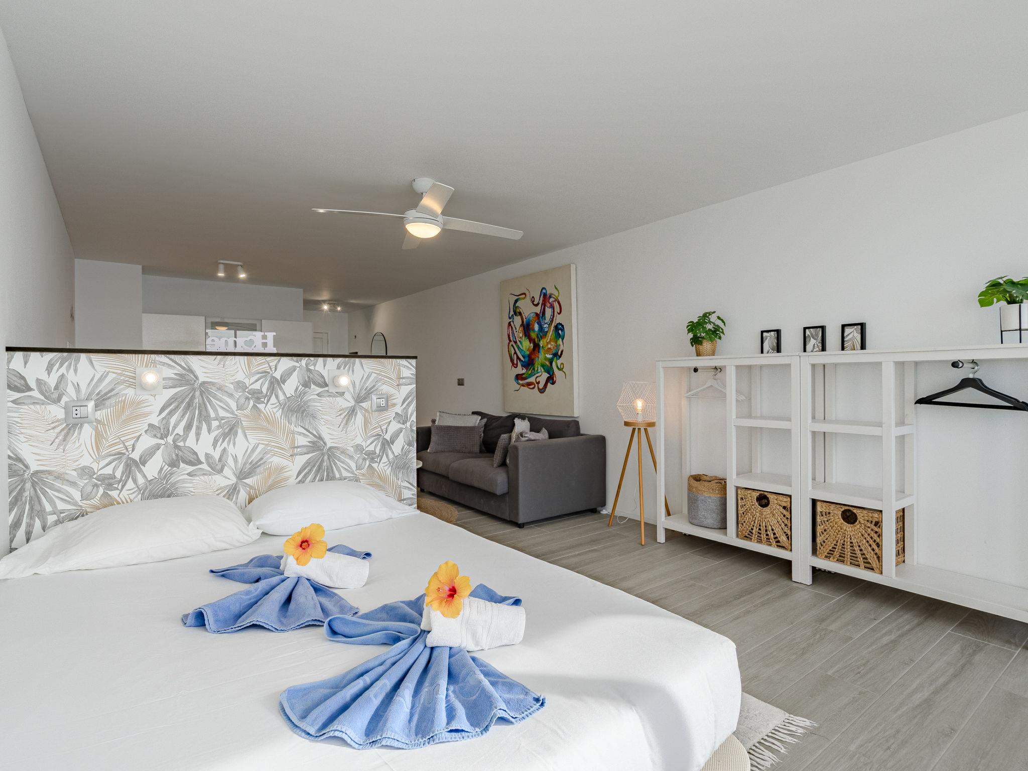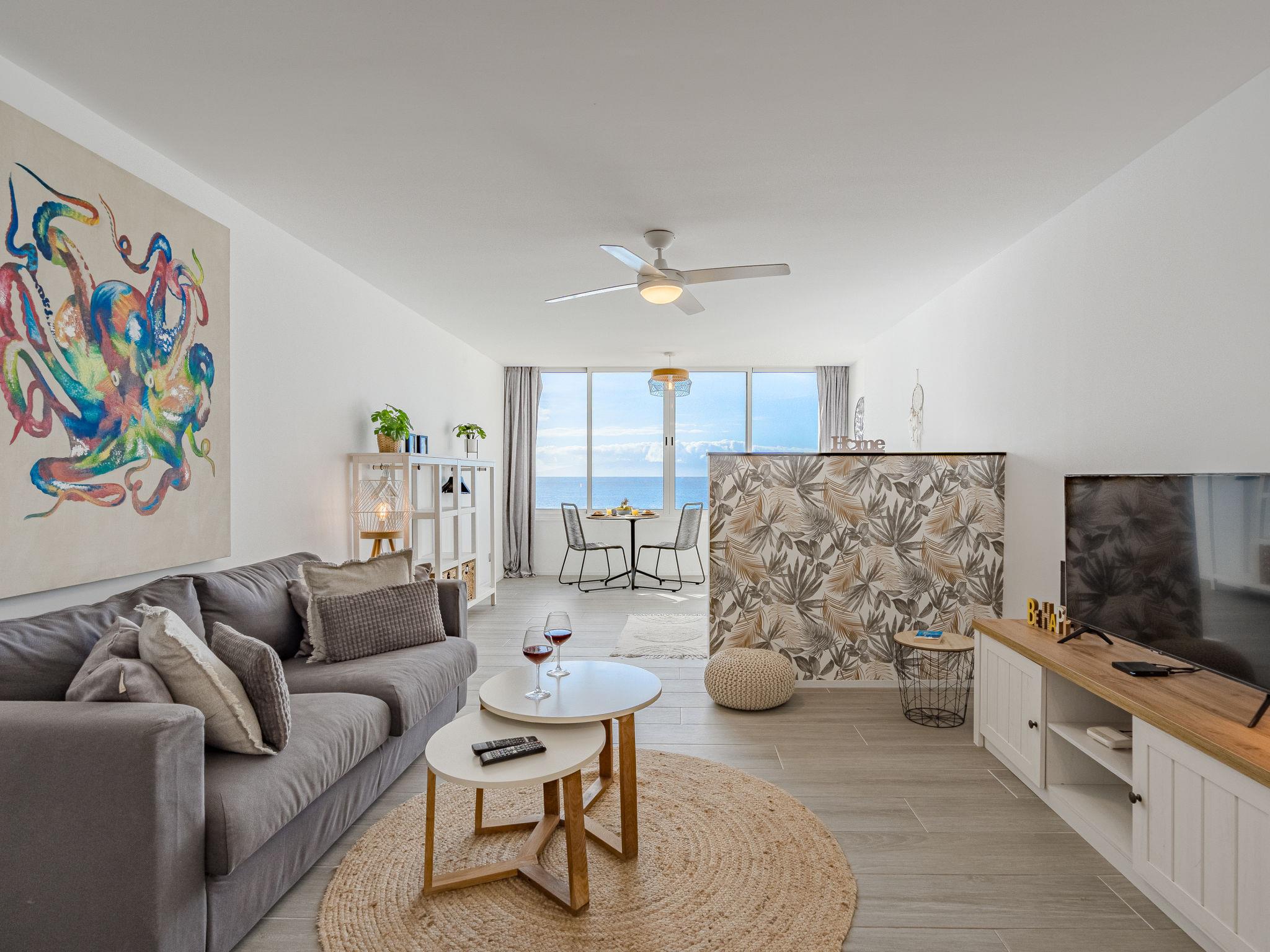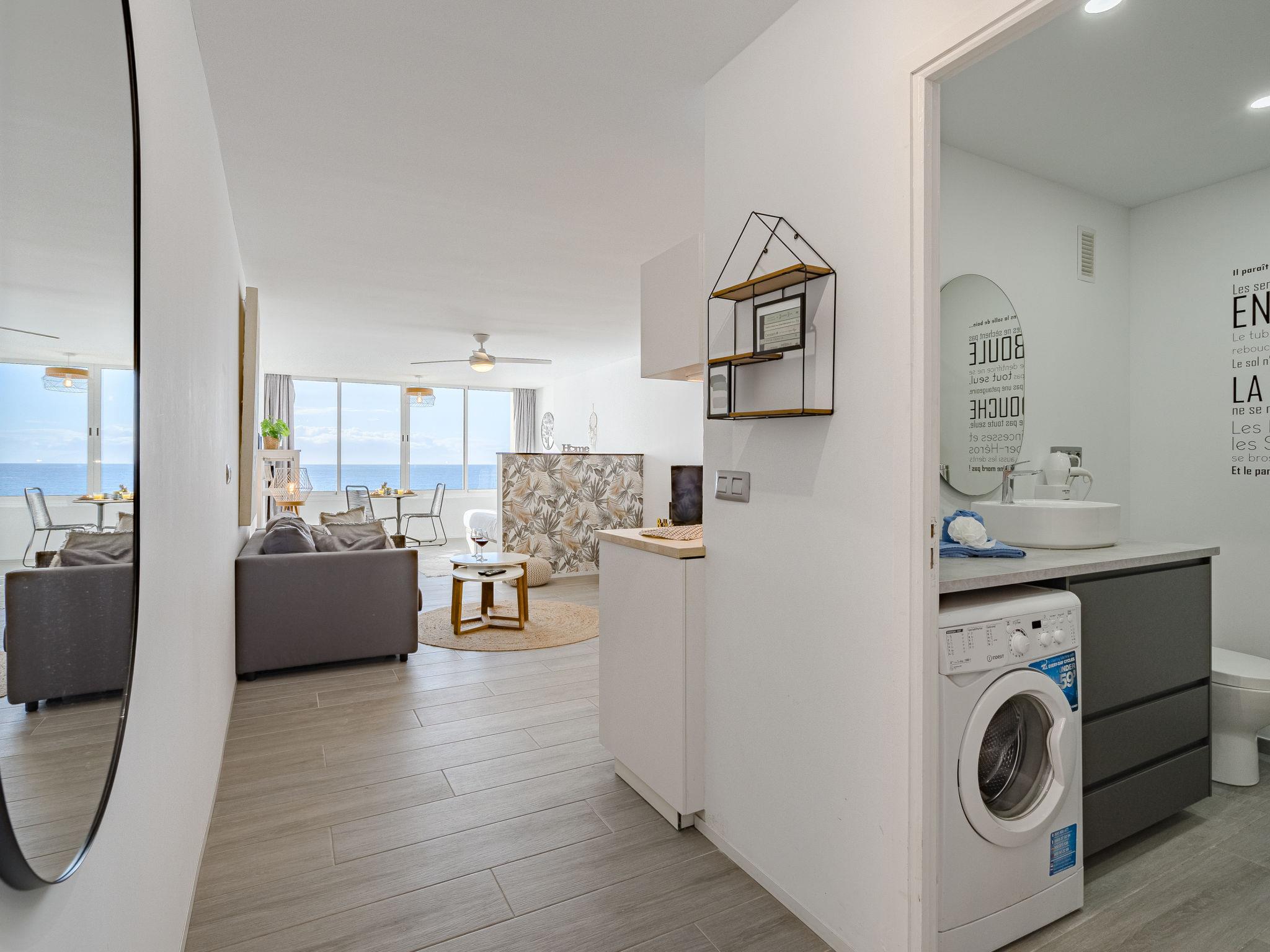 "Ocean Loka", 1-room studio 40 m2. Object suitable for 2 adults. Bright, practical and comfortable furnishings: living/sleeping room with 1 french bed (160 cm, length 200 cm), digital TV, international TV channels, flat screen and fan. Open kitchen (oven, 2 induction hot plates, toaster, kettle, microwave, freezer, electric coffee machine, Capsules for coffee machine (Dolce Gusto) extra) with dining table. Shower/WC. Boiler (50 litres). No heating option. Deck chairs (2). Marvellous panoramic view of the sea. Facilities: washing machine, iron, hair dryer. Internet (WiFi, free). Please note: non-smokers only. No lift. VV-38-4-0110595 // Reg. Nr.: ESFCTU0000380150001994800000000000000VV-38-4-01105953