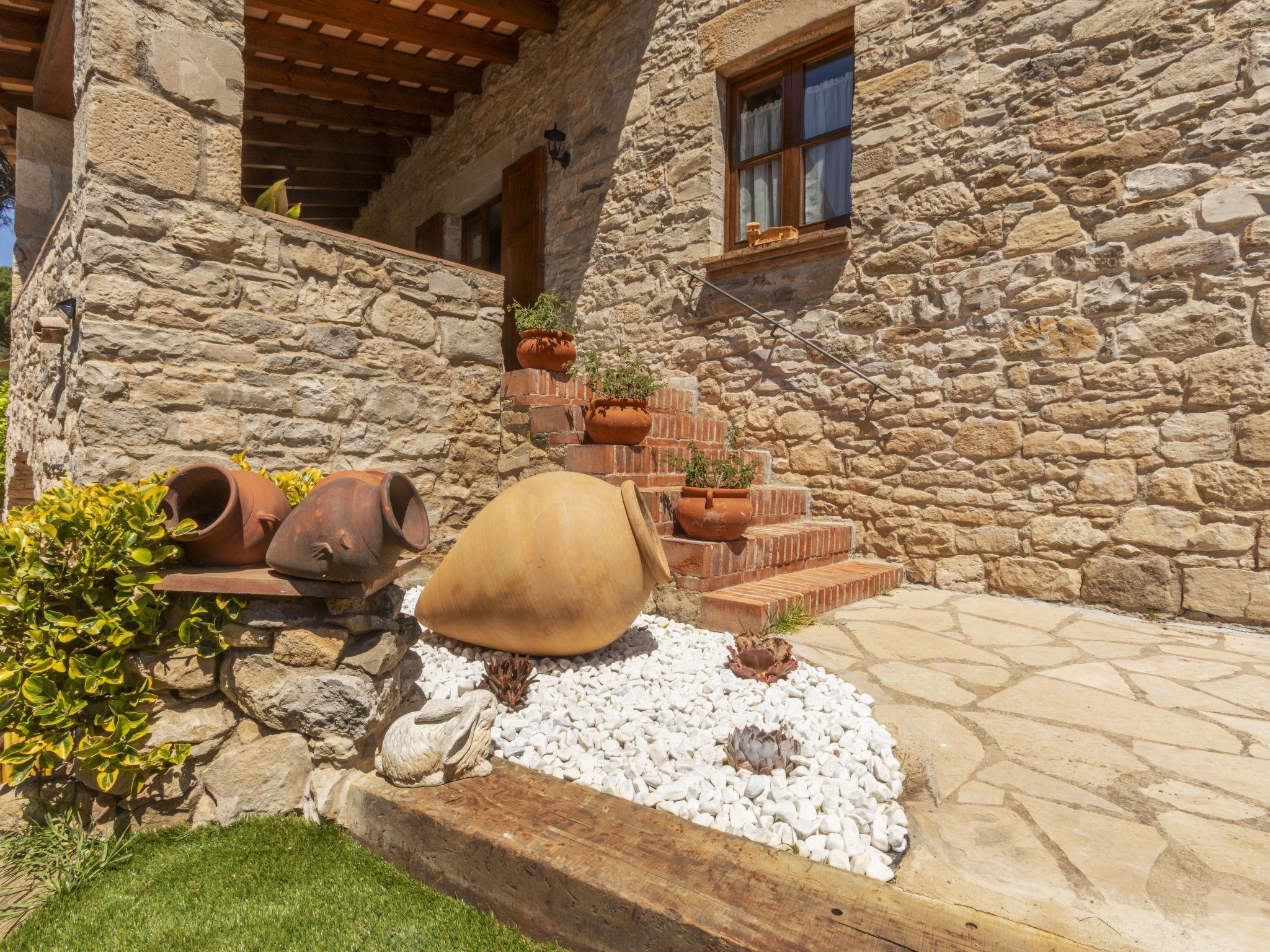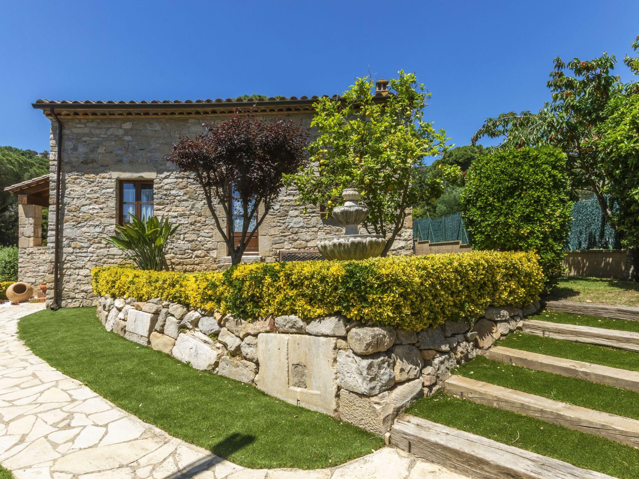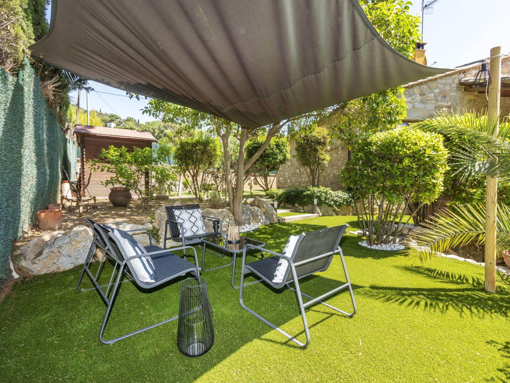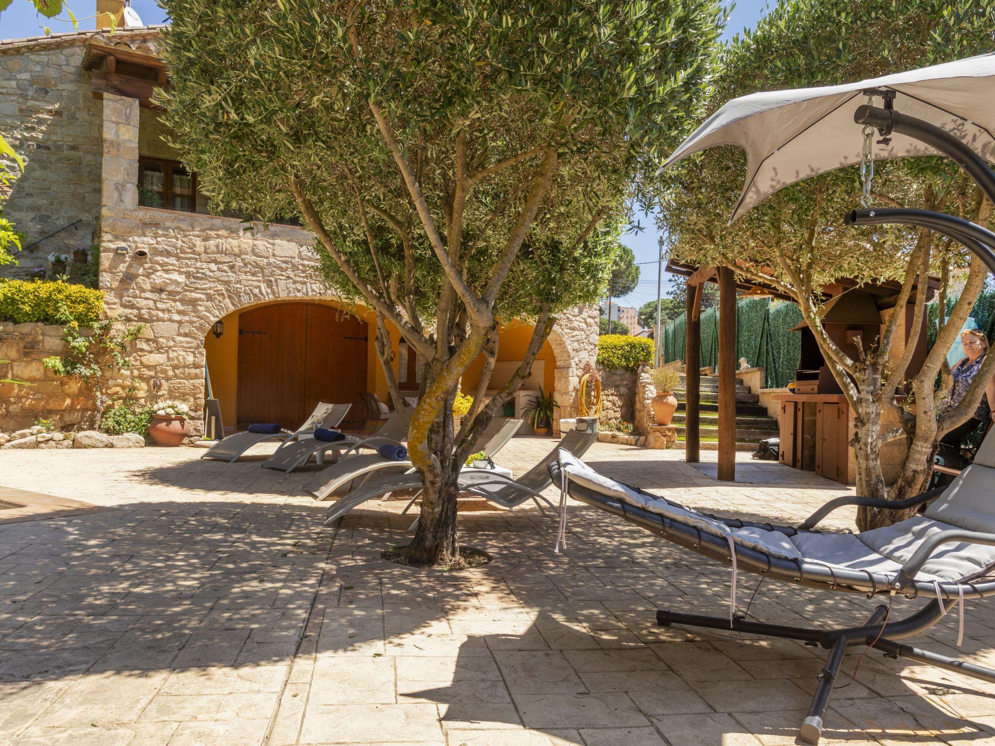 6-room house 140 m2 on 3 levels. Comfortable and tasteful furnishings: living/dining room with open-hearth fireplace, digital TV, hi-fi system and DVD. Exit to the terrace. 2 rooms, each room with 1 french bed (135 cm, length 190 cm). 1 room with (1 x) (1 x), 1 pull-out bed (2 pers. 2 x 90 cm, length 190 cm). Large kitchen (oven, dishwasher, 4 ceramic glass hob hotplates, toaster, kettle, microwave, freezer, electric coffee machine). Exit to the patio. Shower/bidet/WC. Heating. On the lower ground floor: playroom. Exit to the patio, to the swimming pool. Upper floor: with 1 french bed (150 cm, length 190 cm), bath/shower/bidet/WC and double hand-basin. Terrace 21 m2, patio 500 m2. Terrace furniture, barbecue, deck chairs (4), covered balcony. Facilities: washing machine, dryer, iron, baby cot for up to 2 year olds. Internet (WiFi, free). Please note: suitable for families. Non-smoking house. Maximum 1 pet/ dog allowed. TV only ES. HUTG-008892 // Reg. Nr.: ESFCTU00001701500026023100000000000000000HUTG-0088928