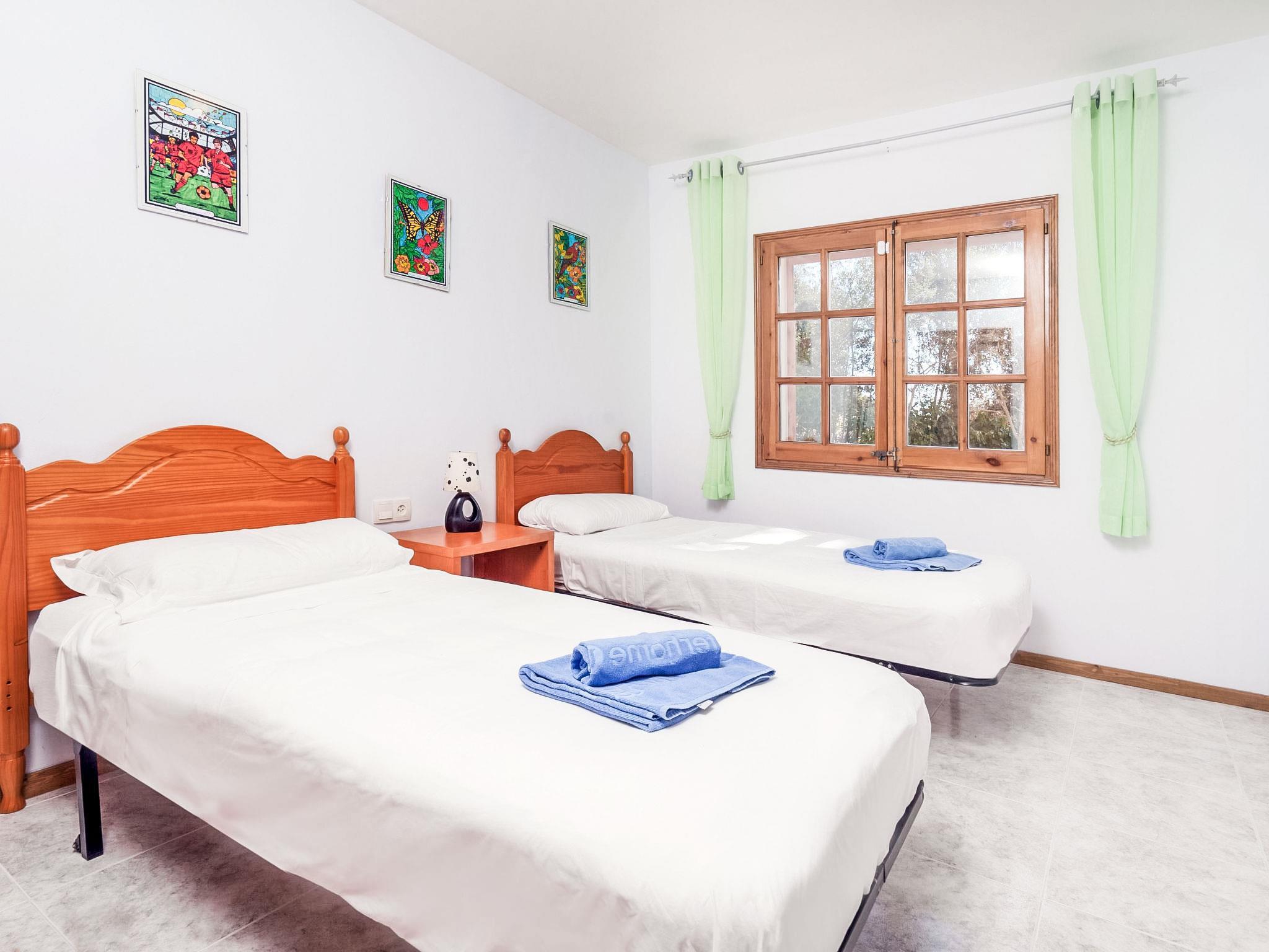 "Villa Maria", 5-room house 95 m2 on 2 levels. Comfortable furnishings: living/dining room with satellite TV (flat screen), air conditioning. Open kitchen (oven, dishwasher, 4 ceramic glass hob hotplates, microwave, electric coffee machine). Shower/WC. No heating option. On the lower ground floor: 1 room with 1 french bed and air conditioning. 1 room with 2 beds (90 cm, length 190 cm), air conditioning. 1 room with 1 double sofabed (135 cm, length 190 cm), air conditioning. 1 room with 1 french bed (150 cm, length 190 cm), shower/WC. Bath/WC, double hand-basin. Deck chairs. View of the countryside. Facilities: washing machine, baby cot. Internet (WiFi, free). HUTG-008559 // Reg. Nr.: ESFCTU00001701500038926000000000000000000HUTG-0085594