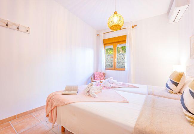INTERIOR: This villa is composed of the MAIN FLOOR where you will find a living-dining room with SAT/DTT TV, with access to a covered terrace with beautiful views of the sea and the Ifach Rock. An independent fully equipped kitchen with ceramic hob and dishwasher. A spacious bedroom with two single beds and sea views. A spacious bedroom with a double bed and an en-suite bathroom with bathtub. Two bedrooms with two single beds each, plus a bathroom with bathtub. On the GROUND FLOOR, you will find a small living-dining room with an open kitchen and two electric hobs and access to the barbecue area. Two bedrooms with two single beds each. A bedroom with a double bed and finally a shower bathroom.