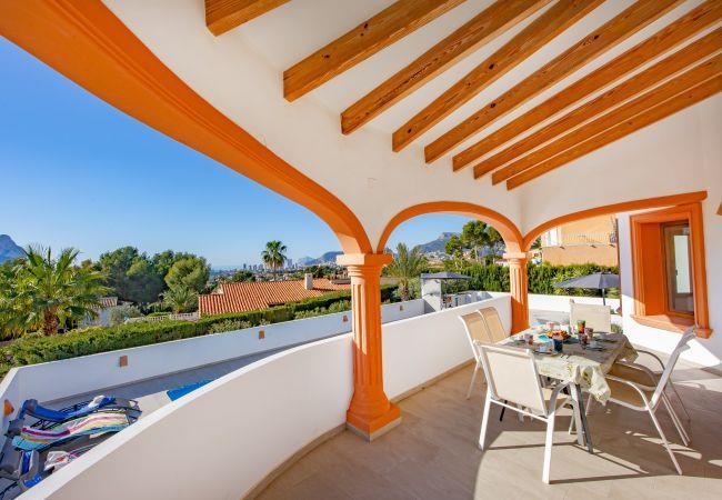 Beautiful summer villa with private pool located in Calpe (Costa Blanca) for 14 people with seven bedrooms and three bathrooms distributed across two floors.