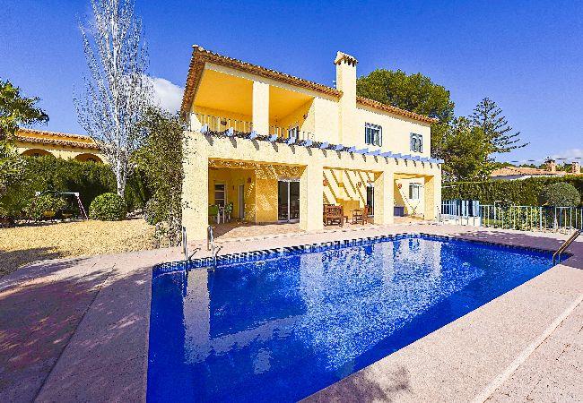 Spectacular fully air-conditioned holiday villa with private pool in Calpe (Costa Blanca), designed to comfortably accommodate 10 people. With four bedrooms and three bathrooms distributed over two floors connected by interior stairs, this villa offers an exceptional space to enjoy an unforgettable vacation.