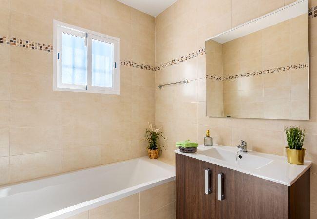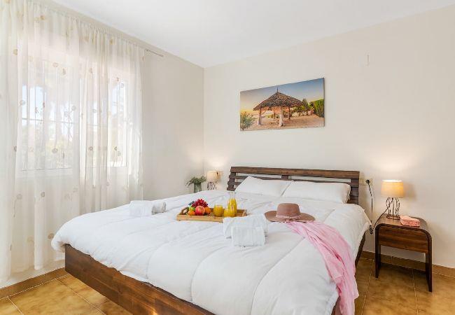 INTERIOR: This beautiful villa is composed of the GROUND FLOOR which consists of three bedrooms with a double bed each, two of them with an en-suite bathroom, one with a bathtub and the other with a shower. A bedroom with two single beds and lastly a bathroom with a shower. The UPPER FLOOR consists of a living-dining room with SAT/DTT TV that provides access to a comfortable covered terrace. An independent kitchen fully equipped with gas stoves and dishwasher. Additionally, there is a guest bathroom.