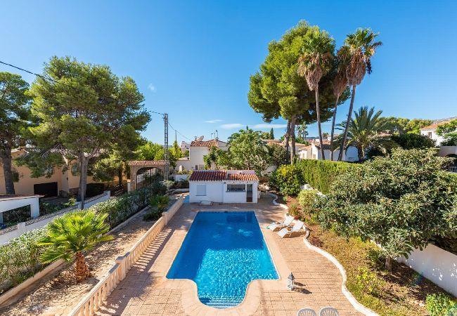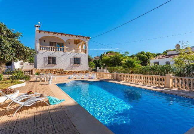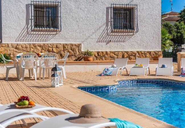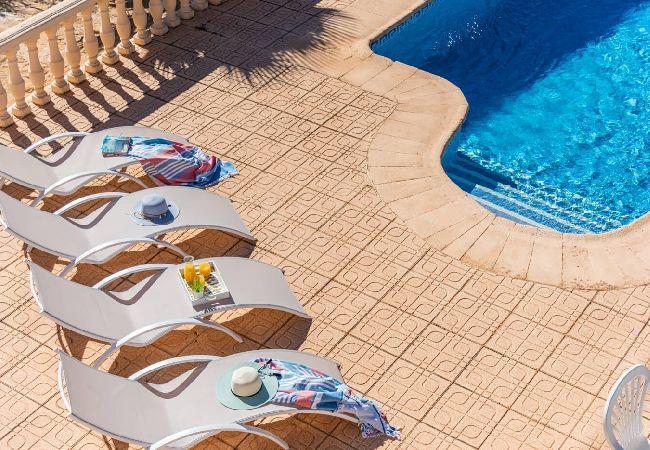 Cozy holiday villa with private pool located in Calpe (Costa Blanca) for 8 people, with four bedrooms, three bathrooms and a toilet, distributed across two floors. The villa has air conditioning in the living room and in all bedrooms.