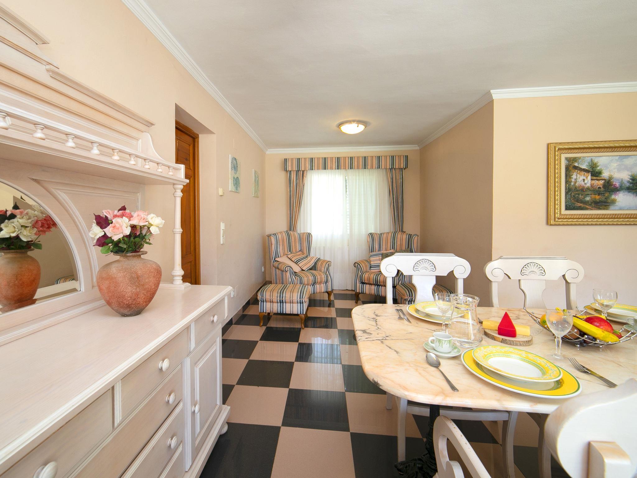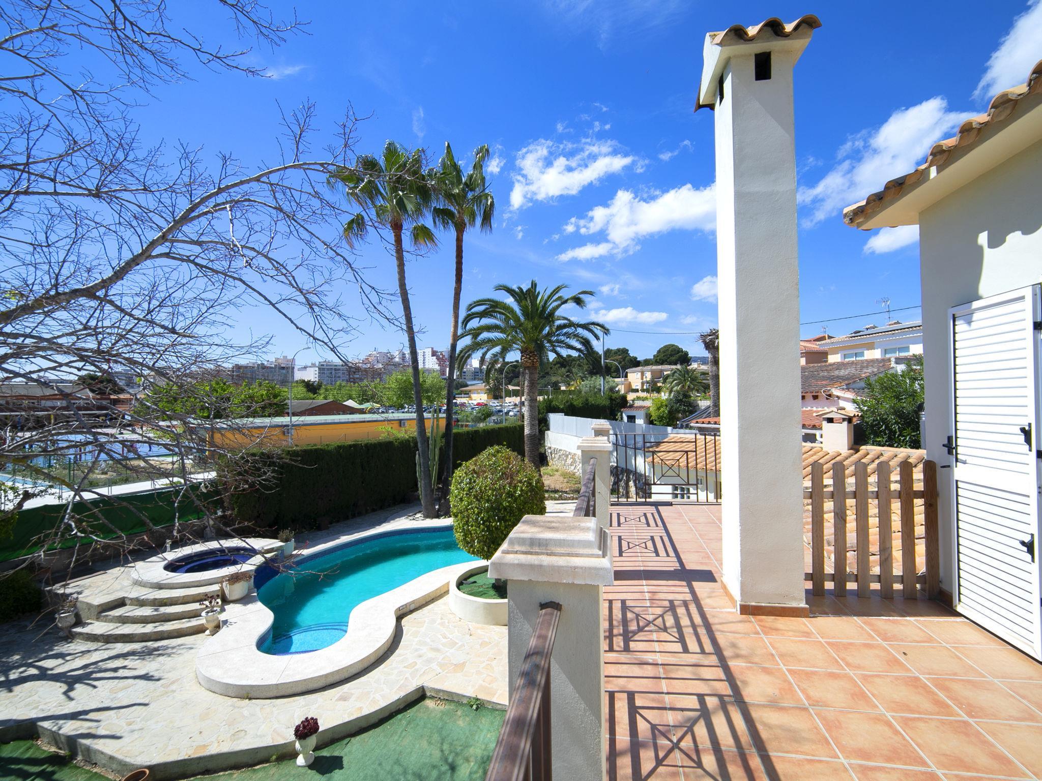 Gargasindi: Cosy, comfortable house "Alenar", 2 storeys. In the resort 500 m from the centre of Calpe, in a sunny position, 1.5 km from the sea, 1.5 km from the beach, in a cul-de-sac. Private: beautiful garden with lawn, swimming pool (depth 100 - 200 cm, seasonal availability: 01.Jan. and 31.Dec.) with internal staircase. Unconventional pool shape. Shower/WC in the pool area, outdoor shower. In the house: central heating system. Supermarket 600 m, shopping centre 600 m, restaurant 550 m, bar 500 m, café 500 m, 5 minute walk to the centre, bus stop "Estación autobuses Calpe" 650 m, sandy beach "Arenal-Bol" 1.5 km, indoor swimming pool 550 m. Tennis 400 m, sports centre 650 m. Nearby attractions: Terra Natura 25 m, Benidorm Palace 21 km, Aqualandia 21 km, Mundomar 21 km, Terra Mítica 26 km. Hiking paths: Parque Natural Peñón de Ifach 5 km, Sierra de Oltà 4 km, Sierra de Bernia 19 m.