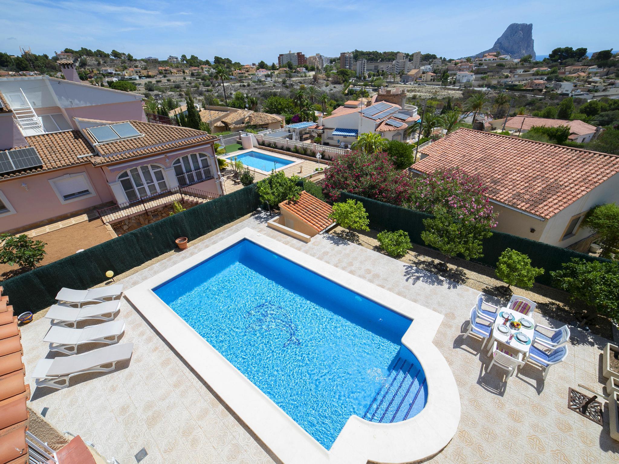 Canuta: Beautiful, cosy house "Louisa", 2 storeys, renovated in 2024. 1.5 km from the centre of Calpe, in a sunny position residential area (villas), traffic calmed area, 900 m from the sea, 900 m from the beach. Private: property 552 m2 (fenced), garden, swimming pool (8 x 4 m, seasonal availability: 01.Jan. - 31.Dec.) with internal staircase. Outdoor shower, terrace, barbecue, roofed, parking on the premises. Grocery 1 km, supermarket 1 km, restaurant 900 m, café 700 m, bus stop "Parada Bus" 900 m, sandy beach "Playa Arenal" 2 km, swimming bay 1.4 km. Sports harbour 4 km, marina 4 km, golf course (9 hole) 10 km. Nearby attractions: Aqualandia, Mundomar, Terra Mítica, Terra Natura, Benidorm Palace (Benidorm), Les Fonts de l'Algar, Castillo de Guadalest. The owner does not accept any youth groups.