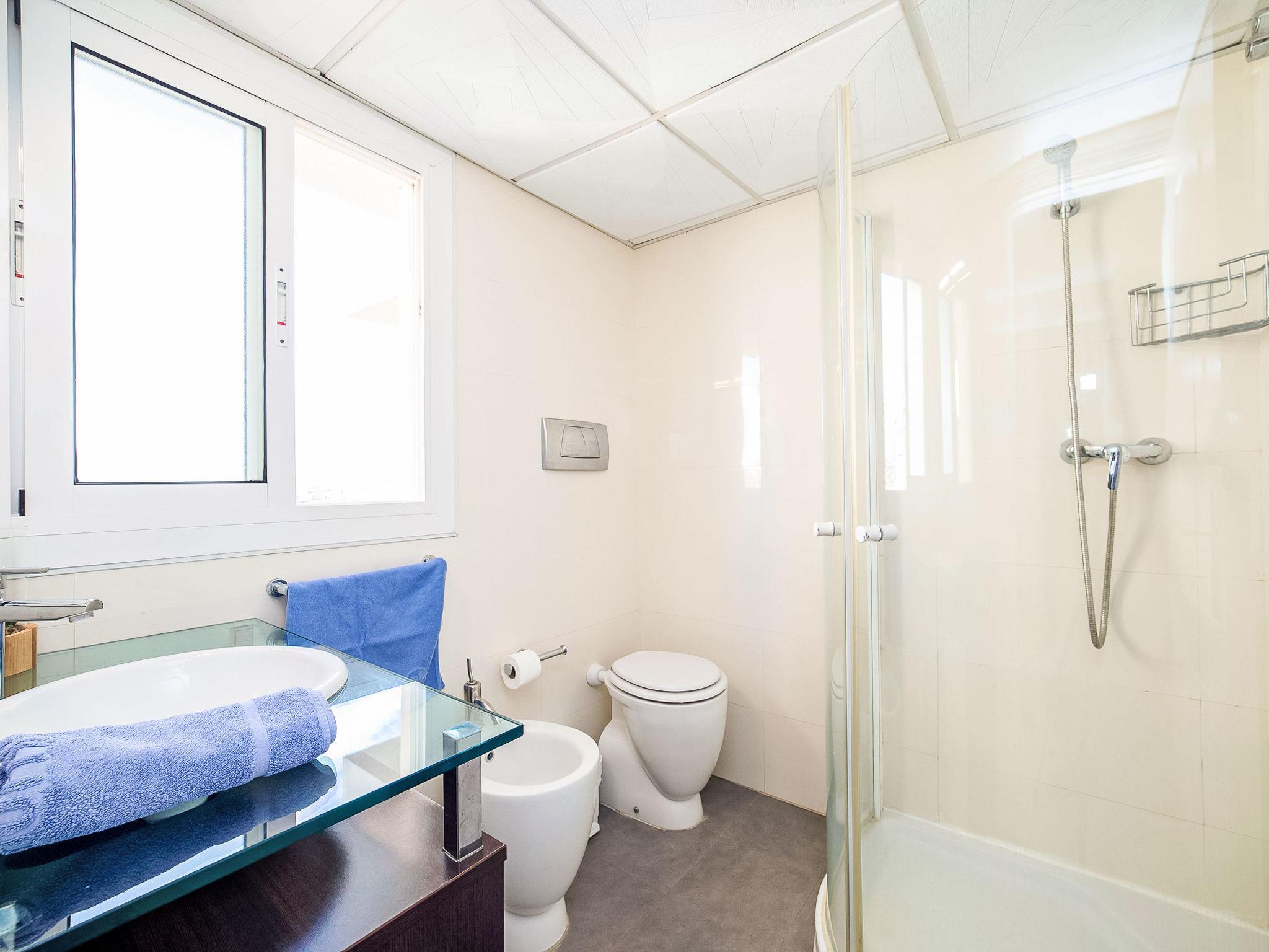 "Les Roquetes", 3-room apartment 90 m2 on 8th floor. Bright, comfortable and stylish furnishings: living/dining room 30 m2 with satellite TV, digital TV, DVD, air conditioning and forced-air heating. Exit to the balcony. 1 room with 1 french bed (150 cm, length 190 cm), hand-basin, separate WC, air conditioning and forced-air heating. Exit to the balcony. 1 room with 2 beds (90 cm, length 190 cm), air conditioning and forced-air heating. Exit to the balcony. Kitchen (oven, dishwasher, 4 induction hot plates, toaster, kettle, microwave, freezer, electric coffee machine). Shower/bidet/WC, sep. WC. Marvellous panoramic view of the sea. Facilities: washing machine, iron, children's high chair, baby cot for up to 2 year olds, hair dryer. Parking space n 1/8/A (fenced 1 car) at the house. Suitable for families. AT-446792-A // Reg. Nr.: ESFCTU00000302900041171200000000000000000AT-446792-A8