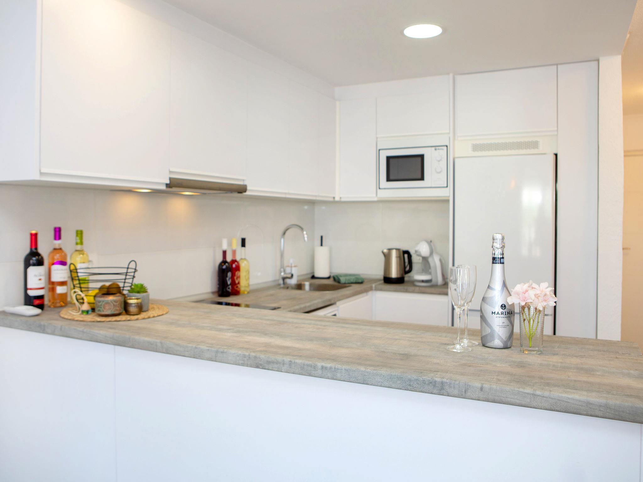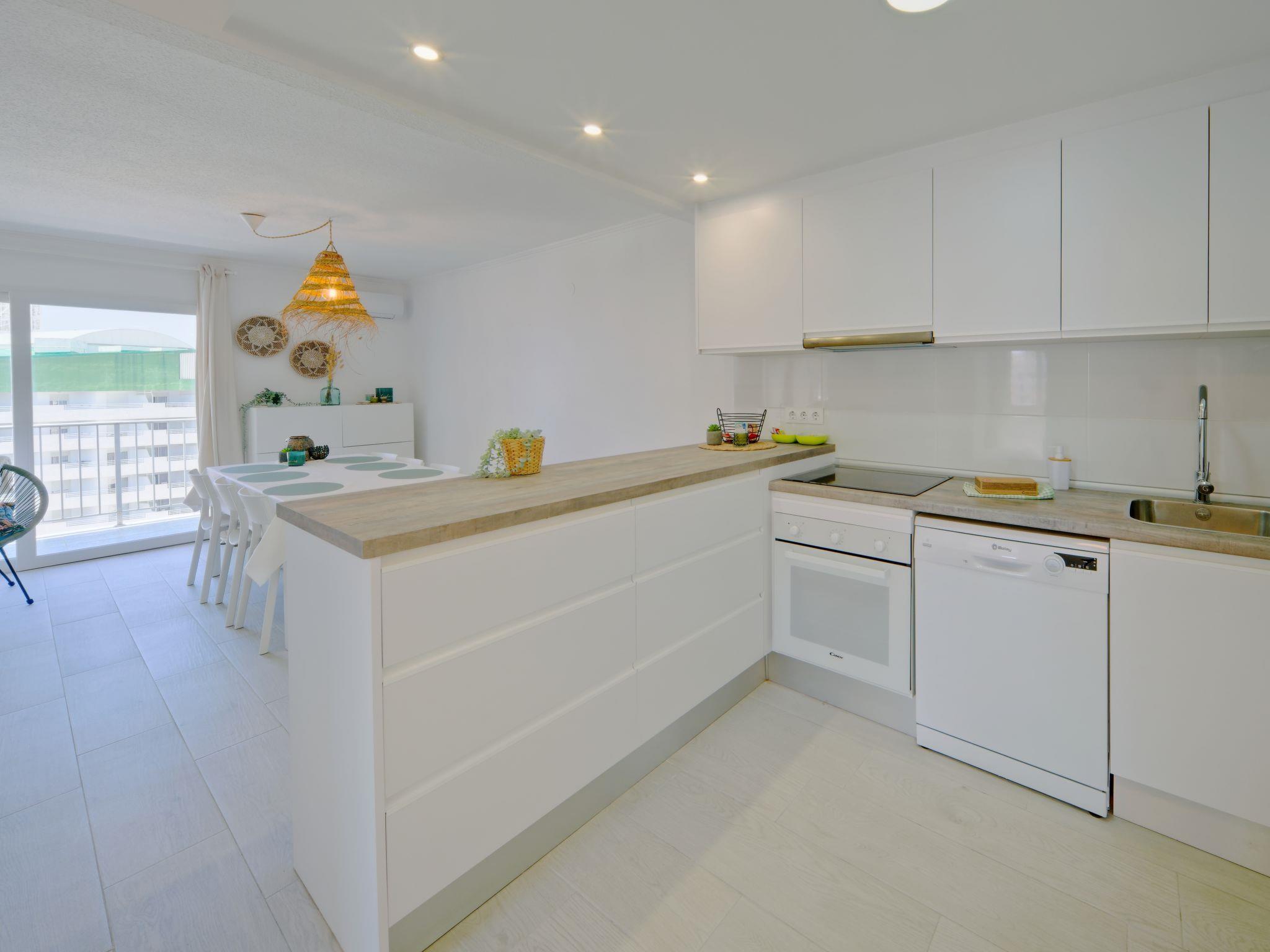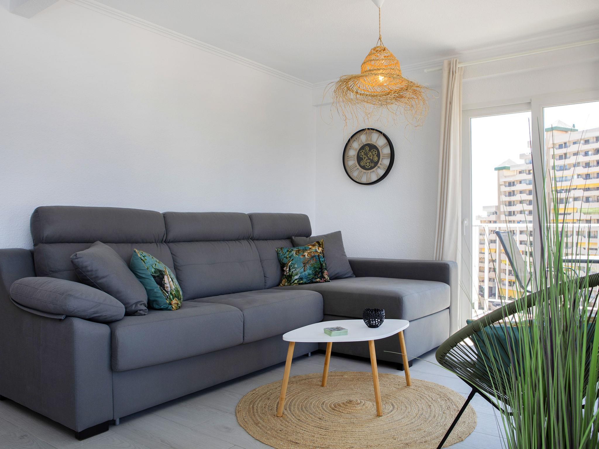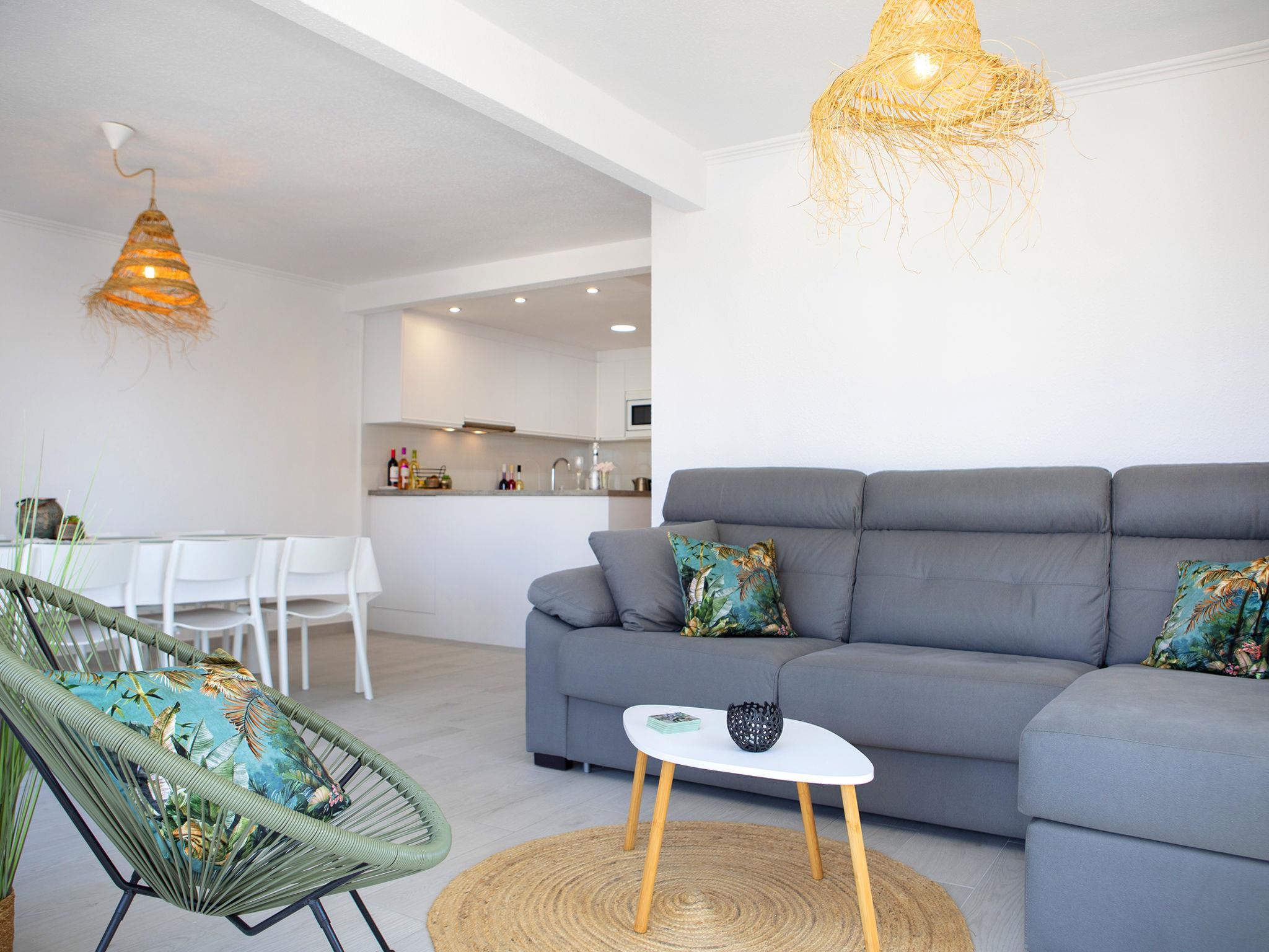 "Miramar 03", 3-room apartment on 8th floor. Spacious and bright, fully renovated in 2022, beautiful and modern furnishings: living/dining room with satellite TV, digital TV, air conditioning and forced-air heating. Exit to the terrace. 2 rooms, each room with 1 french bed (1 x 150 cm, length 190 cm). Open kitchen (oven, dishwasher, 4 ceramic glass hob hotplates, toaster, kettle, microwave, electric coffee machine). Shower/WC. Large terrace. Balcony furniture. View of the sea and the city. Facilities: washing machine, iron, hair dryer. Internet (WiFi, free). Suitable for families. VT-496051-A // Reg. Nr.: ESFCTU00000302900031873800000000000000000VT-496051-A2