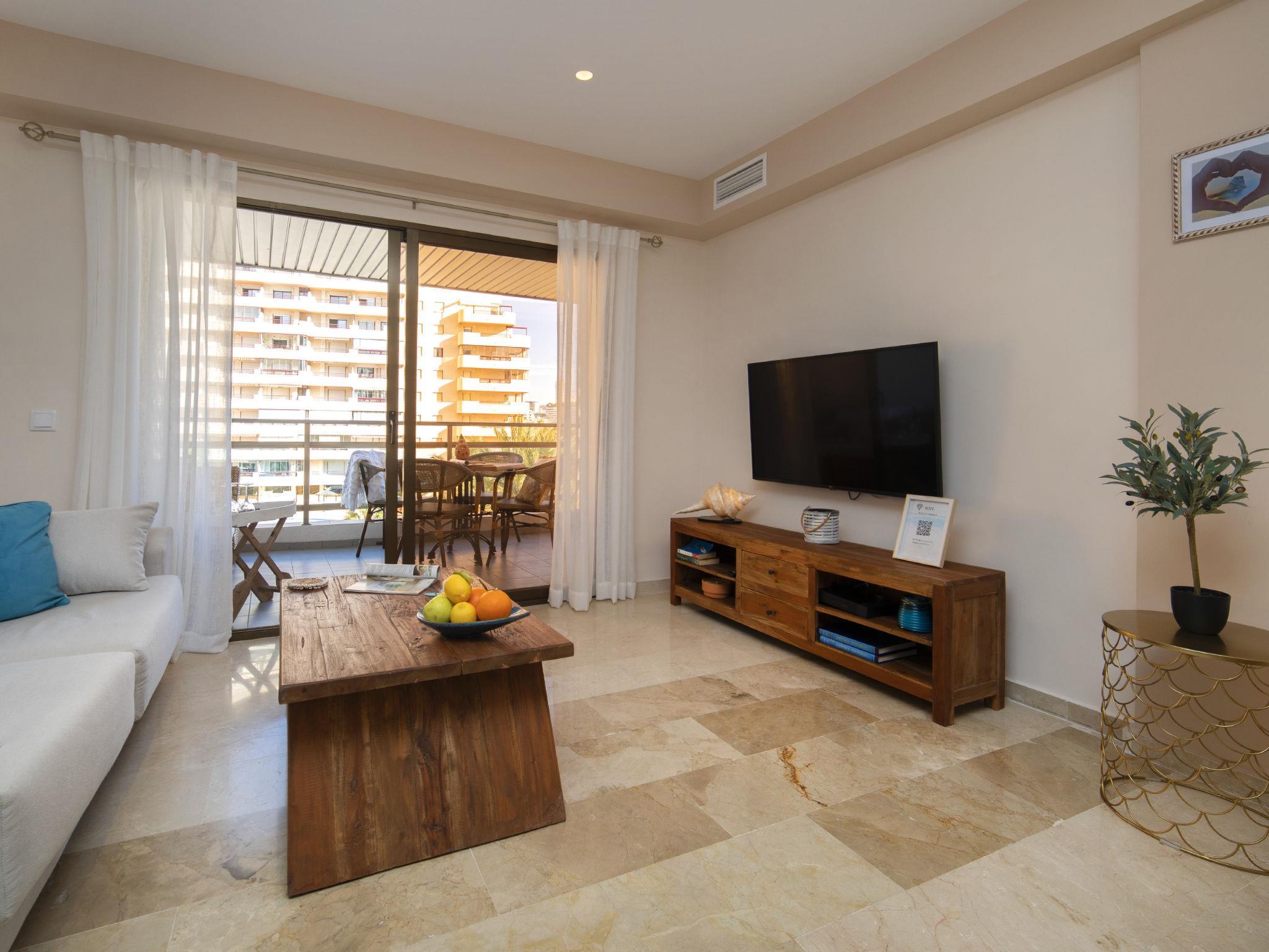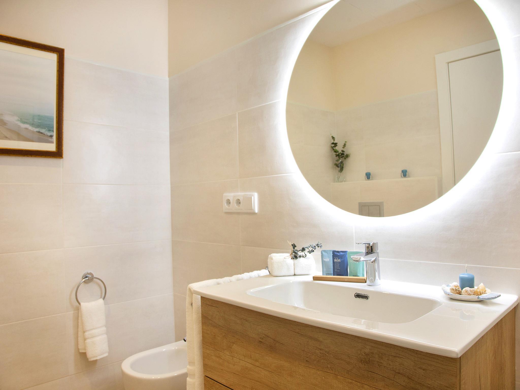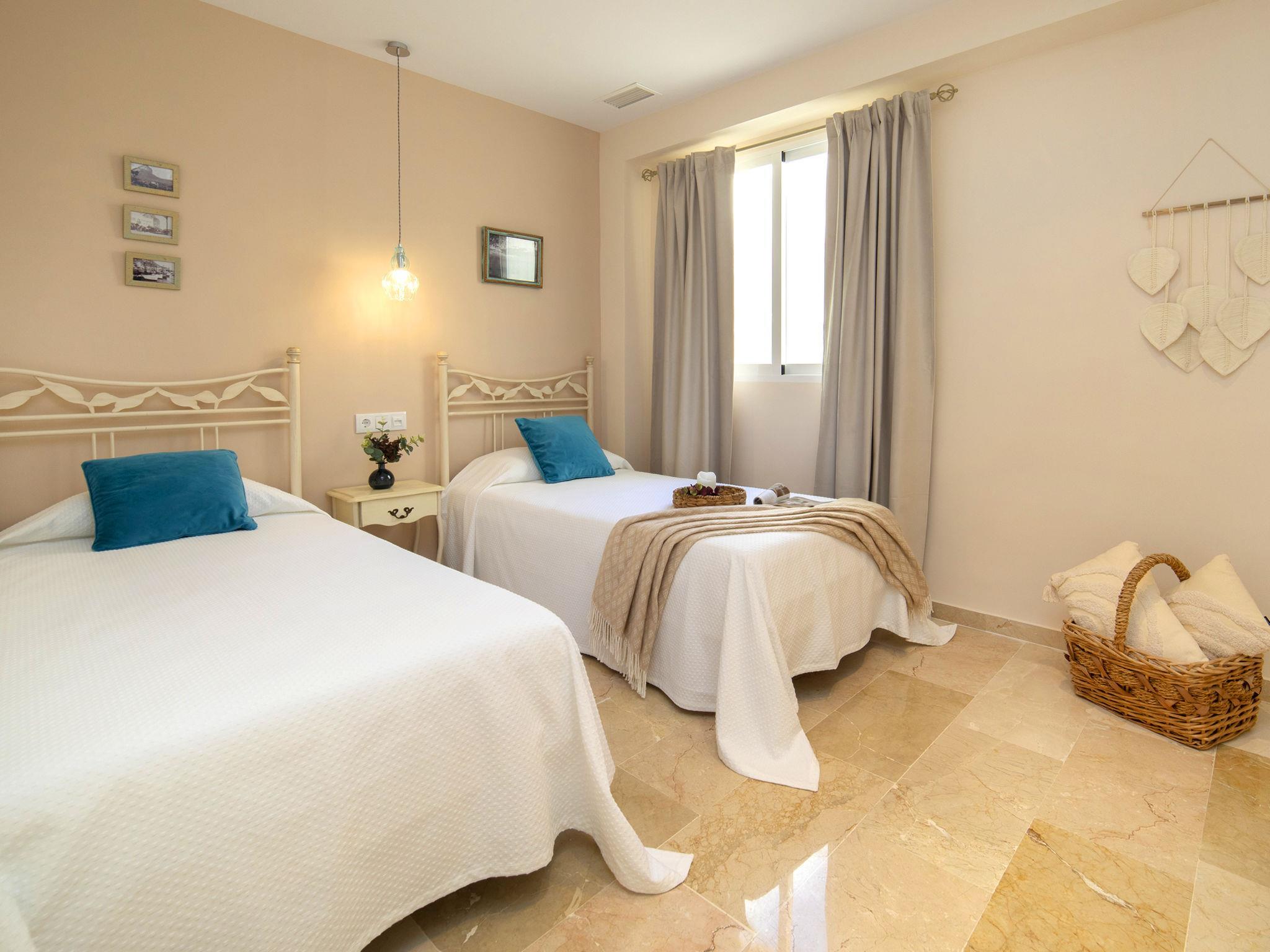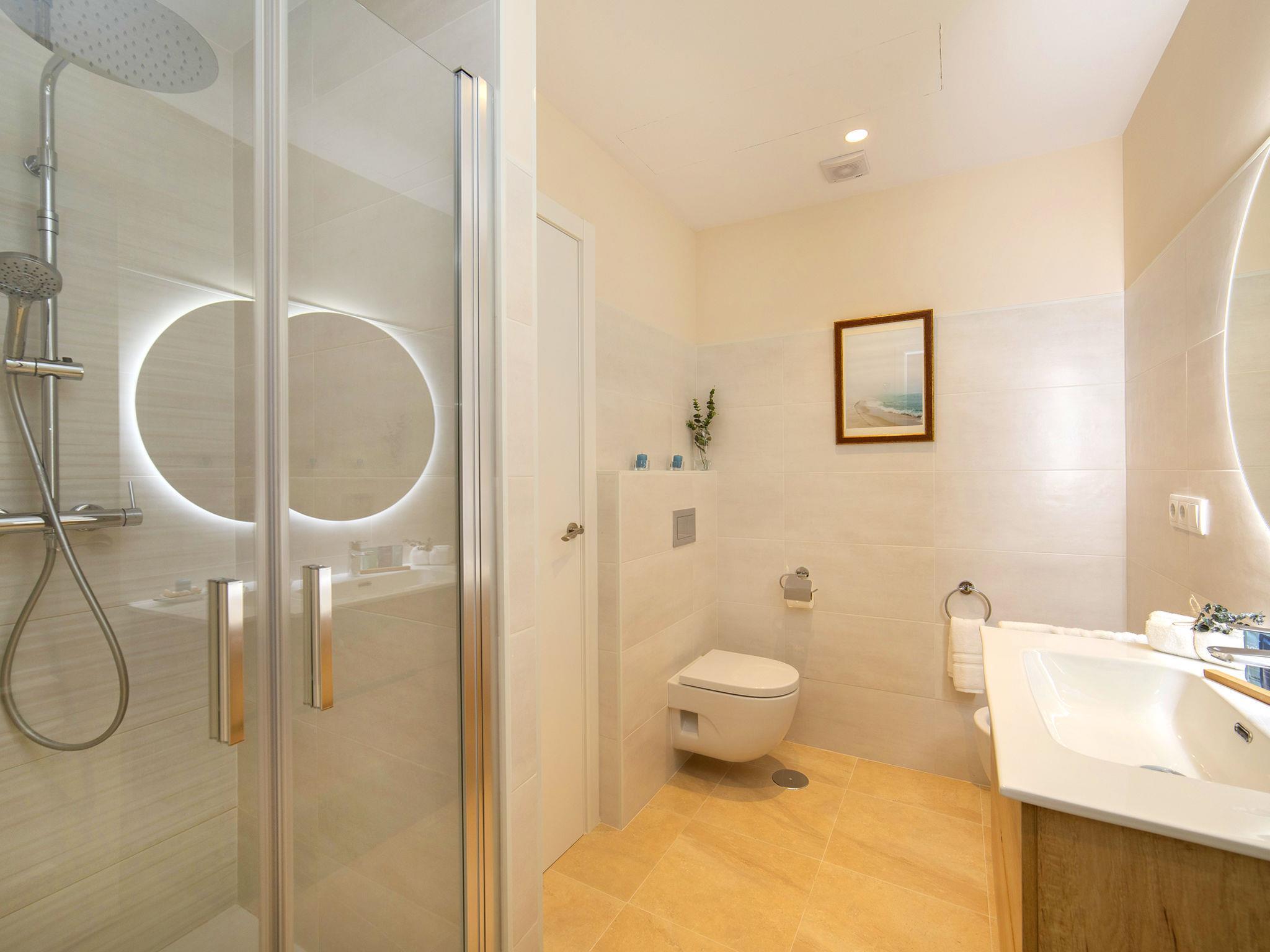 "Frentemar 03", 3-room apartment 129 m2 on 3rd floor. Bright, renovated in 2022, comfortable and modern furnishings: living/dining room with 1 sofabed, digital TV, air conditioning and forced-air heating. Exit to the terrace. 1 room with 2 beds (90 cm, length 190 cm), air conditioning and forced-air heating. 1 room with 1 french bed (150 cm, length 200 cm), air conditioning and forced-air heating. Kitchen (dishwasher, 4 ceramic glass hob hotplates, toaster, kettle, microwave, freezer, electric coffee machine). Shower/WC. Electric heating, boiler (50 litres). Heating available only from 01.11. to 30.04. Terrace furniture. Side, of the sea. Facilities: washing machine, iron, children's high chair, baby cot for up to 2 year olds, hair dryer. Internet (WiFi, free). Parking space n 6 (extra, 1 car). VT-495418-A // Reg. Nr.: ESFCTU000003029000336053000000000000000000VT-495418A1