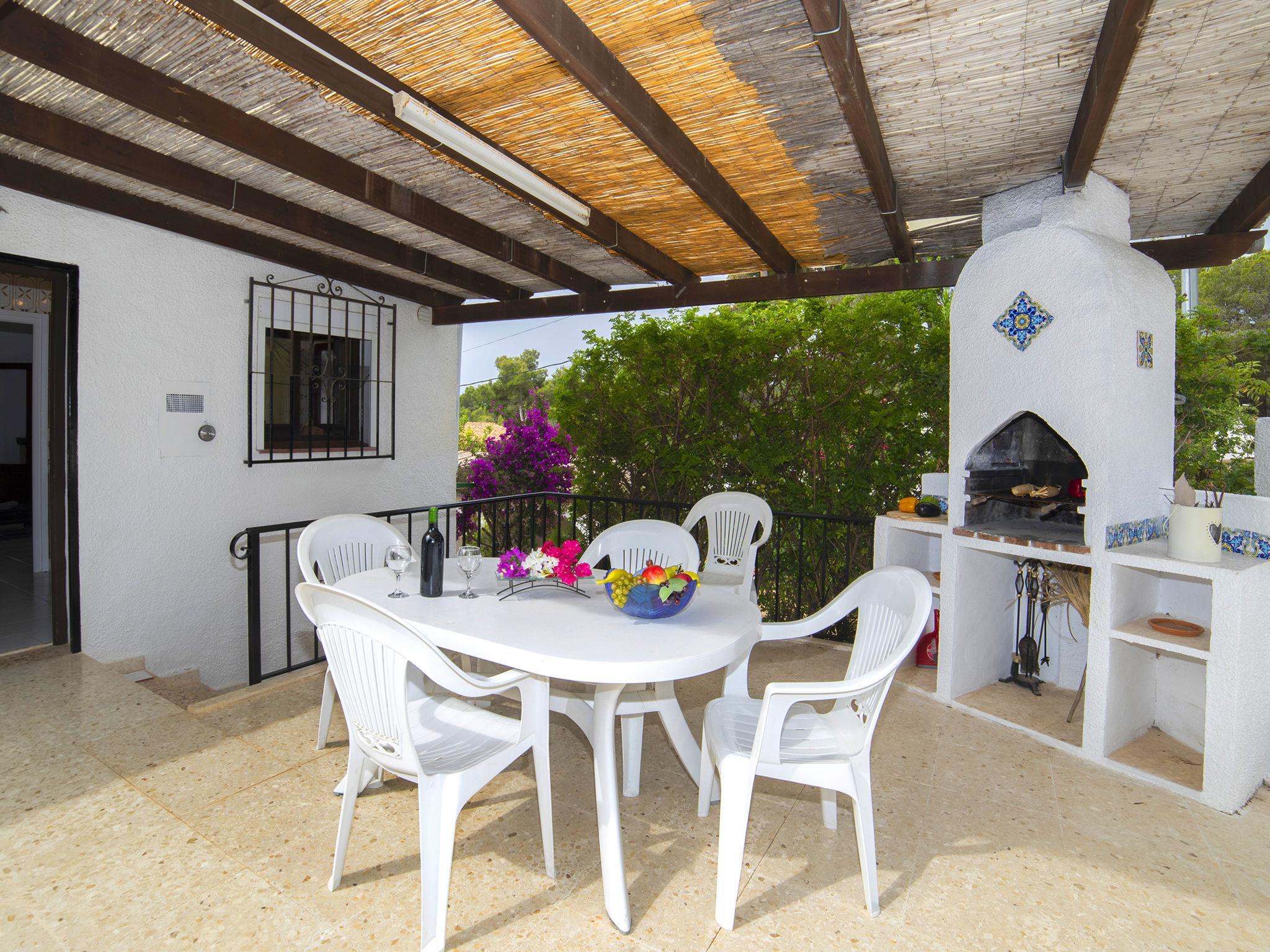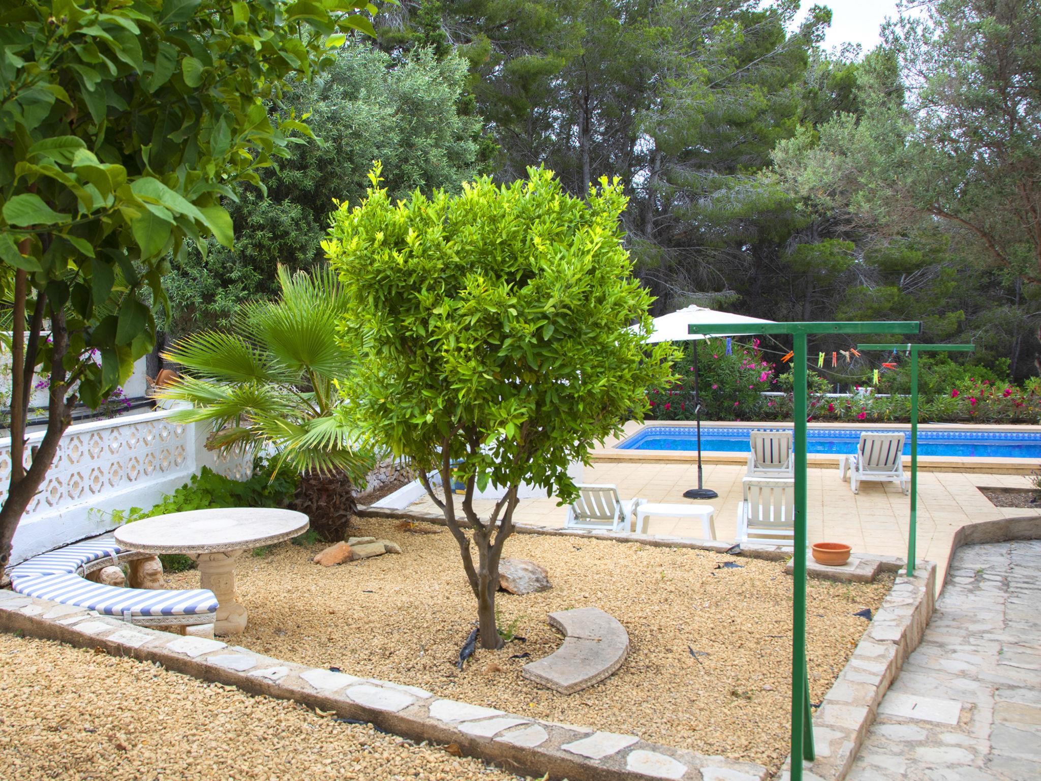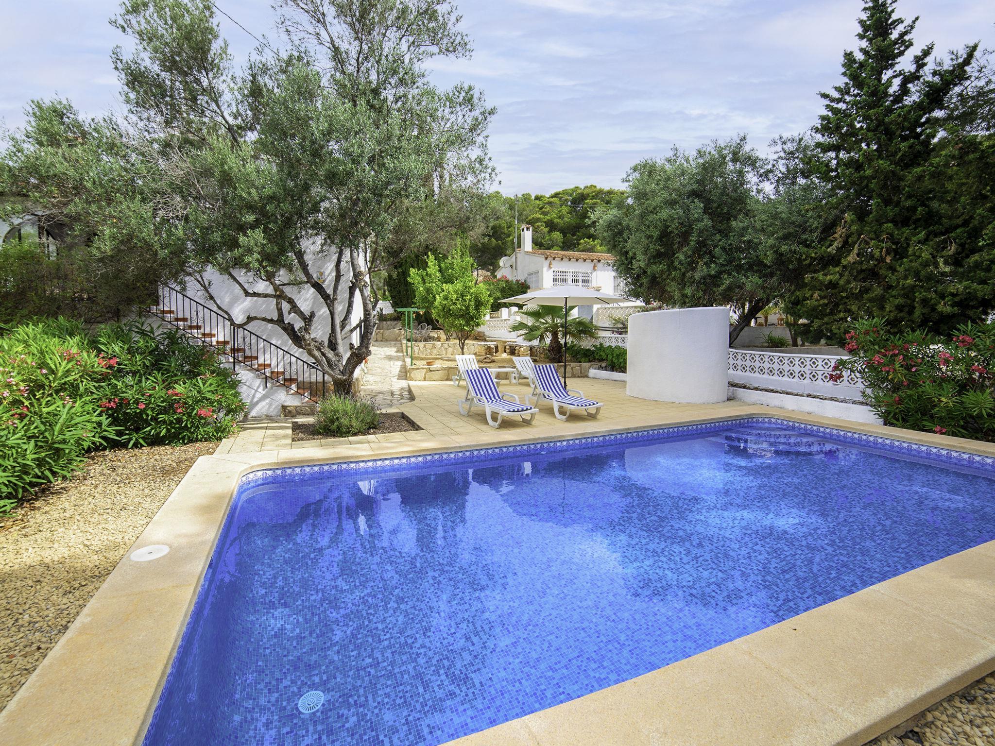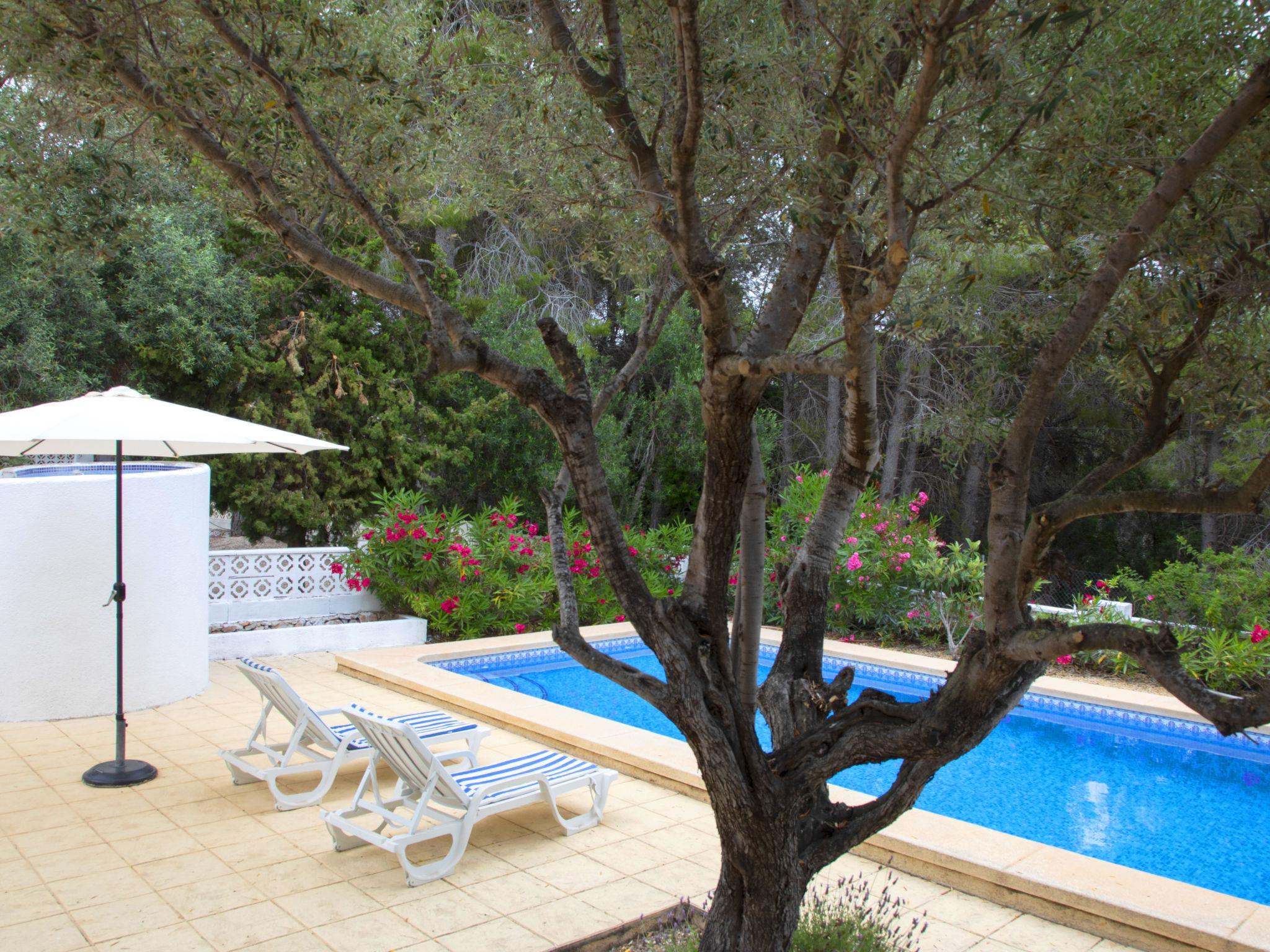 La Fustera 6 km from Calpe: Beautiful, rustic single-family house "La Cigarra", surrounded by trees. 6.4 km from the centre of Calpe, in a quiet position, 1.3 km from the sea, 1.3 km from the beach, in a cul-de-sac. Private: property 1'070 m2, garden, swimming pool angular (8 x 4 m, depth 107 - 170 cm, seasonal availability: 01.Jan. - 31.Dec.). Outdoor shower, terrace, garden furniture, barbecue. In the house: internet access, washing machine. Parking. Supermarket 1.1 km, restaurant 1.1 km, bar 1.1 km, bus stop 1.2 km, sandy beach 1.3 km. Sports harbour 1.5 km, marina 1.5 km, golf course (8 hole) 6.3 km, surf school 1.5 km, sailing school 1.5 km, tennis 4.8 km, riding stable 9.8 km, walking paths from the house 30 m, cycle lane 20 m. Nearby attractions: Aqualandia, Mundomar, Terra Mítica, Terra Natura, y Benidorm Palace (Benidorm). Hiking paths: Peñon de Ifach 6 km. Please note: suitable for families. The beach is 12 minutes on foot.