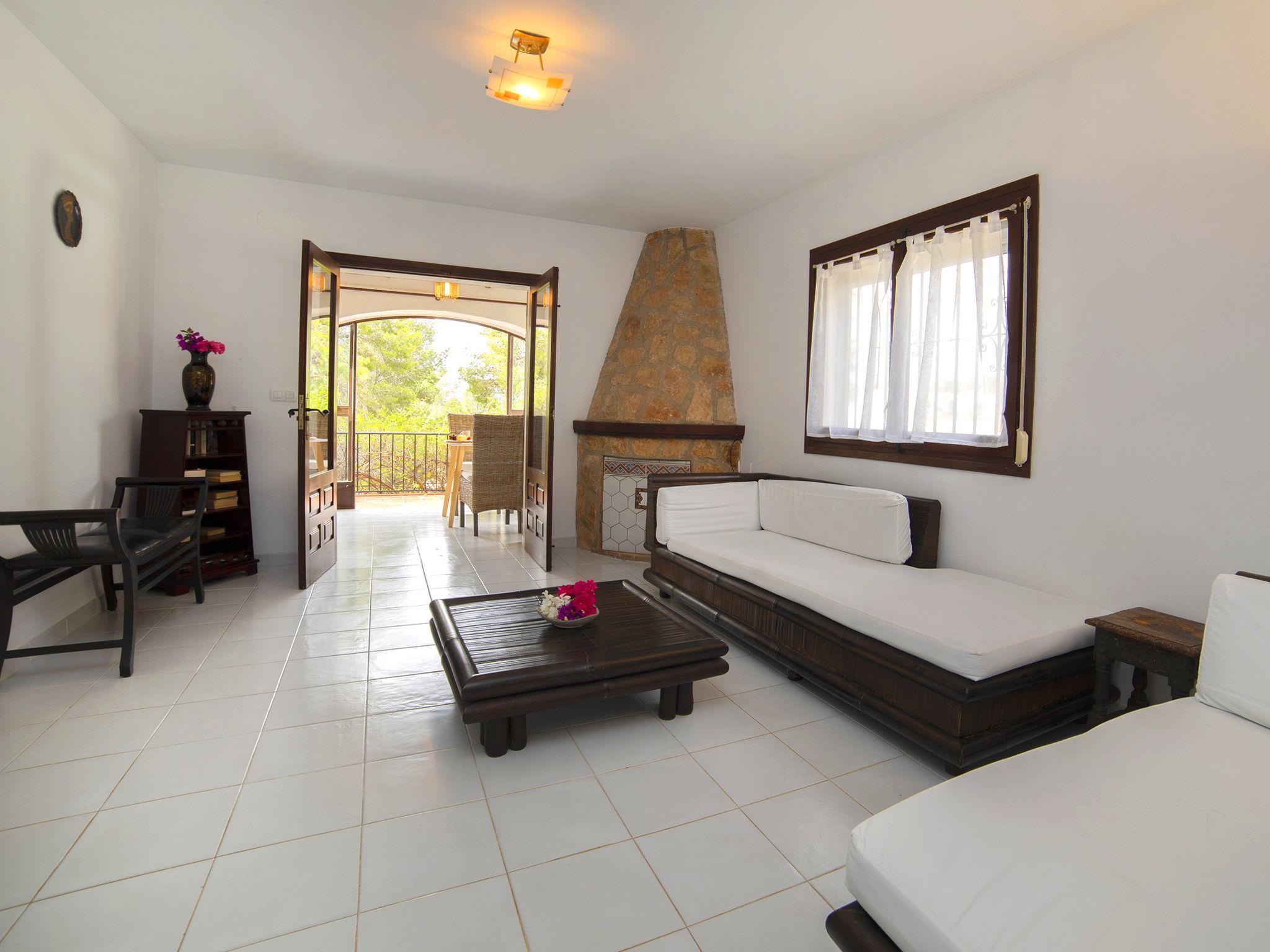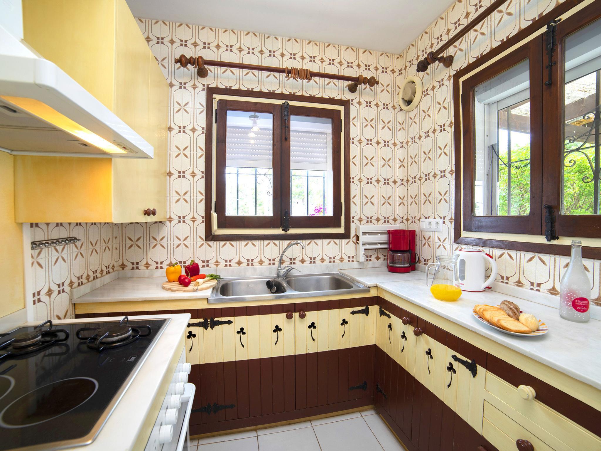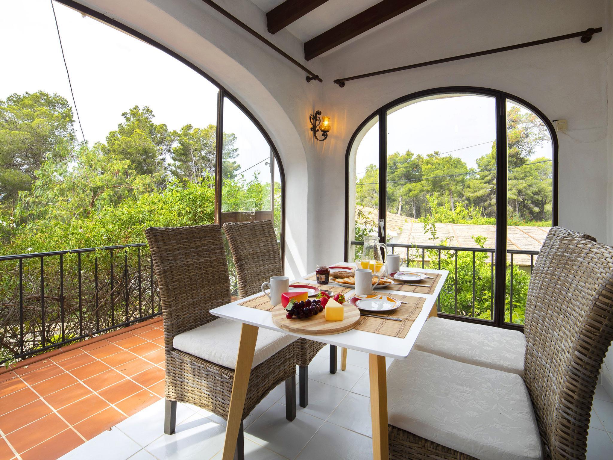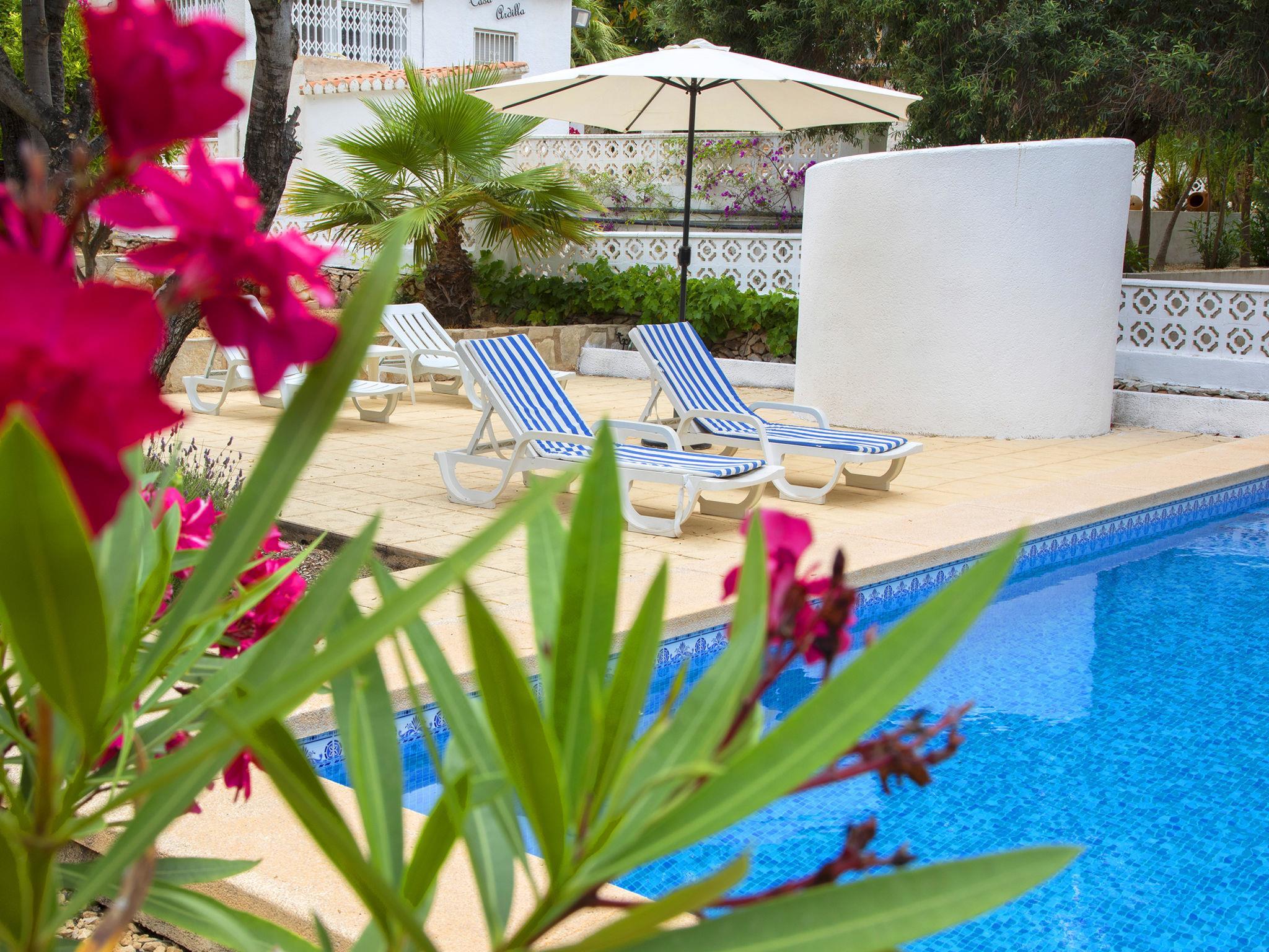 La Fustera 6 km from Calpe: Beautiful, rustic single-family house "La Cigarra", surrounded by trees. 6.4 km from the centre of Calpe, in a quiet position, 1.3 km from the sea, 1.3 km from the beach, in a cul-de-sac. Private: property 1'070 m2, garden, swimming pool angular (8 x 4 m, depth 107 - 170 cm, seasonal availability: 01.Jan. - 31.Dec.). Outdoor shower, terrace, garden furniture, barbecue. In the house: internet access, washing machine. Parking. Supermarket 1.1 km, restaurant 1.1 km, bar 1.1 km, bus stop 1.2 km, sandy beach 1.3 km. Sports harbour 1.5 km, marina 1.5 km, golf course (8 hole) 6.3 km, surf school 1.5 km, sailing school 1.5 km, tennis 4.8 km, riding stable 9.8 km, walking paths from the house 30 m, cycle lane 20 m. Nearby attractions: Aqualandia, Mundomar, Terra Mítica, Terra Natura, y Benidorm Palace (Benidorm). Hiking paths: Peñon de Ifach 6 km. Please note: suitable for families. The beach is 12 minutes on foot.