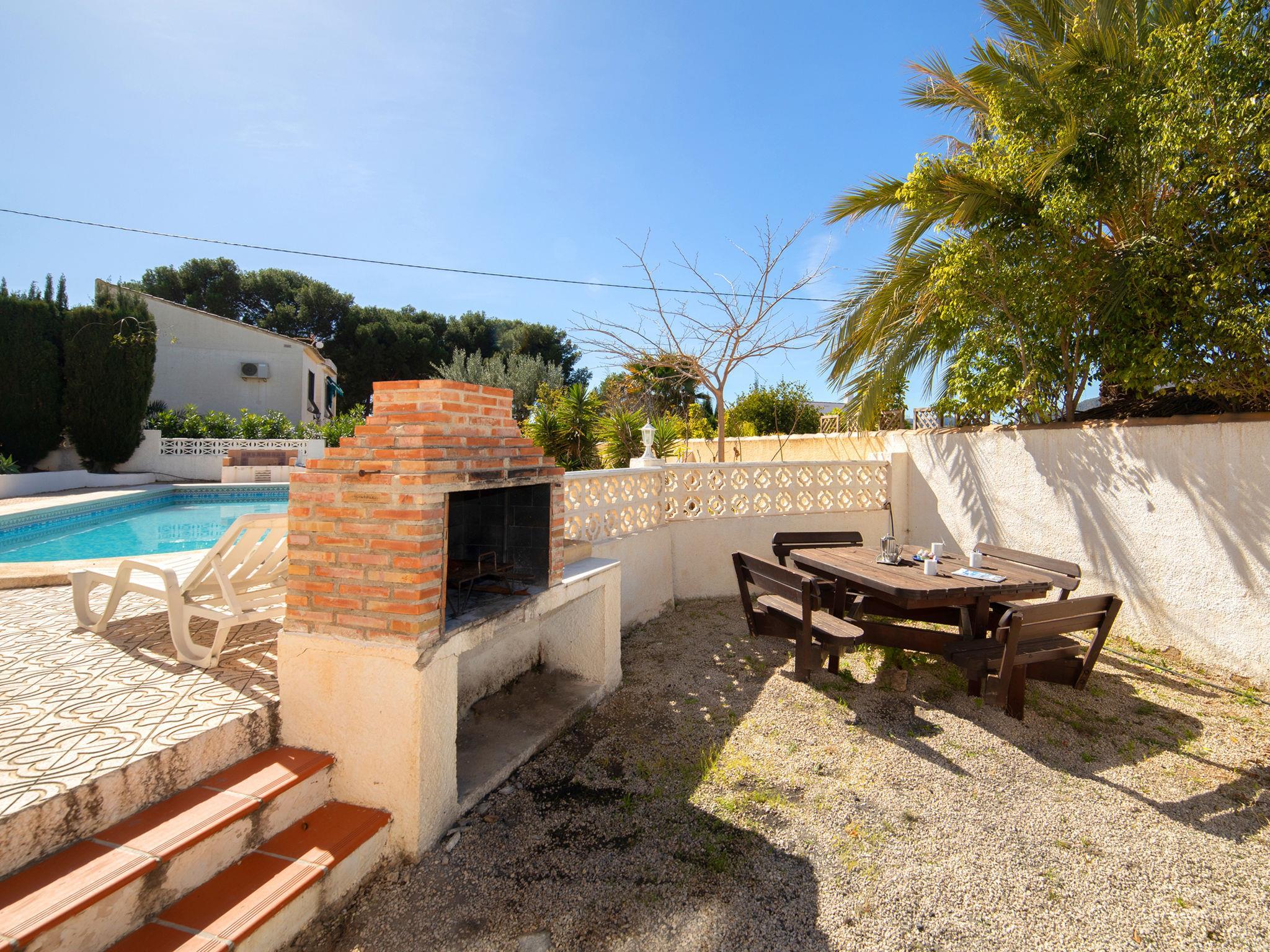 Villa "Marfilena". In the district of Los Pinos 3 km from the centre of Calpe, 60 km from the centre of Alicante, 120 km from the centre of Valencia, 600 m from the sea, 1.2 km from the beach. Private: property 1'200 m2 (fenced) with wildlife garden and trees, swimming pool (10 x 5 m, seasonal availability: 01.Jan. - 31.Dec.). Outdoor shower, garden furniture, barbecue, parking (for 4 cars) on the premises. Shop 500 m, supermarket 1.2 km, restaurant, bus stop 230 m, sandy beach "La Fossa" 1.2 km. Nearby attractions: Terra Mítica 35 km, Aqualandia 25 km, Benidorm Palace 25 km. Hiking paths: Peñon de Ifach 2.6 km, Sendero ecológico Calalga 600 m.