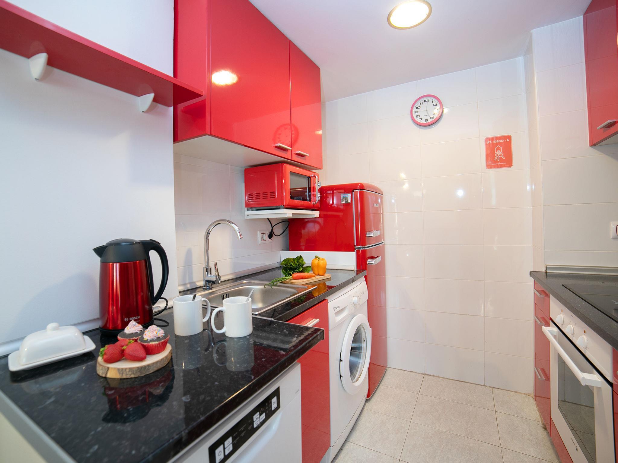 "Apolo VII", 2-room apartment 48 m2 on 2nd floor. Object suitable for 2 adults + 2 children. Bright, beautiful and cosy furnishings: living/dining room with 1 double sofabed, satellite TV, digital TV, air conditioning and forced-air heating. Exit to the terrace. 1 room with 1 french bed (135 cm, length 190 cm), electric heater. Open kitchen (oven, dishwasher, 3 ceramic glass hob hotplates, toaster, kettle, microwave, freezer, electric coffee machine). Shower/bidet/WC. Terrace 15 m2. Terrace furniture. View of the resort. Facilities: washing machine, iron, hair dryer. Internet (WiFi, free). VT-484120-A // Reg. Nr.: ESFCTU00000302900042450700000000000000000VT-484120-A2