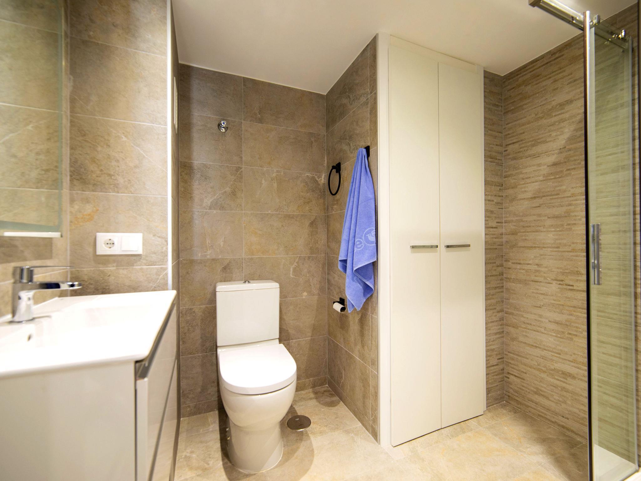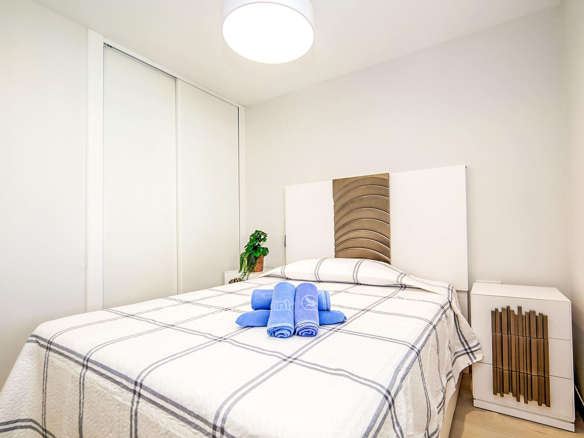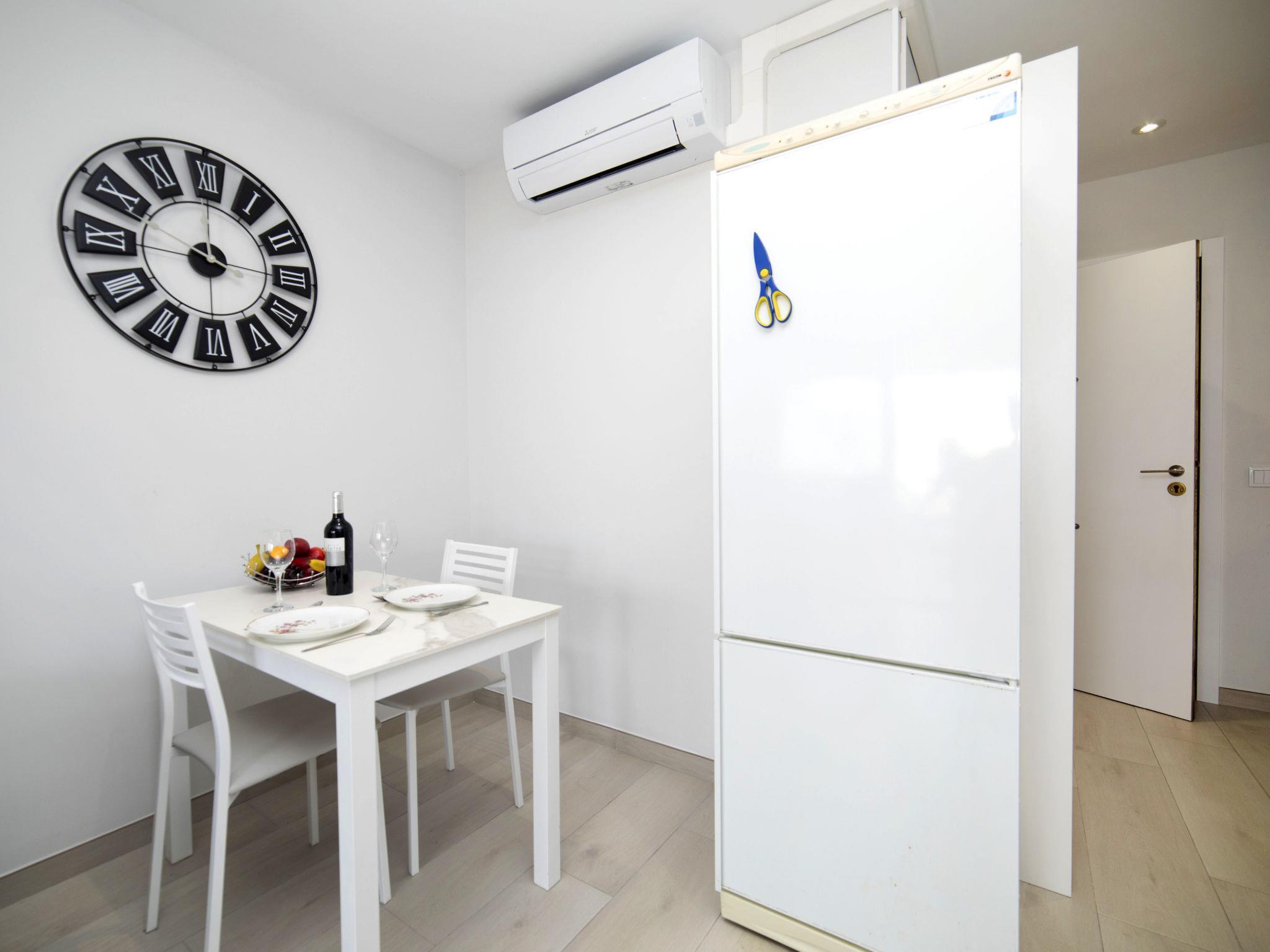 "Esmeralda", 2-room apartment 56 m2 on 6th floor. Object suitable for 2 adults + 2 children. Bright, comfortable and beautiful furnishings: living/dining room with 1 sofabed (140 cm, length 190 cm), digital TV, air conditioning and forced-air heating. Exit to the terrace. 1 room with 1 french bed (1 x 150 cm, length 190 cm), air conditioning, fan, forced-air heating and electric shutters. Open kitchen in the entrance (oven, 2 induction hot plates, toaster, kettle, microwave, electric coffee machine). Shower/WC. Large terrace. Terrace furniture. Side view of the sea and the town. Facilities: iron, children's high chair, baby cot, hair dryer. Internet (WiFi, free). Please note: non-smoking house. Maximum 1 pet/ dog allowed. CV-VUT0516617-A // Reg. Nr.: ESFCTU0000030290004398840000000000000000VUT0516617-A1