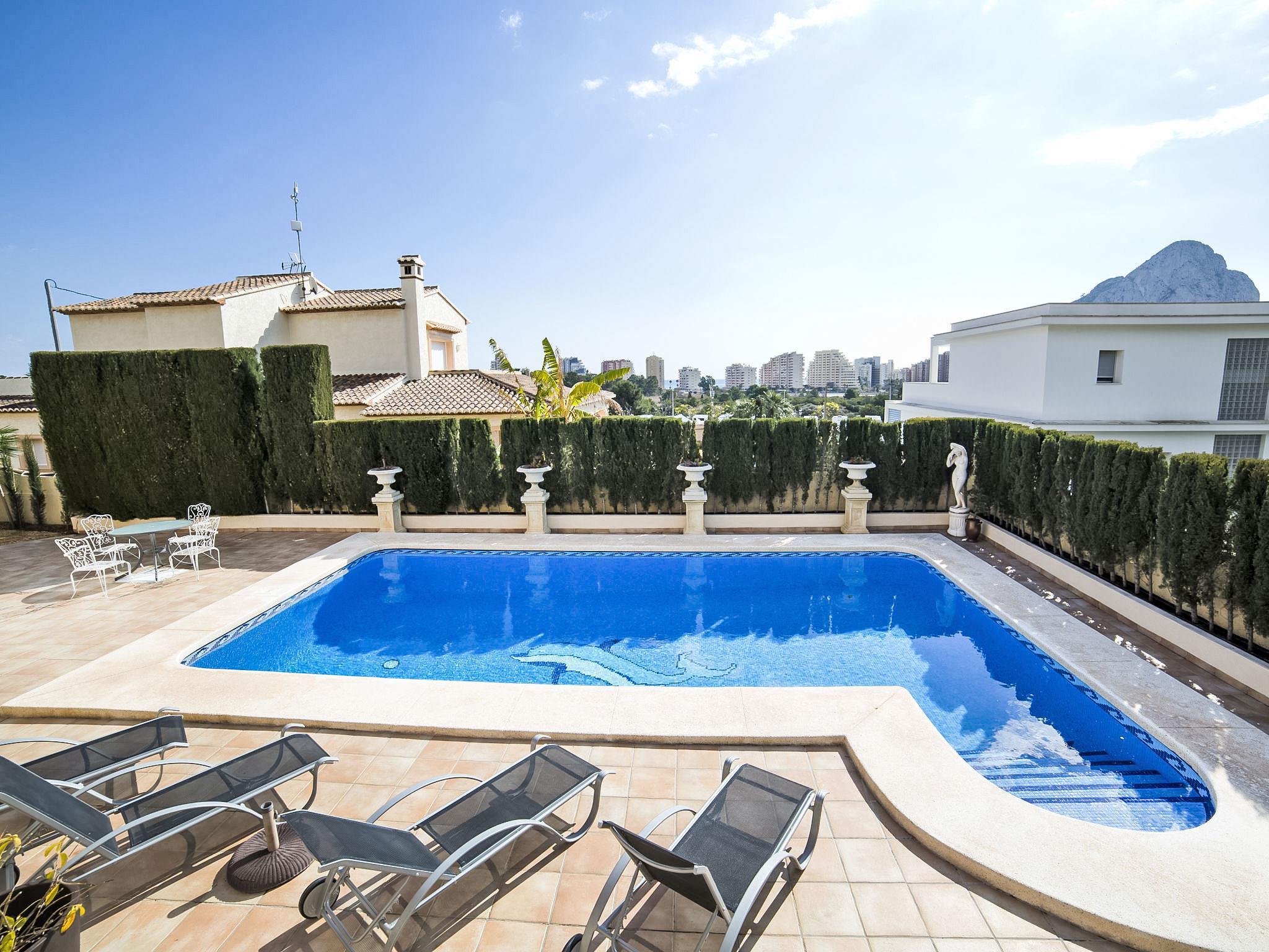 Los Almendros: Beautiful, cosy, comfortable villa "Villa Albert", 2 storeys. In the resort 2.6 km from the centre of Calpe, in a quiet, sunny position residential area (villas), 1.5 km from the sea, 1.5 km from the beach. Private: property 825 m2 (fenced), beautiful, well-kept garden with flowers, swimming pool (seasonal availability: 01.Jan. - 31.Dec.). Outdoor shower, terrace, barbecue. In the house: WiFi, washing machine. Parking at the house. Supermarket 700 m, restaurant 800 m, bar 1 km, café 1 km, bicycle rental 2.6 km, bus stop 1.1 km, sandy beach "Playa de la Fossa" 1.5 km. Sports harbour 2.8 km, marina 2.8 km, golf course (9 hole) 11.4 km, tennis 2.7 km. Nearby attractions: Aqualandia, Mundomar, Terra Mítica, Terra Natura, Benidorm Palace (Benidorm).