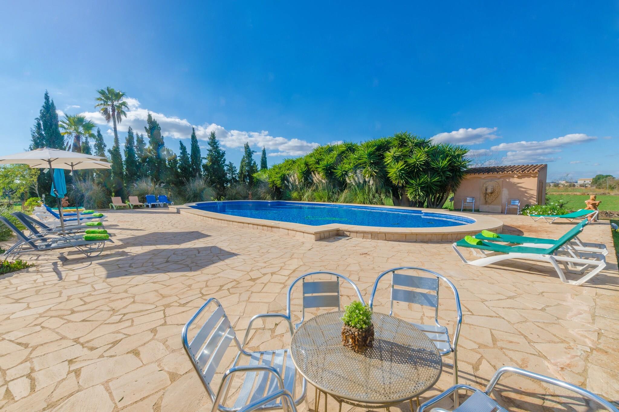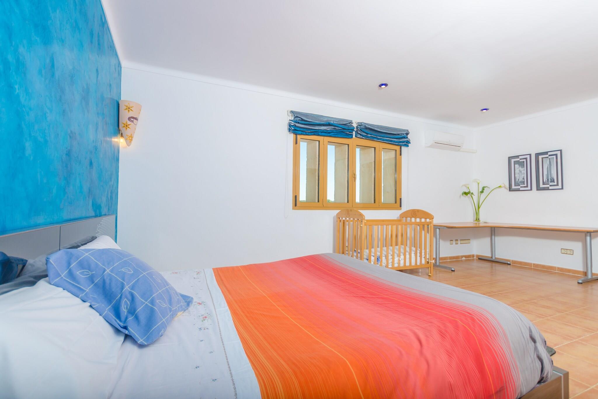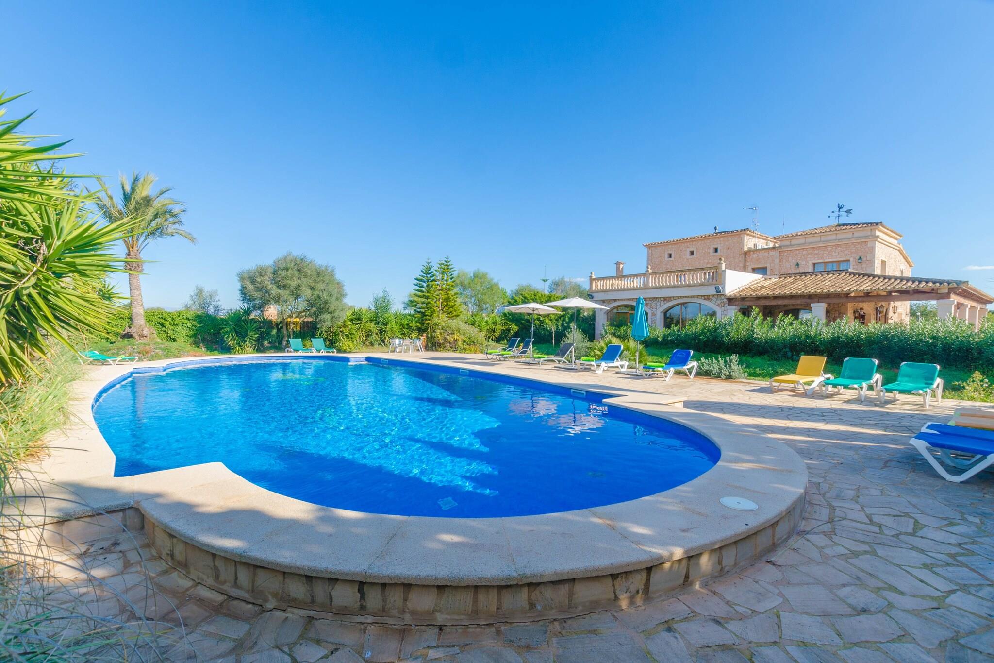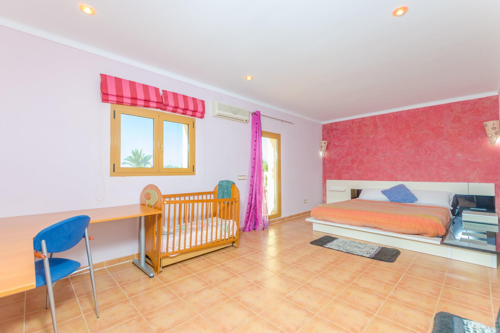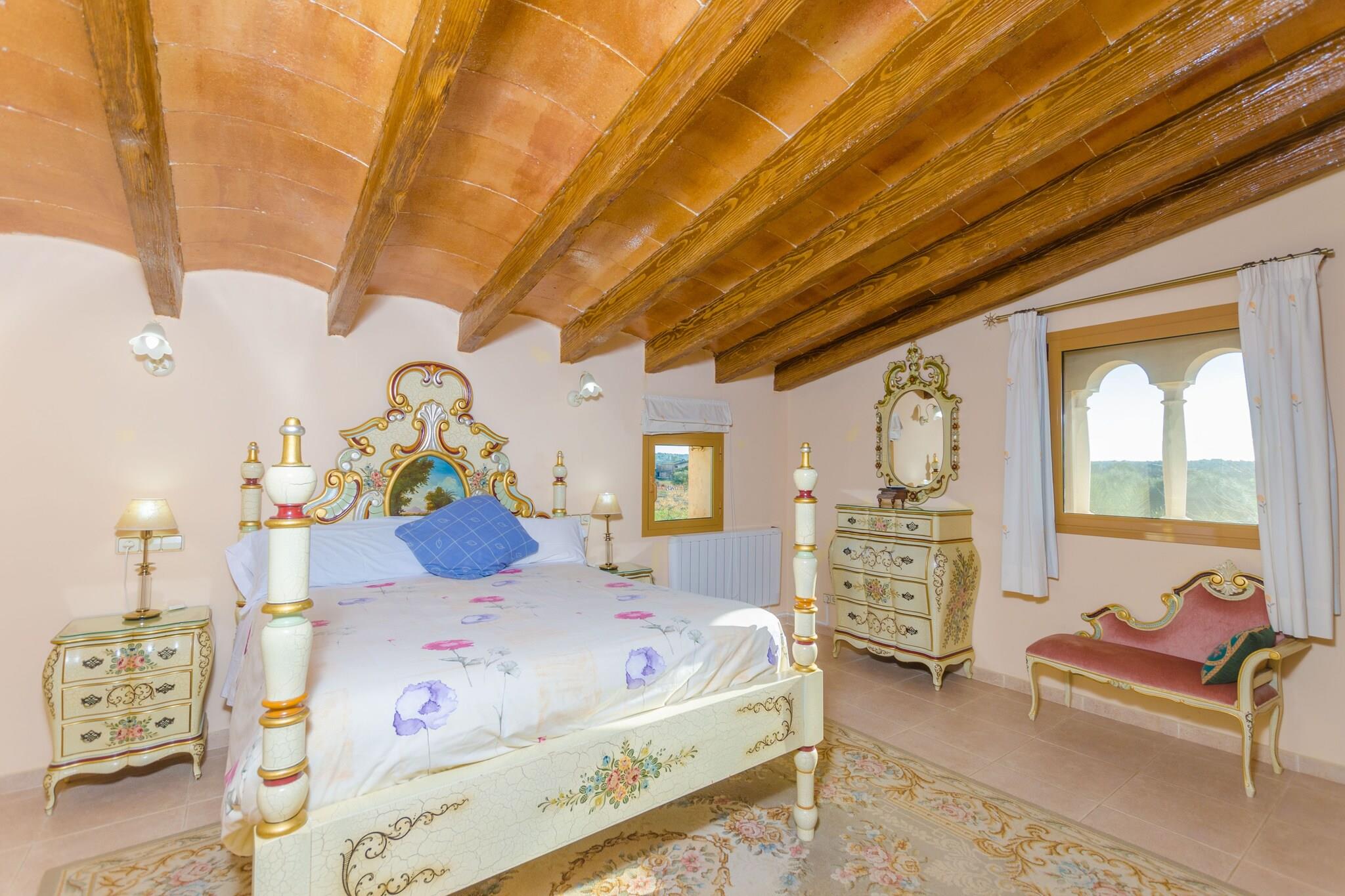 The exteriors of this villa are unbeatable. The private chlorine pool is really spectacular because of its 20 x 10 m and its depth of 0.5 to 3 m. In its surroundings, there is a terrace with 11 sun loungers to enjoy the sun. The porch is ideal to get relaxed after having a great swim. It also has various tables and chairs to have a drink or taste a delicious barbecue prepared in the open air. The plot is fenced and the privacy is total. The house is spread over three floors. On the ground floor, there is a large living room with satellite TV, a CD player and a DVD player. From there, you access the dining room and then the kitchen, which is equipped with a ceramic hob. Right next to it is the laundry area, where you will find 2 washing machines, 2 dryers, an iron and an ironing board. On this floor, there are 2 bedrooms, one with a double bed and another with two single beds, as well as 2 bathrooms with bathtubs. A second sitting room is located next to the staircase leading to the first floor. Here, there are 3 more bedrooms with double beds and en-suite bathrooms, two with showers and one with a bathtub. On the top floor, there is a bathroom with a shower and 2 bedrooms: one with a double bed and two single beds, and another with two single beds and a trundle bed. There are 2 cots and 2 high chairs available. The main living room, the dining room and 6 bedrooms are air-conditioned. The country house is located at only 4.7 km from Campos village where you will find all the necessary services such as supermarket, restaurants, bars, etc. Every thursday there is a fresh fruits and vegetables market and on Saturdays there is a market with all sorts of products in the streets of the center. The nearest beach is Es Trenc, at 13.5 km, one of the best ones of Mallorca due to its white sand and crystal-clear waters. Please note that check-in must be carried out between 4:00 p.m. and 10:00 p.m. Arrivals after this time are subject to a surcharge of 50 euros, which must be paid at the accommodation. Consult the advertiser for possible charges. Pets are welcome. The holding of events is forbidden. There is exterior parking for 8 cars. Distances Beach: 13.5 km - Es Trenc Airport: 38 km - Son Sant Joan Golf course: 25.2 km - Vall d'Or Town: 4.7 km - Campos Train station: 45 km - Manacor Bus stop: 4 km - Avinguda Nicolau Oliver Fullana Ferry: 44.8 km - Palma Hospital: 30.1 km - Manacor Tourist license: VT/1567Single Rental Registry: ESFCTU000007008000873221000000000000000000000VT/15678The Ecotasa (tourist tax) must be paid cash on site when checking in. The amount varies between 0.55EURO/night and guest during the low season and 2.2EURO/night and guest during the high season. The tax is reduced by half from the 9th day of your stay. All guests have to pay the Ecotasa, except people under 16 years. You will have to pay the deposit amount at the arrival to the owner.Homerti - Central de Reservas CR/33 Electricity (January - December): 0.40 EUR/KW (mandatory)