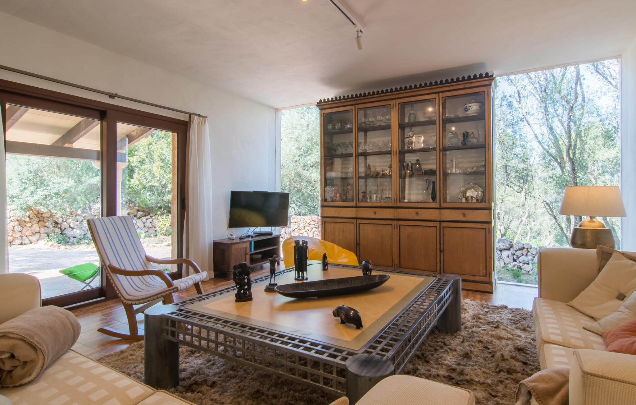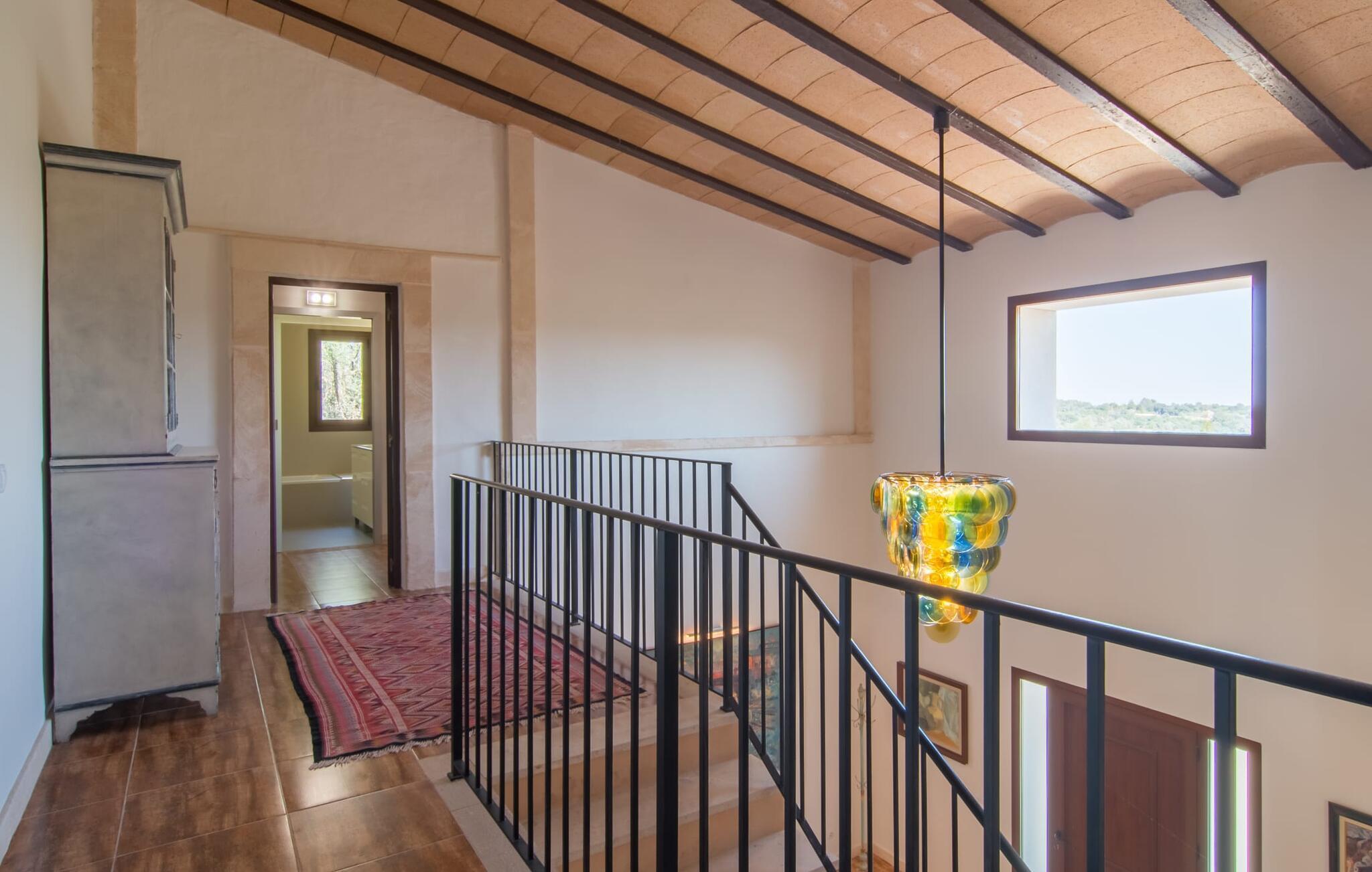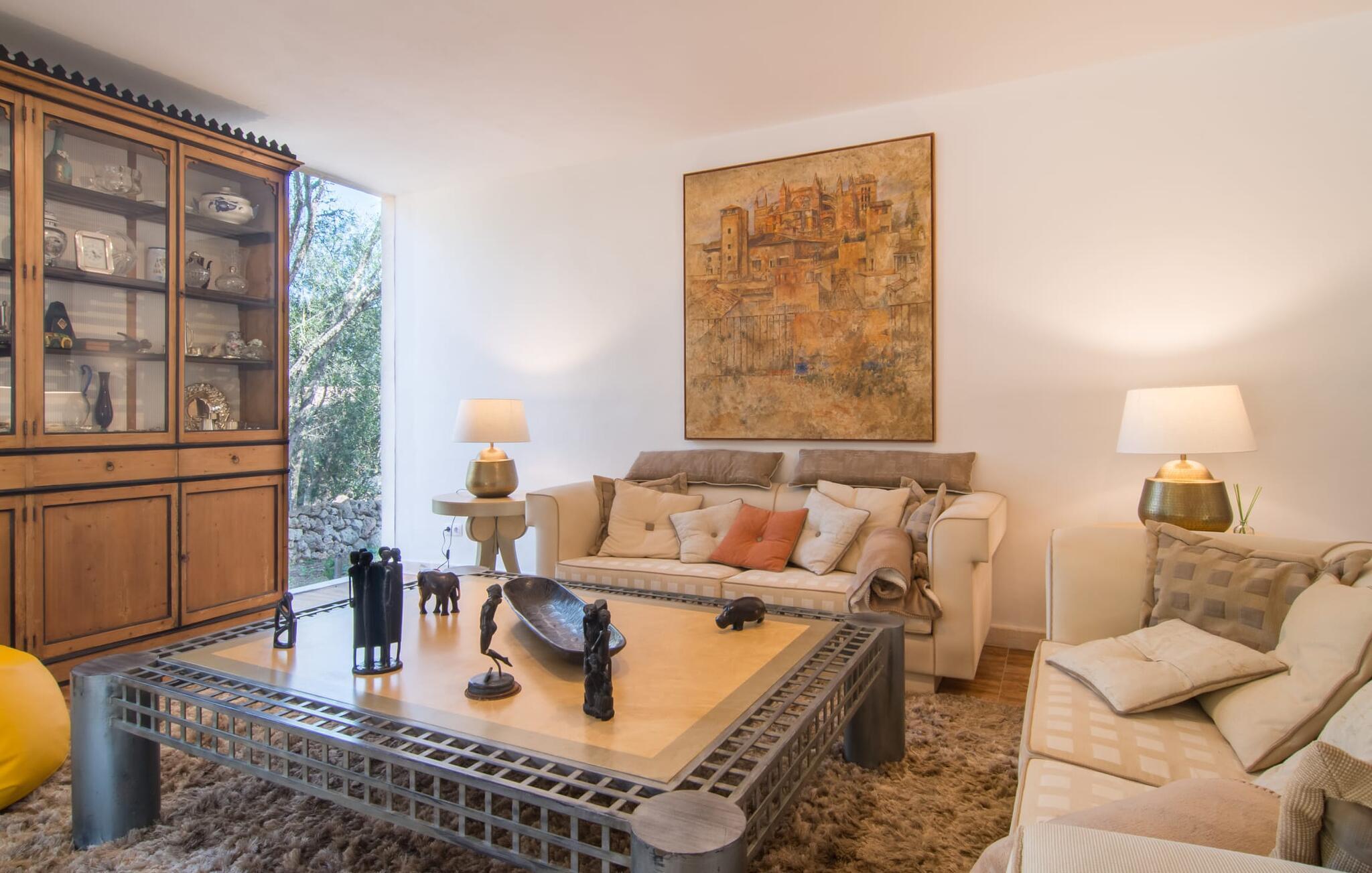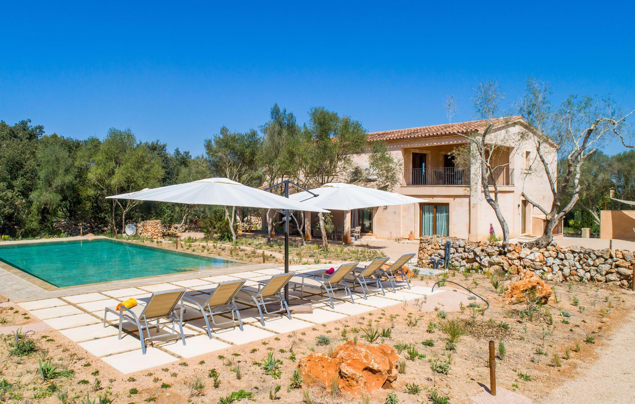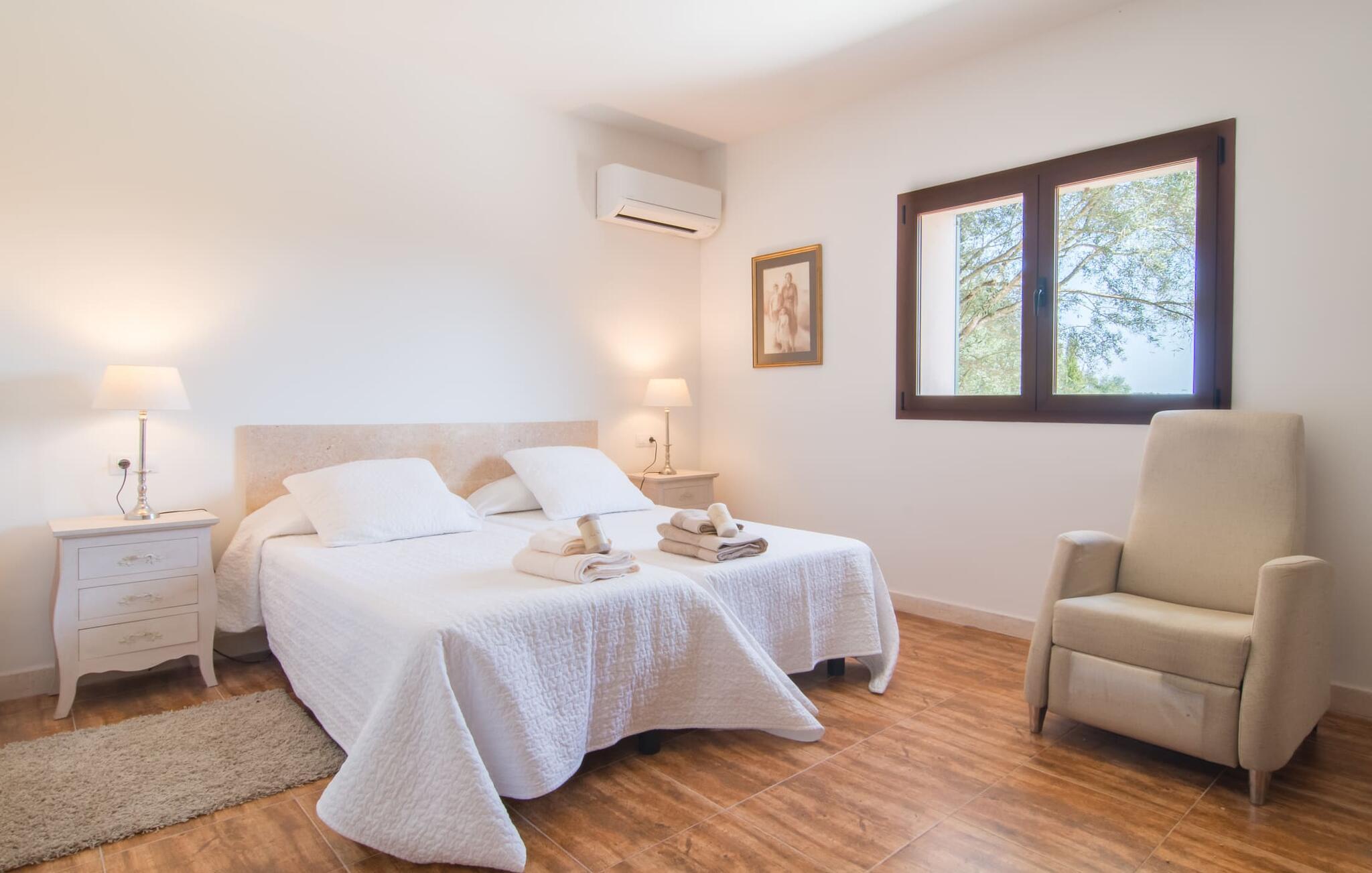 Entspannung ist die Hauptaktivität auf dem Programm, sodass das außergewöhnlich schicke Innen- und Außendesign immer Ihren Bedürfnissen entspricht. Herzstück ist der kombinierte Wohnbereich. Dieser lichtdurchflutete Wohnraum mit bodentiefen Fenstern gliedert sich in ein gemütliches Wohnzimmer mit Sofalandschaft und TV-Ecke, einen stilvollen Essbereich vor einem angenehmen Kamin und eine rustikale Bibliothek, ebenfalls mit Smart-TV. So viele Lieblingsorte zur Auswahl! Terrakotta, Holzböden, geschwungene Decken und „Stuten“ unterstreichen die natürliche Atmosphäre des Innenraums. Diese Qualität entdecken Sie auch in der voll ausgestatteten Küche mit hochwertigen Holzmöbeln. Gleichzeitig ähnelt es einem alten Bauernhaus mit dem zweiten Kamin: Dieser bildete in früheren Zeiten den gesellschaftlichen Mittelpunkt, da er oft der einzige beheizte Raum war. Nach langen, frei gestalteten Tagen stellt sich irgendwann die Müdigkeit ein – Sie können sich dann in eines der insgesamt vier klimatisierten Schlafzimmer zurückziehen, die sich überwiegend im Obergeschoss befinden (ein Schlafzimmer mit Bad befindet sich im Erdgeschoss). Im ersten Stock verfügt jedes der schicken Schlafzimmer mit fantastischem Ausblick auch über ein Badezimmer mit ebenerdiger Dusche oder Badewanne. Auf dem großzügigen Balkon mit Überdachung, von dem Sie den Garten und den Pool überblicken können, haben Sie einen idealen Rückzugsort zum Lesen eines guten Buches. Seien wir mal ehrlich – fällt Ihnen irgendetwas ein, bei dem Sie Kompromisse eingehen müssten? Wir sind von „Can Madis“ uneingeschränkt begeistert.