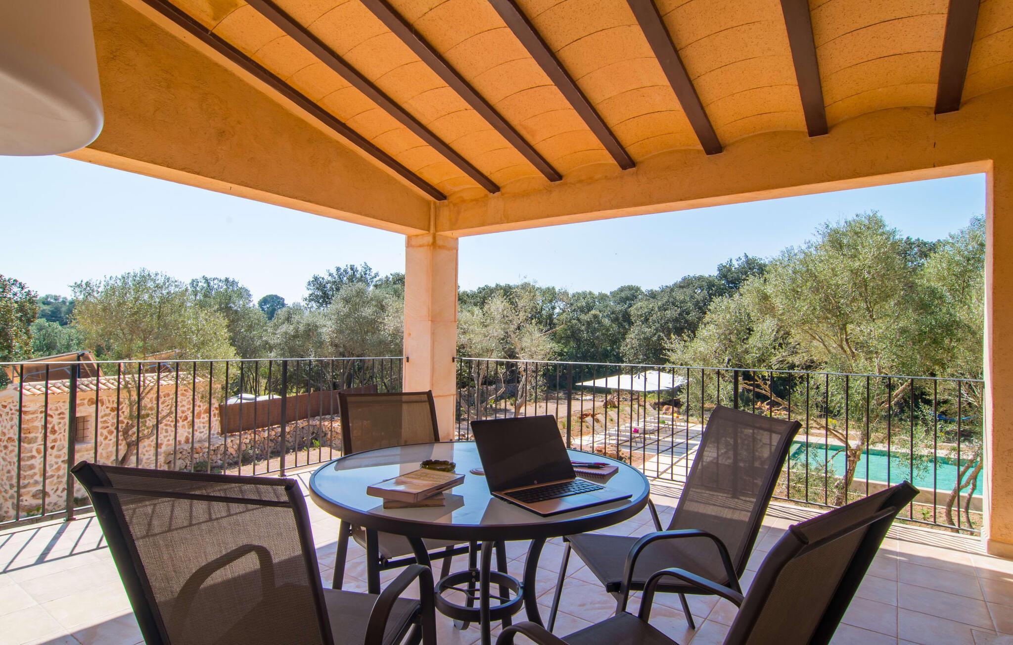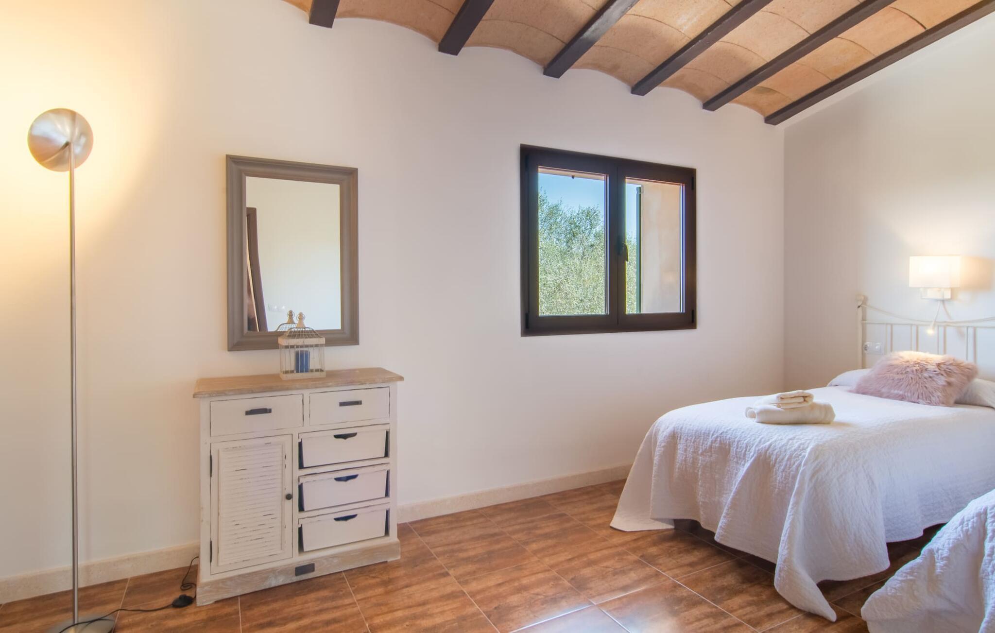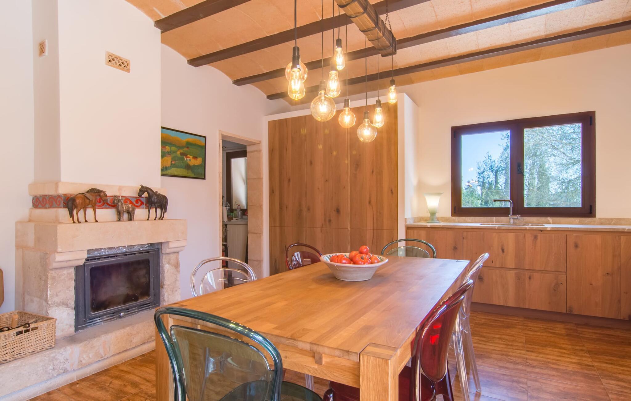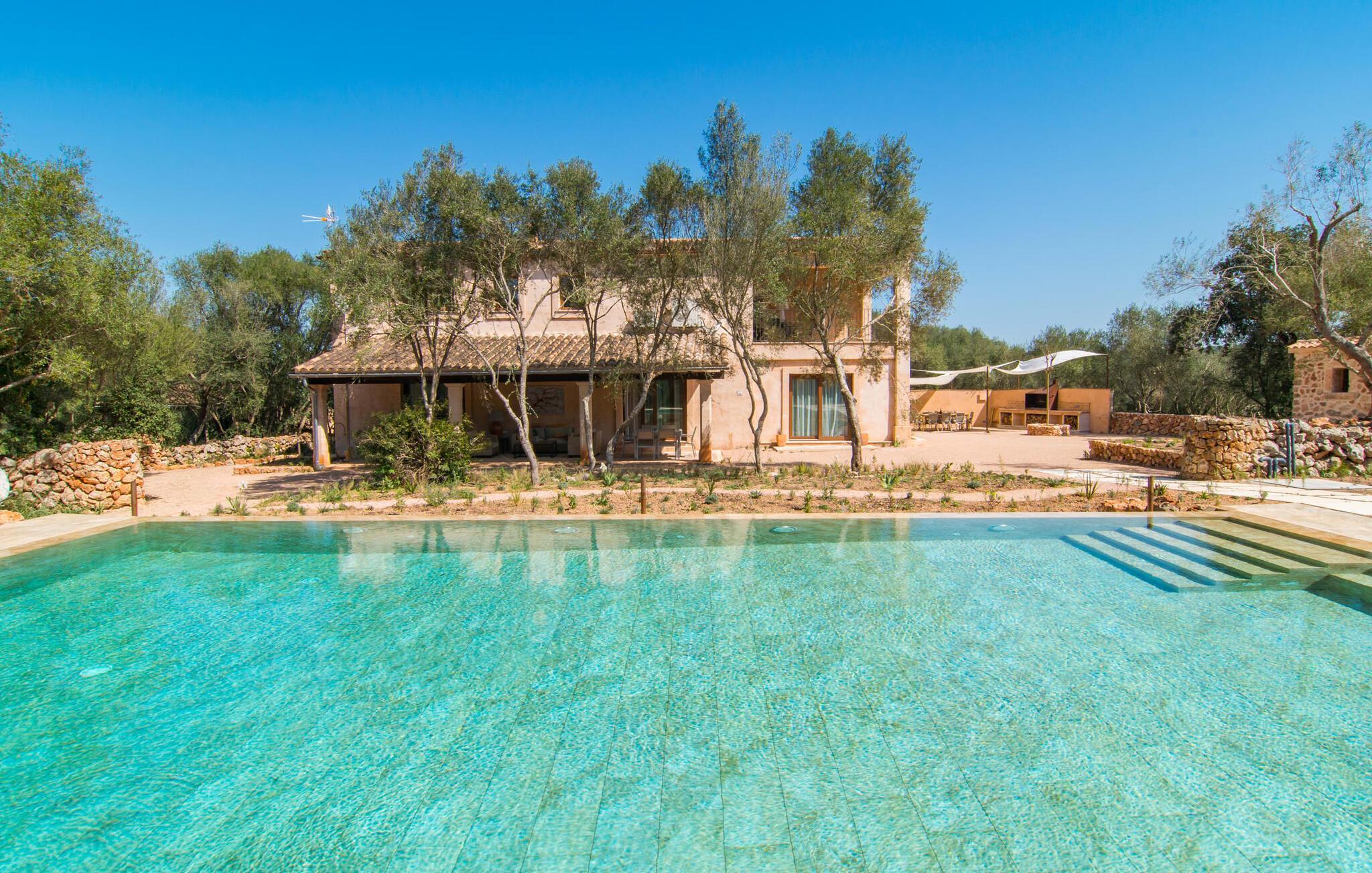 Entspannung ist die Hauptaktivität auf dem Programm, sodass das außergewöhnlich schicke Innen- und Außendesign immer Ihren Bedürfnissen entspricht. Herzstück ist der kombinierte Wohnbereich. Dieser lichtdurchflutete Wohnraum mit bodentiefen Fenstern gliedert sich in ein gemütliches Wohnzimmer mit Sofalandschaft und TV-Ecke, einen stilvollen Essbereich vor einem angenehmen Kamin und eine rustikale Bibliothek, ebenfalls mit Smart-TV. So viele Lieblingsorte zur Auswahl! Terrakotta, Holzböden, geschwungene Decken und „Stuten“ unterstreichen die natürliche Atmosphäre des Innenraums. Diese Qualität entdecken Sie auch in der voll ausgestatteten Küche mit hochwertigen Holzmöbeln. Gleichzeitig ähnelt es einem alten Bauernhaus mit dem zweiten Kamin: Dieser bildete in früheren Zeiten den gesellschaftlichen Mittelpunkt, da er oft der einzige beheizte Raum war. Nach langen, frei gestalteten Tagen stellt sich irgendwann die Müdigkeit ein – Sie können sich dann in eines der insgesamt vier klimatisierten Schlafzimmer zurückziehen, die sich überwiegend im Obergeschoss befinden (ein Schlafzimmer mit Bad befindet sich im Erdgeschoss). Im ersten Stock verfügt jedes der schicken Schlafzimmer mit fantastischem Ausblick auch über ein Badezimmer mit ebenerdiger Dusche oder Badewanne. Auf dem großzügigen Balkon mit Überdachung, von dem Sie den Garten und den Pool überblicken können, haben Sie einen idealen Rückzugsort zum Lesen eines guten Buches. Seien wir mal ehrlich – fällt Ihnen irgendetwas ein, bei dem Sie Kompromisse eingehen müssten? Wir sind von „Can Madis“ uneingeschränkt begeistert.