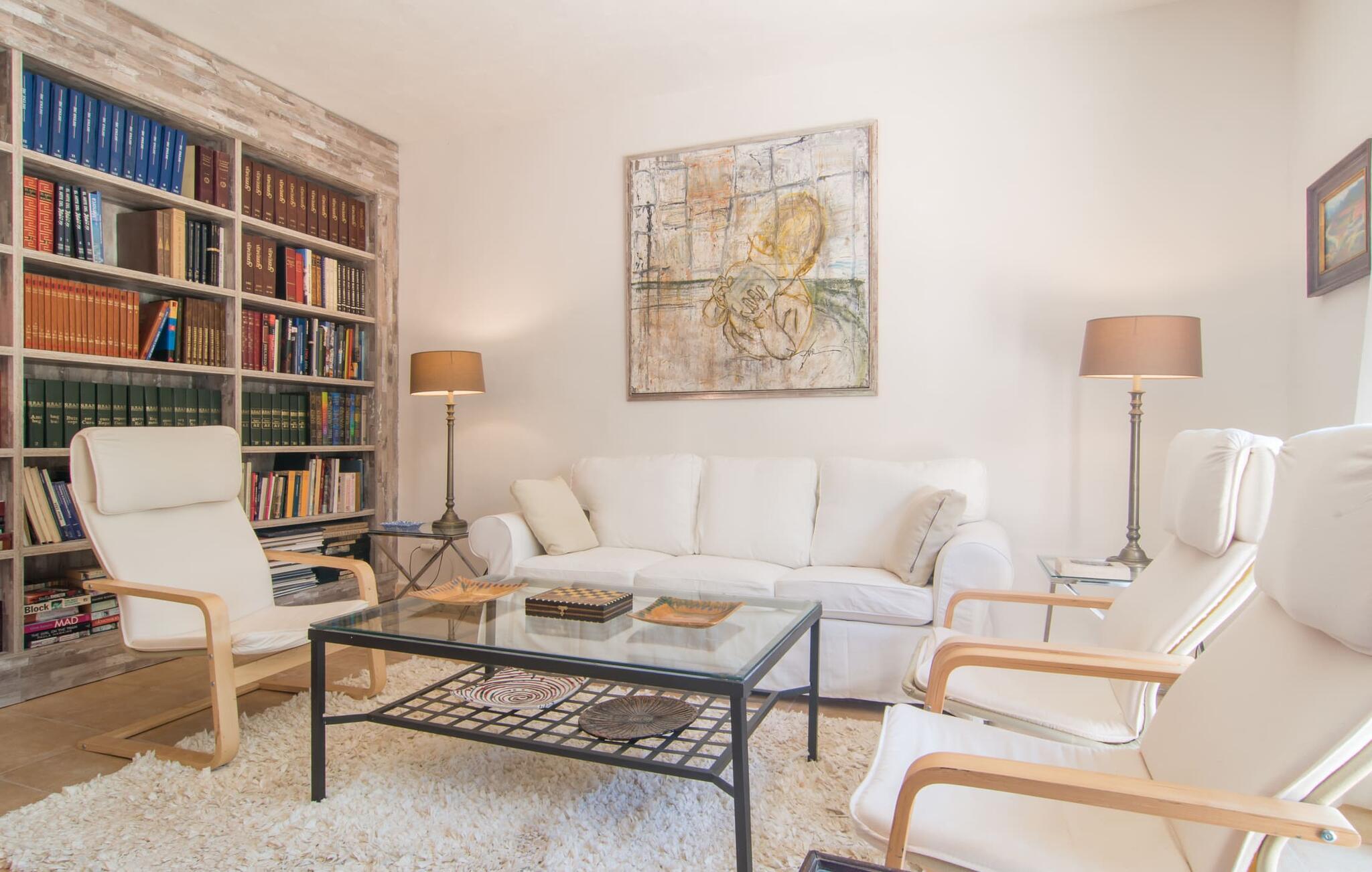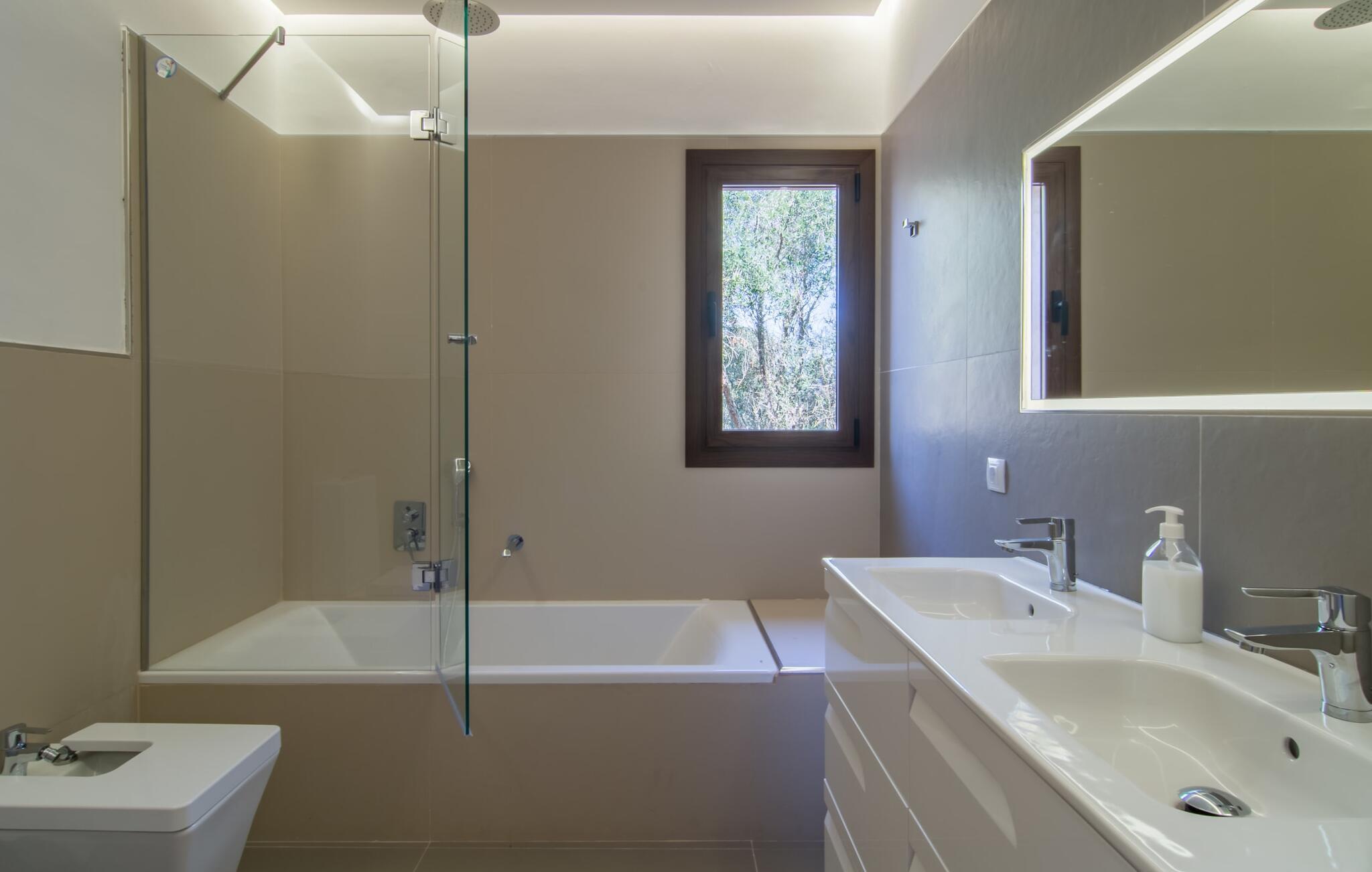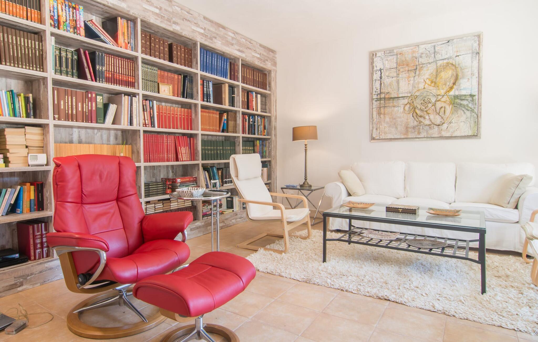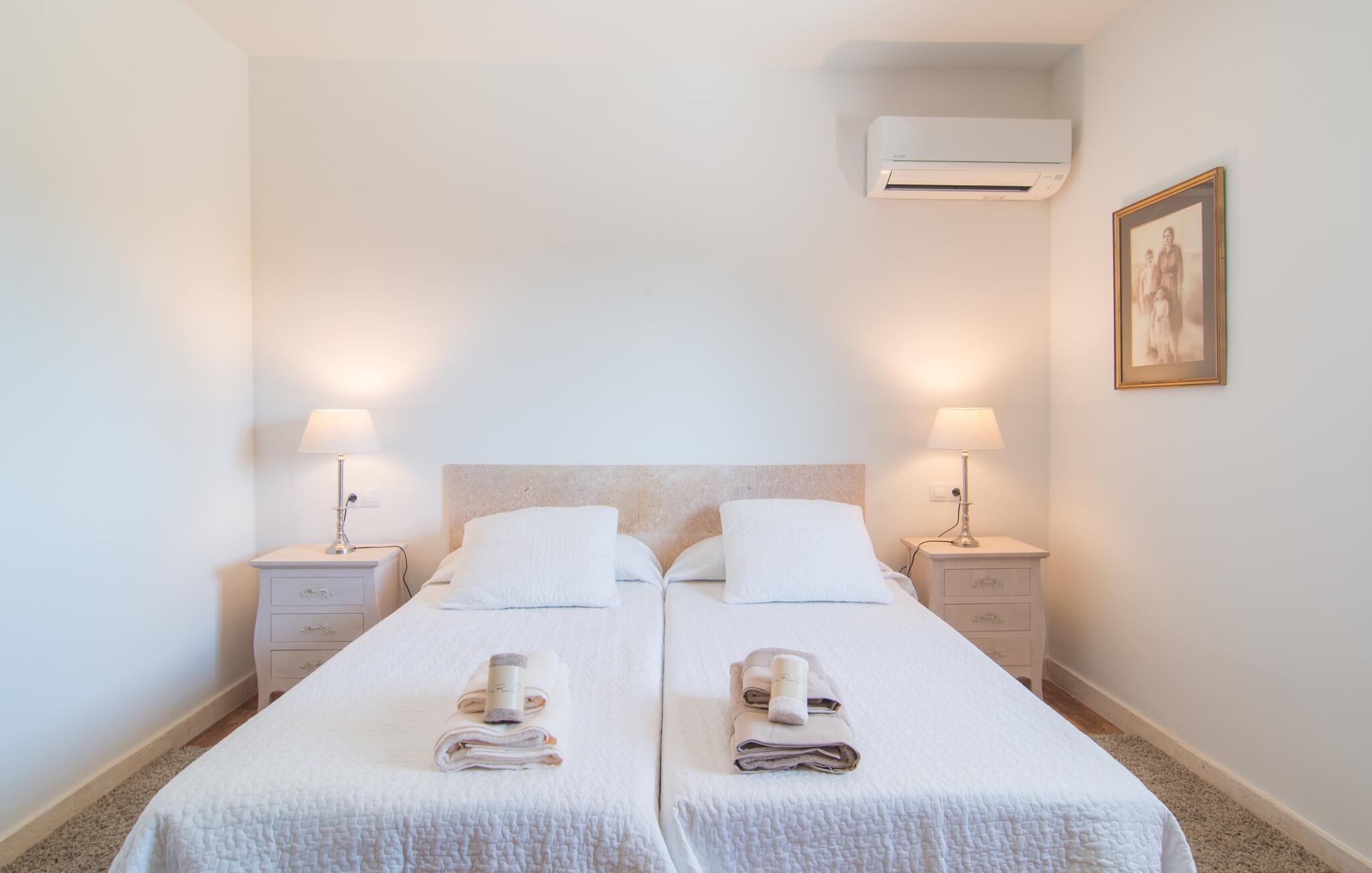 Entspannung ist die Hauptaktivität auf dem Programm, sodass das außergewöhnlich schicke Innen- und Außendesign immer Ihren Bedürfnissen entspricht. Herzstück ist der kombinierte Wohnbereich. Dieser lichtdurchflutete Wohnraum mit bodentiefen Fenstern gliedert sich in ein gemütliches Wohnzimmer mit Sofalandschaft und TV-Ecke, einen stilvollen Essbereich vor einem angenehmen Kamin und eine rustikale Bibliothek, ebenfalls mit Smart-TV. So viele Lieblingsorte zur Auswahl! Terrakotta, Holzböden, geschwungene Decken und „Stuten“ unterstreichen die natürliche Atmosphäre des Innenraums. Diese Qualität entdecken Sie auch in der voll ausgestatteten Küche mit hochwertigen Holzmöbeln. Gleichzeitig ähnelt es einem alten Bauernhaus mit dem zweiten Kamin: Dieser bildete in früheren Zeiten den gesellschaftlichen Mittelpunkt, da er oft der einzige beheizte Raum war. Nach langen, frei gestalteten Tagen stellt sich irgendwann die Müdigkeit ein – Sie können sich dann in eines der insgesamt vier klimatisierten Schlafzimmer zurückziehen, die sich überwiegend im Obergeschoss befinden (ein Schlafzimmer mit Bad befindet sich im Erdgeschoss). Im ersten Stock verfügt jedes der schicken Schlafzimmer mit fantastischem Ausblick auch über ein Badezimmer mit ebenerdiger Dusche oder Badewanne. Auf dem großzügigen Balkon mit Überdachung, von dem Sie den Garten und den Pool überblicken können, haben Sie einen idealen Rückzugsort zum Lesen eines guten Buches. Seien wir mal ehrlich – fällt Ihnen irgendetwas ein, bei dem Sie Kompromisse eingehen müssten? Wir sind von „Can Madis“ uneingeschränkt begeistert.