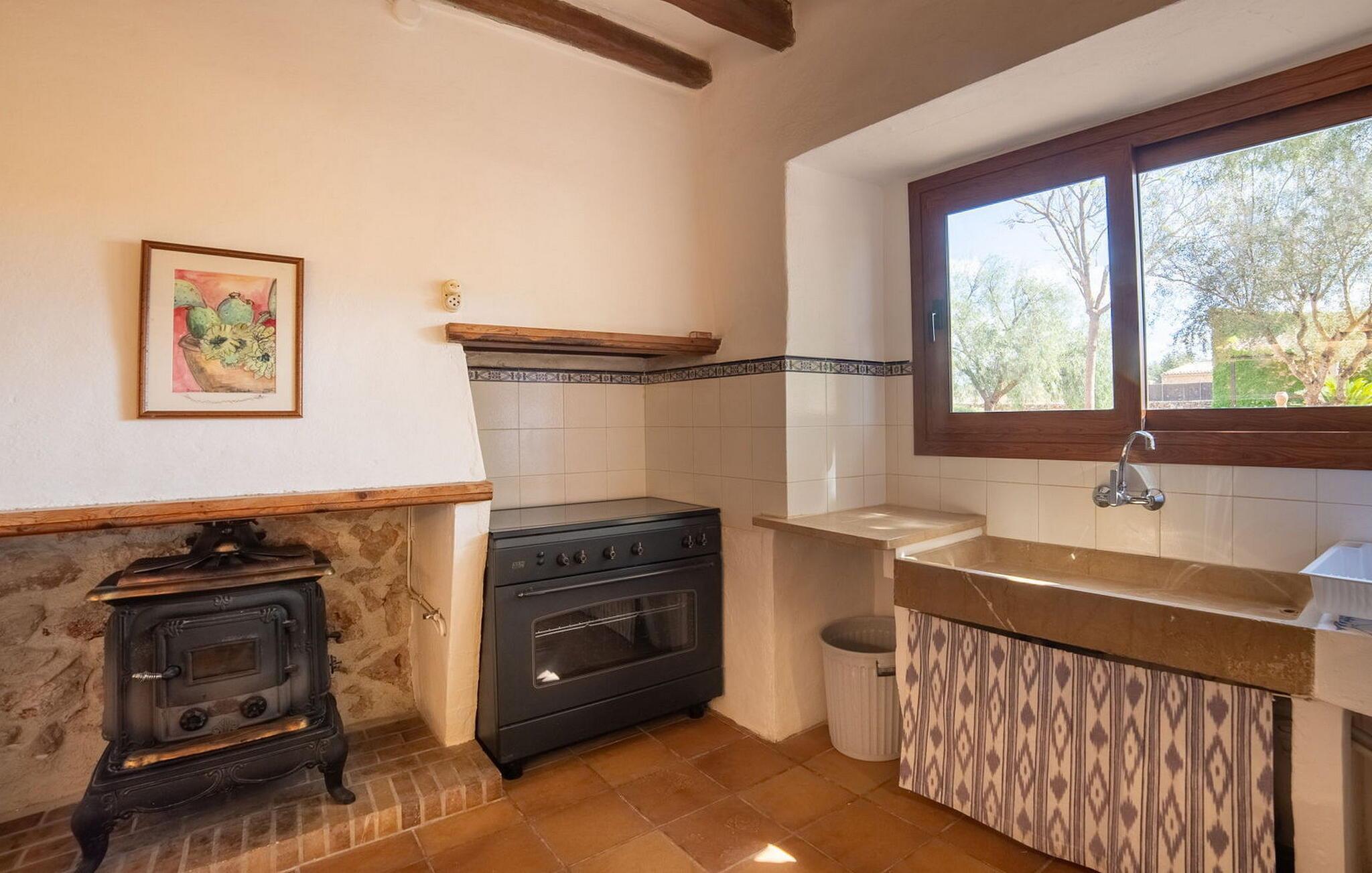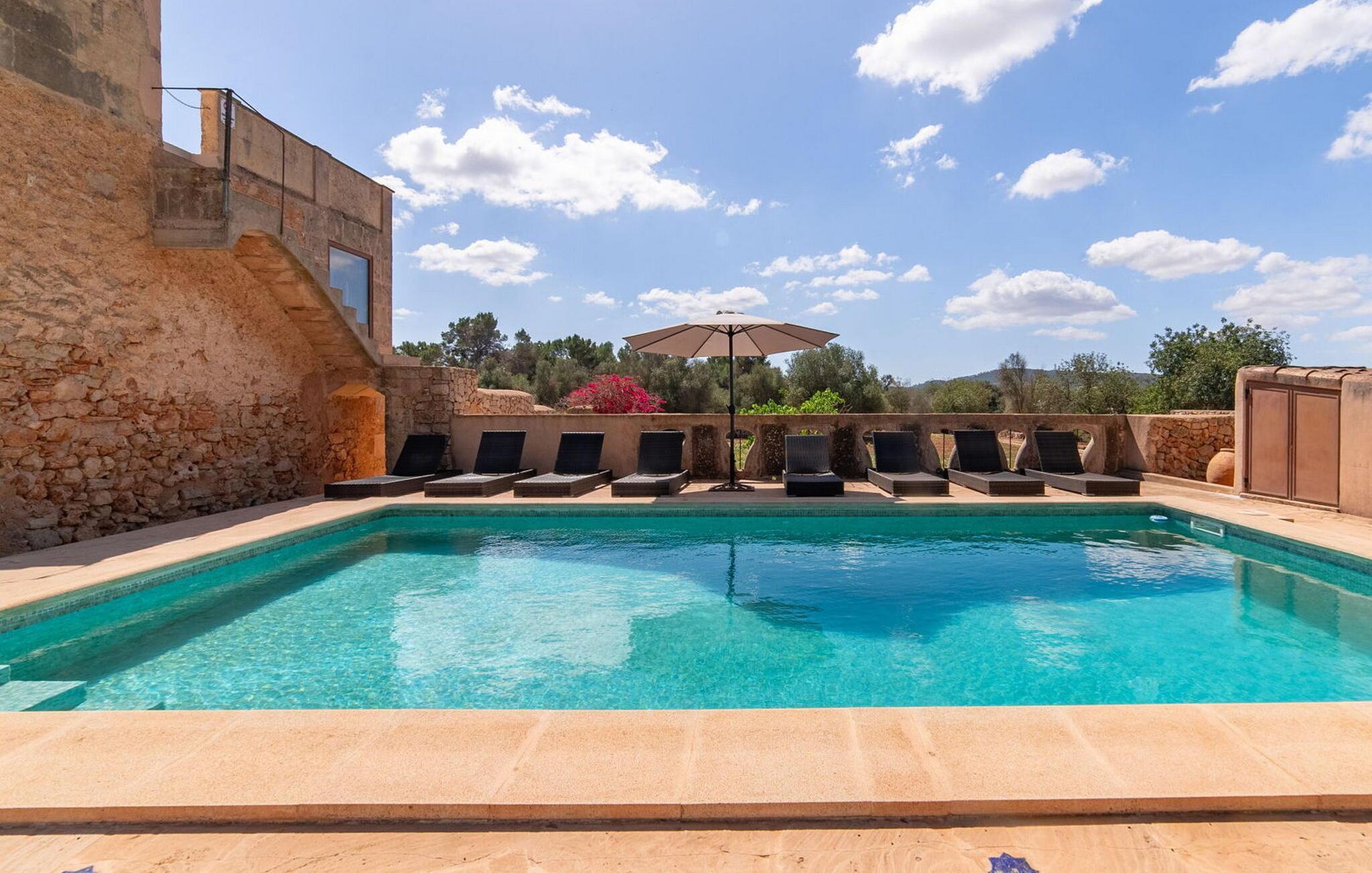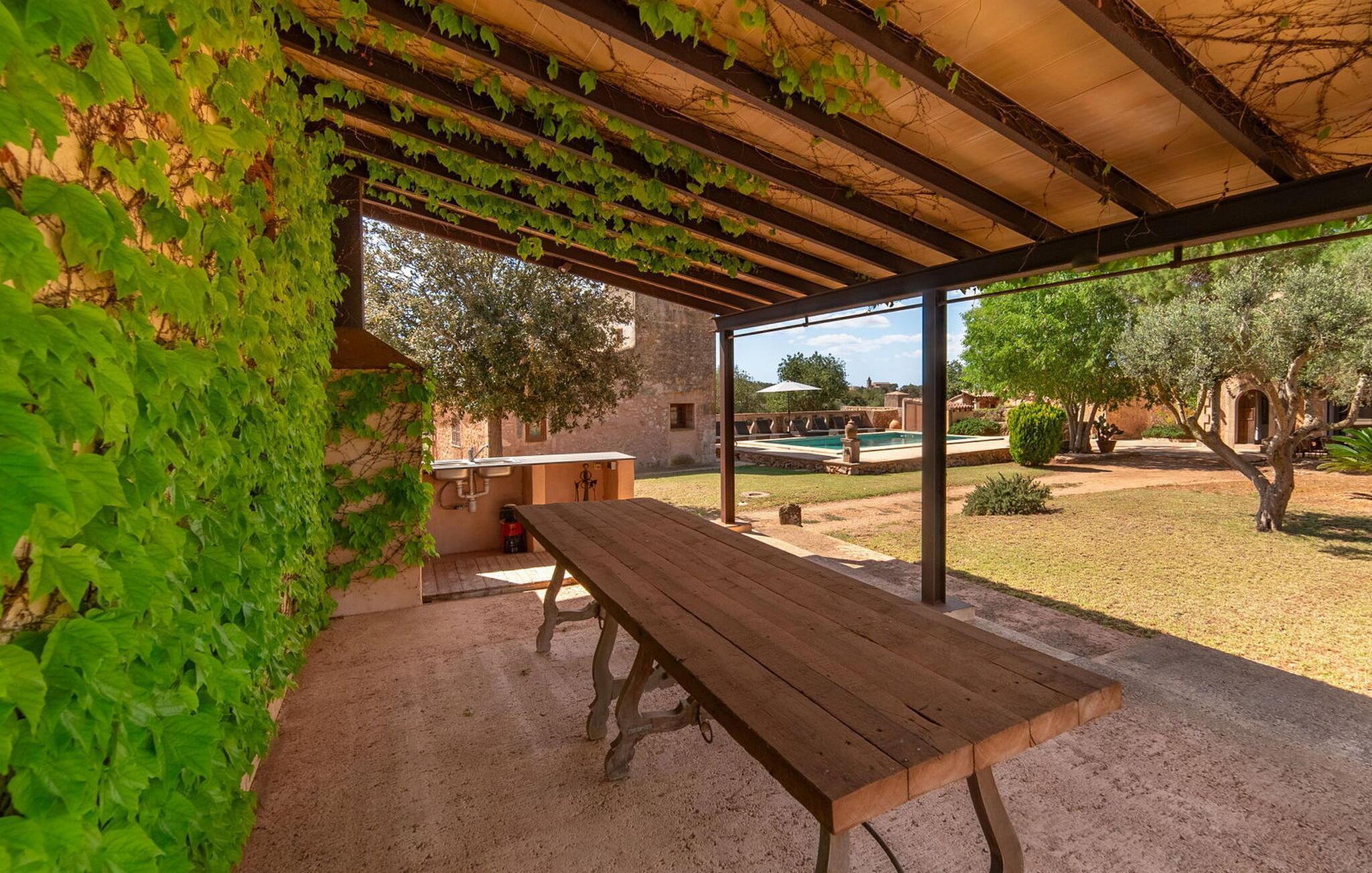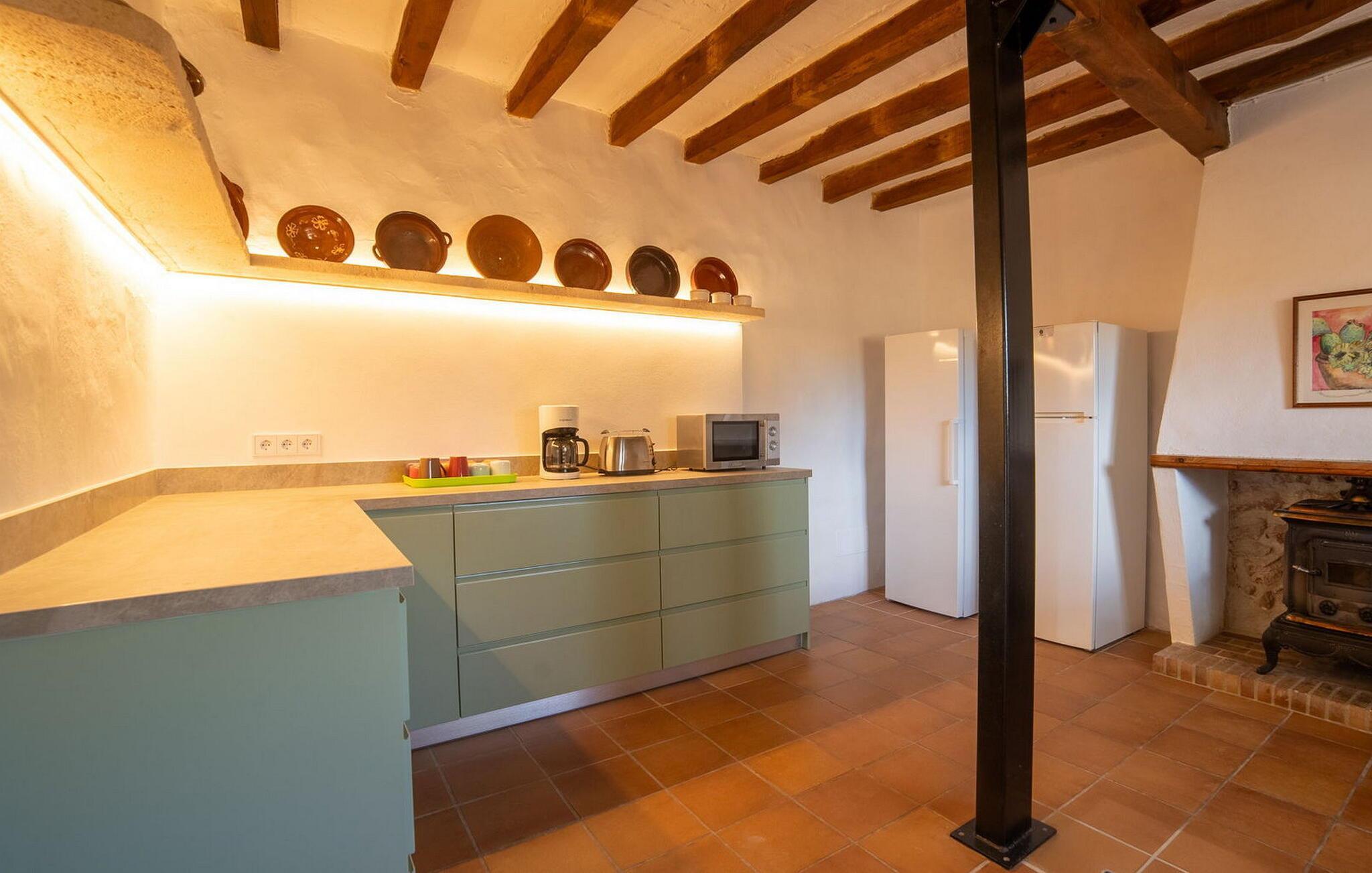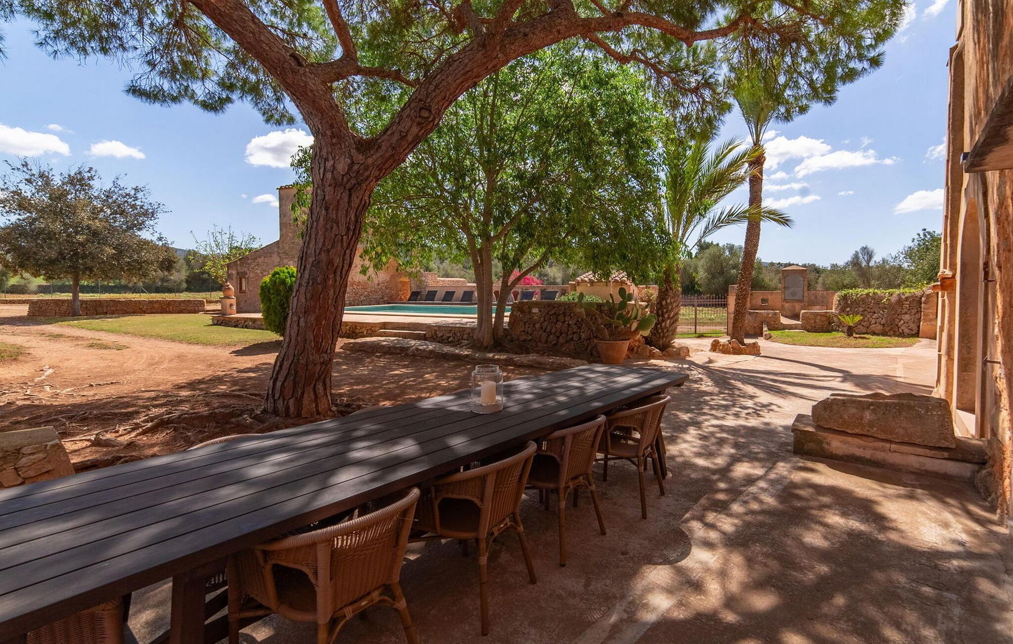 Hügeliges Land, freundliche Menschen, Ruhe, viel Natur: Und mittendrin wartet auf unglaublichen 280.000 m² ein aufwendig restauriertes, historisches Landgut darauf, zu Fuß oder mit dem Fahrrad erkundet zu werden. Wenn Sie schon immer einmal wie ein Adel leben wollten, dann kann Ihnen „Can Menut“ diesen Wunsch erfüllen. Die rustikale Villa sieht aus wie eine kleine Festung mit langer Auffahrt, Wall und mehreren Gebäuden, darunter das separate Gästehaus, die überdachte Grillterrasse mit kleinem Kühlschrank und ein Außenbad mit Dusche und WC. Absolute Ruhe und Privatsphäre, der Puls der Geschichte, mediterraner Lebensstil und der Blick vom Pool aus sanften Hügeln und Feldern bis hin zum Bergkloster San Salvador sind ein Luxus, den man nicht bepreisen kann. Wenn man sich zum gemeinsamen Essen an den langen Holztisch vor altem Mauerwerk setzt, der Tisch sich unter der Last der Tapas, Oliven, Brot, gegrilltem Fisch und Karaffen Wein sowie dem Lachen beugt, ist das Leben einfach schön und der Urlaub ist genauso lecker, wie er sein sollte!