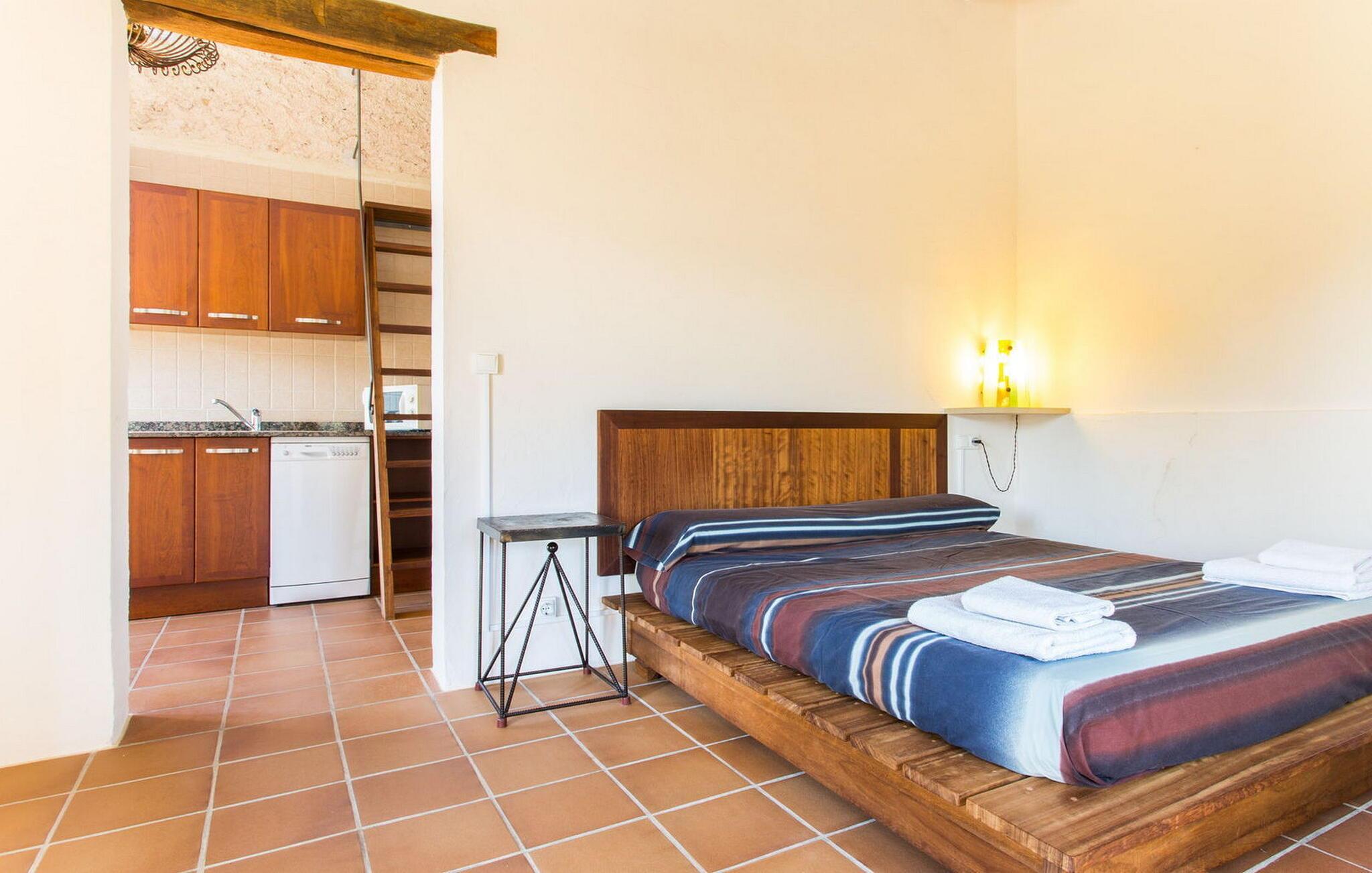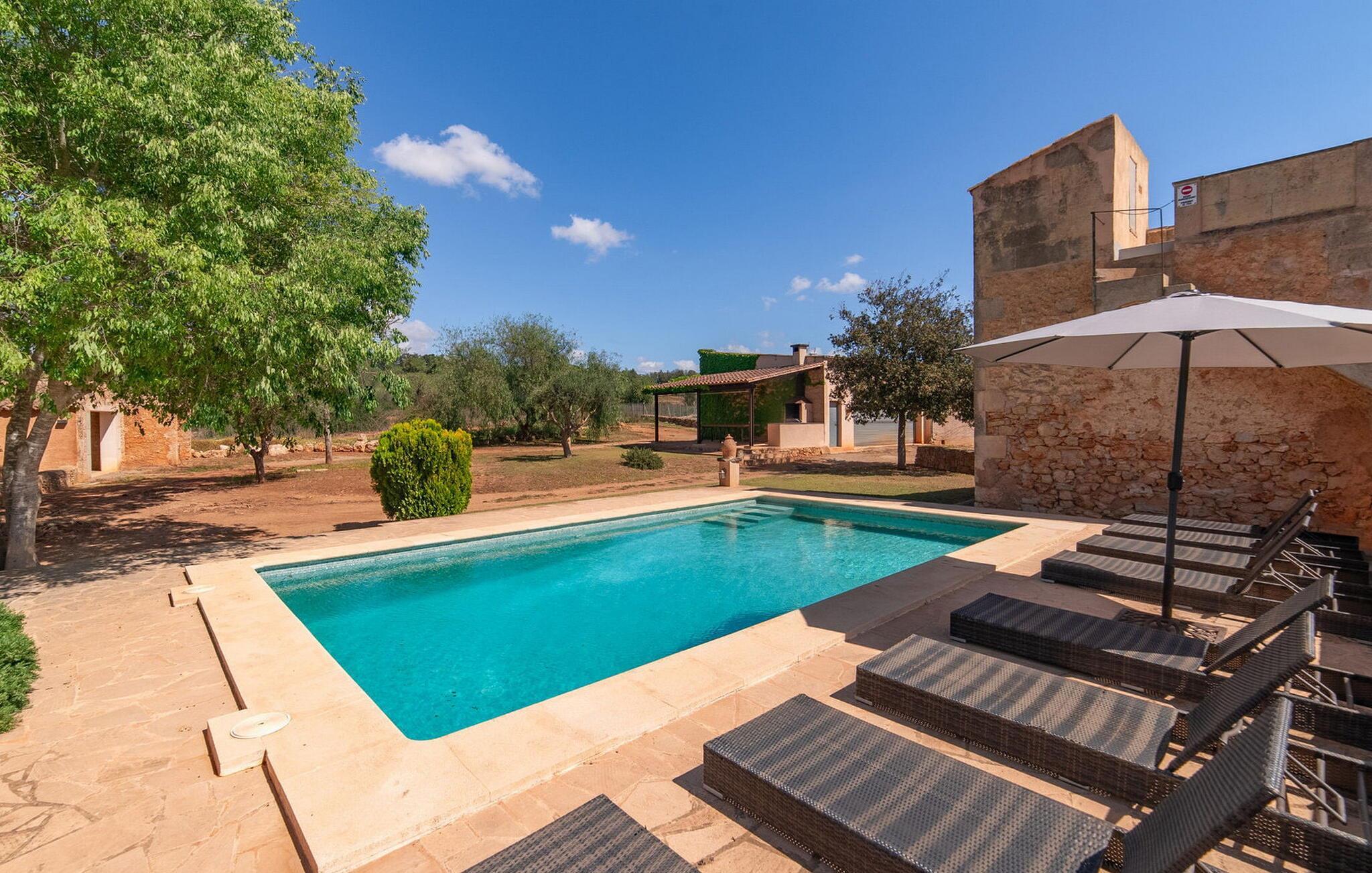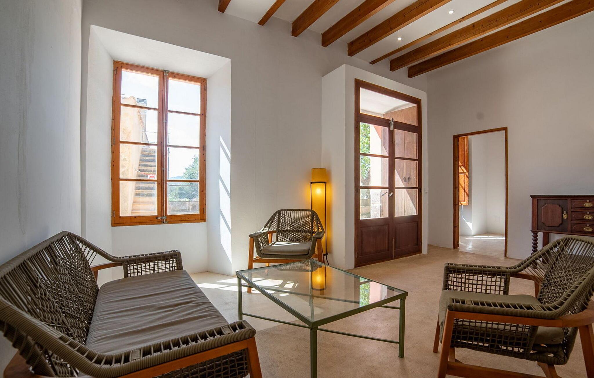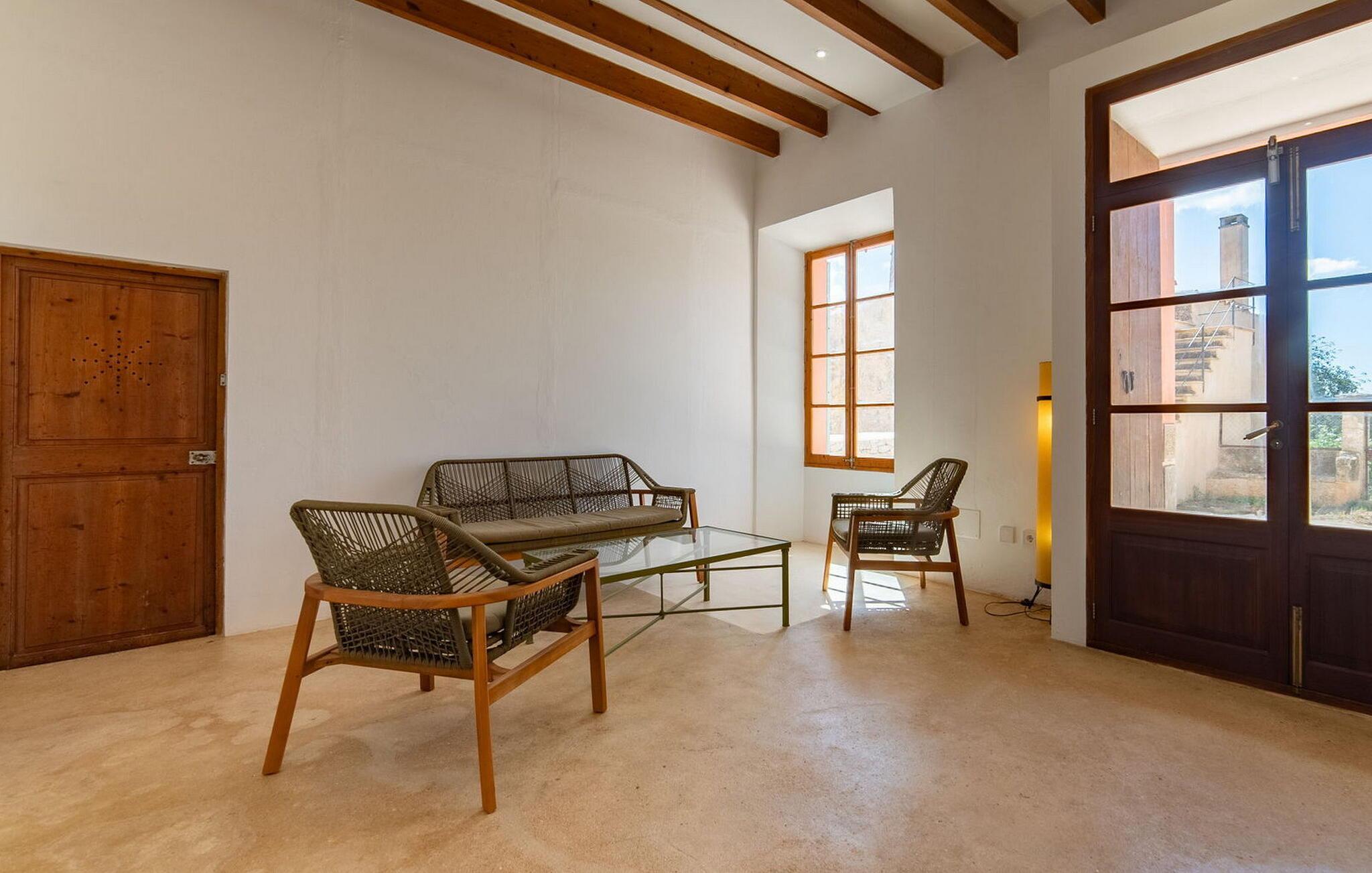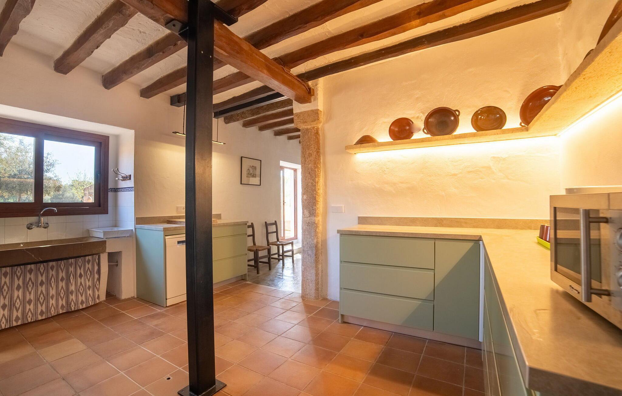Hügeliges Land, freundliche Menschen, Ruhe, viel Natur: Und mittendrin wartet auf unglaublichen 280.000 m² ein aufwendig restauriertes, historisches Landgut darauf, zu Fuß oder mit dem Fahrrad erkundet zu werden. Wenn Sie schon immer einmal wie ein Adel leben wollten, dann kann Ihnen „Can Menut“ diesen Wunsch erfüllen. Die rustikale Villa sieht aus wie eine kleine Festung mit langer Auffahrt, Wall und mehreren Gebäuden, darunter das separate Gästehaus, die überdachte Grillterrasse mit kleinem Kühlschrank und ein Außenbad mit Dusche und WC. Absolute Ruhe und Privatsphäre, der Puls der Geschichte, mediterraner Lebensstil und der Blick vom Pool aus sanften Hügeln und Feldern bis hin zum Bergkloster San Salvador sind ein Luxus, den man nicht bepreisen kann. Wenn man sich zum gemeinsamen Essen an den langen Holztisch vor altem Mauerwerk setzt, der Tisch sich unter der Last der Tapas, Oliven, Brot, gegrilltem Fisch und Karaffen Wein sowie dem Lachen beugt, ist das Leben einfach schön und der Urlaub ist genauso lecker, wie er sein sollte!