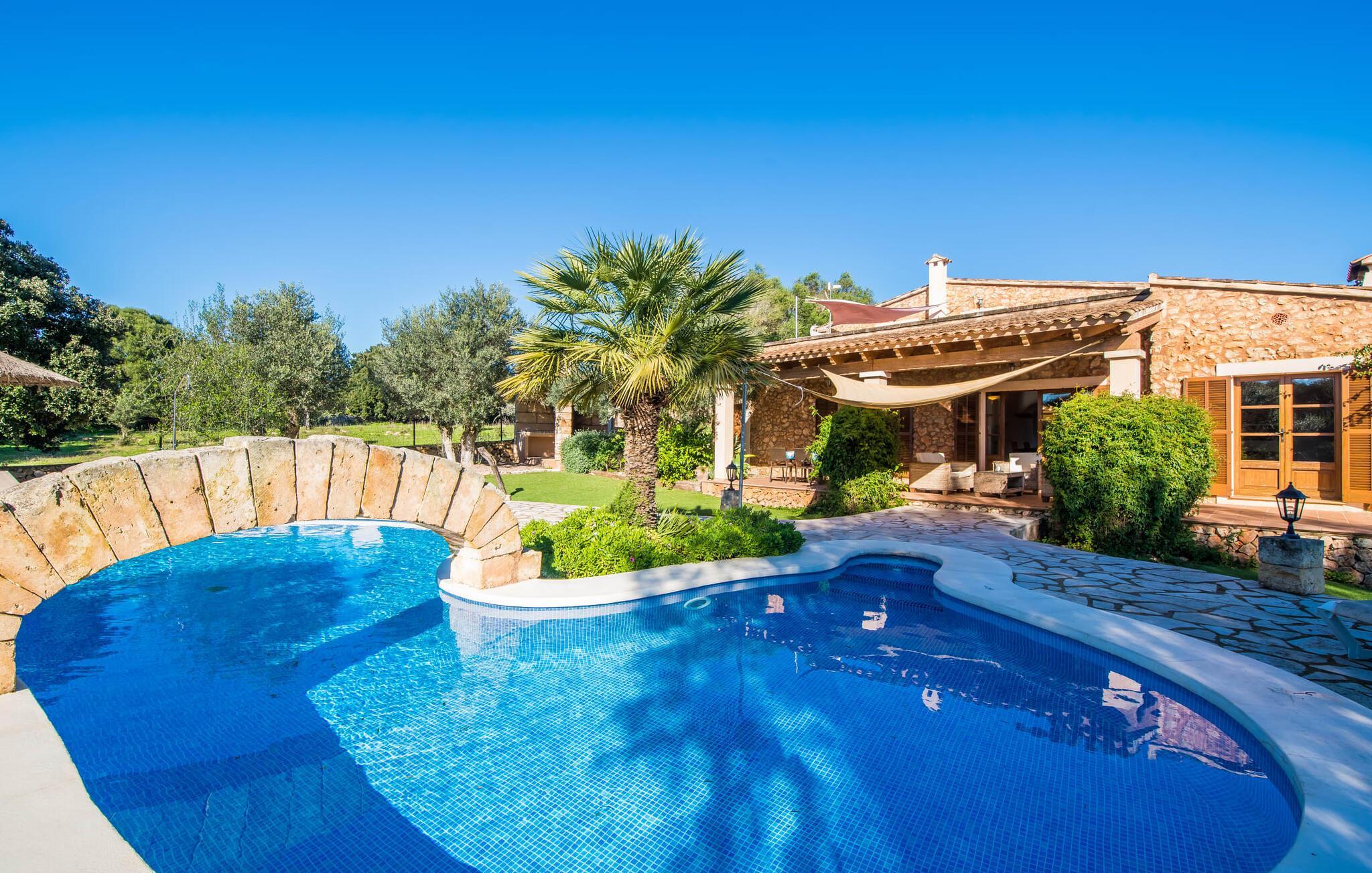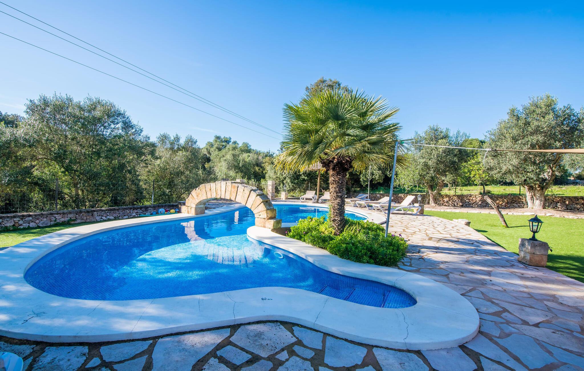 Die Finca "Can Revell" bietet mit ihrem attraktiven Garten mit einer Steinbrücke im römischen Stil über den Pool, die einen optisch beeindruckenden Mittelpunkt bildet, ein einzigartiges Urlaubserlebnis.