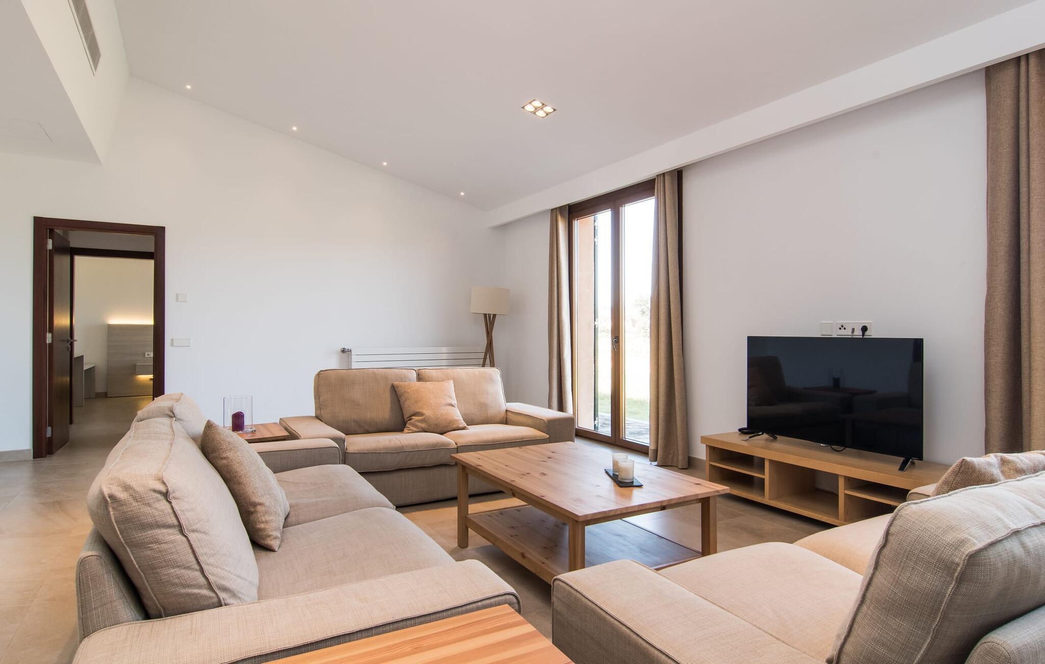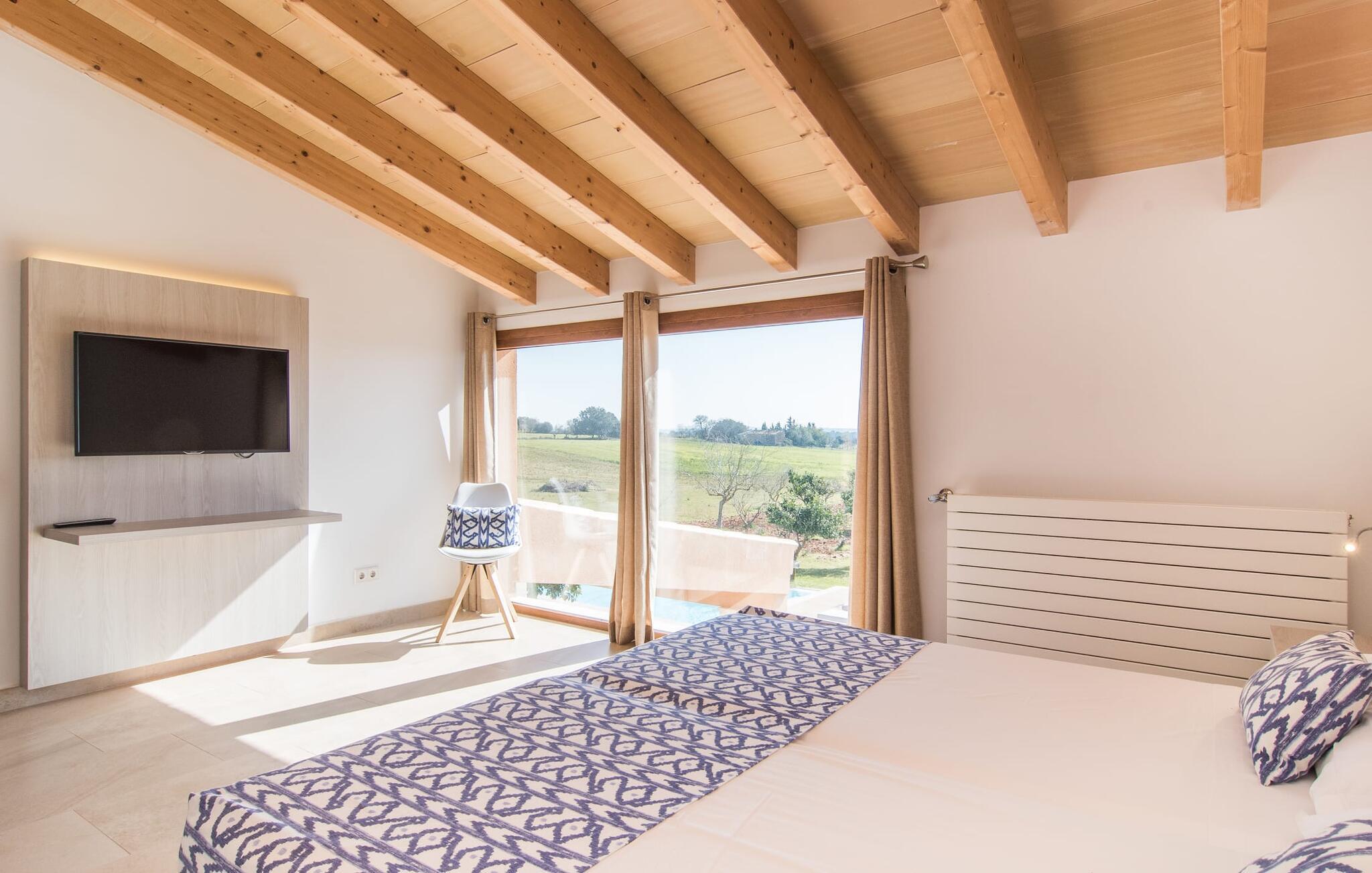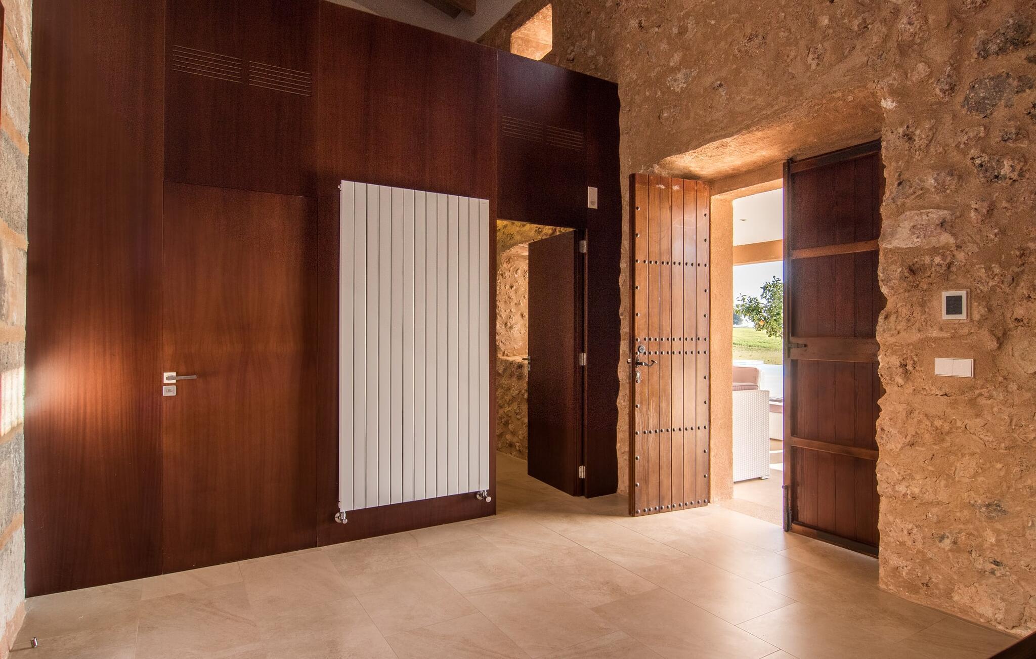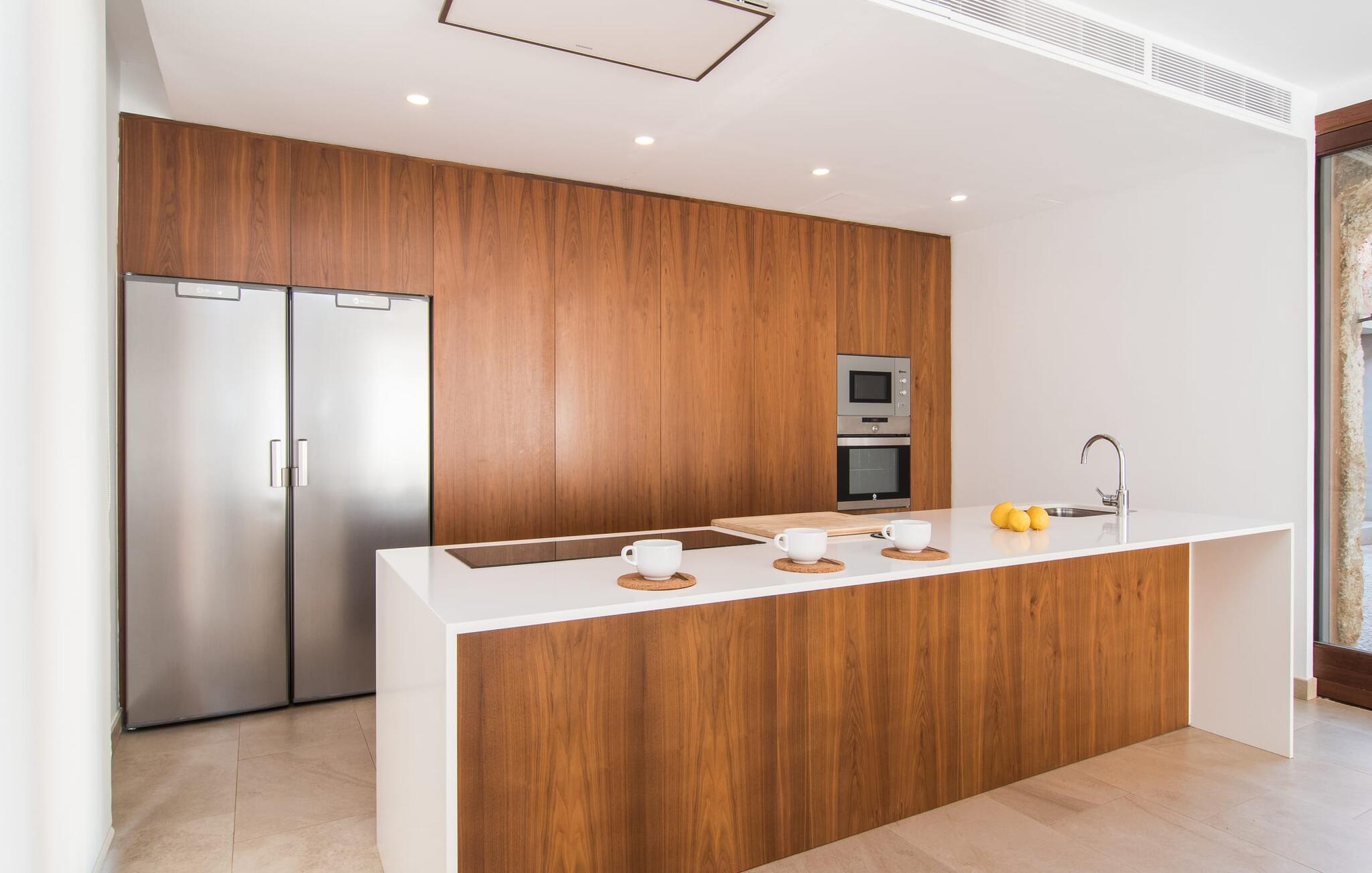 Das Interieur von „Can Tano“ lässt das Herz eines jeden Interior-Design-Liebhabers höher schlagen: Hier wurde aus den Ruinen eines alten Gebäudes etwas völlig Neues geschaffen – und geschickt damit gespielt. Puristisches Design trifft auf rustikale Natursteinwände, weiße Wände in Kombination mit großen Fenstern und geschickt platzierte Deckenspots lassen das Licht herein. Sowohl bei den Möbeln als auch bei den Zimmerdecken und einigen Einrichtungsgegenständen setzt Holz in verschiedenen Farbtönen Akzente, um Farbnuancen zu setzen. Eine Besonderheit ist der Innenhof, der durch alle Räume im Erdgeschoss – bis auf den Eingangsbereich mit dem Gäste-WC – separat zugänglich ist. Dazu gehören die stilvolle Küche mit Holzfronten und einer Theke in einem warmen Braunton, die Natursteinwand und hochwertige Geräte – vom großen Kühlschrank bis zum Einbaubackofen auf Augenhöhe. Im angrenzenden Essbereich lädt ein langer Tisch mit passenden Bänken zum Festessen ein. Nebenan finden Sie das großzügige Wohnzimmer mit drei gemütlichen Sofas, auf denen Sie es sich gemütlich machen können. Apropos Komfort: Diese Eigenschaft gilt auch für die insgesamt sechs dezent eingerichteten Doppelzimmer, davon fünf im Erdgeschoss und eines im Obergeschoss, alle mit eigenem Bad – Privatsphäre garantiert!