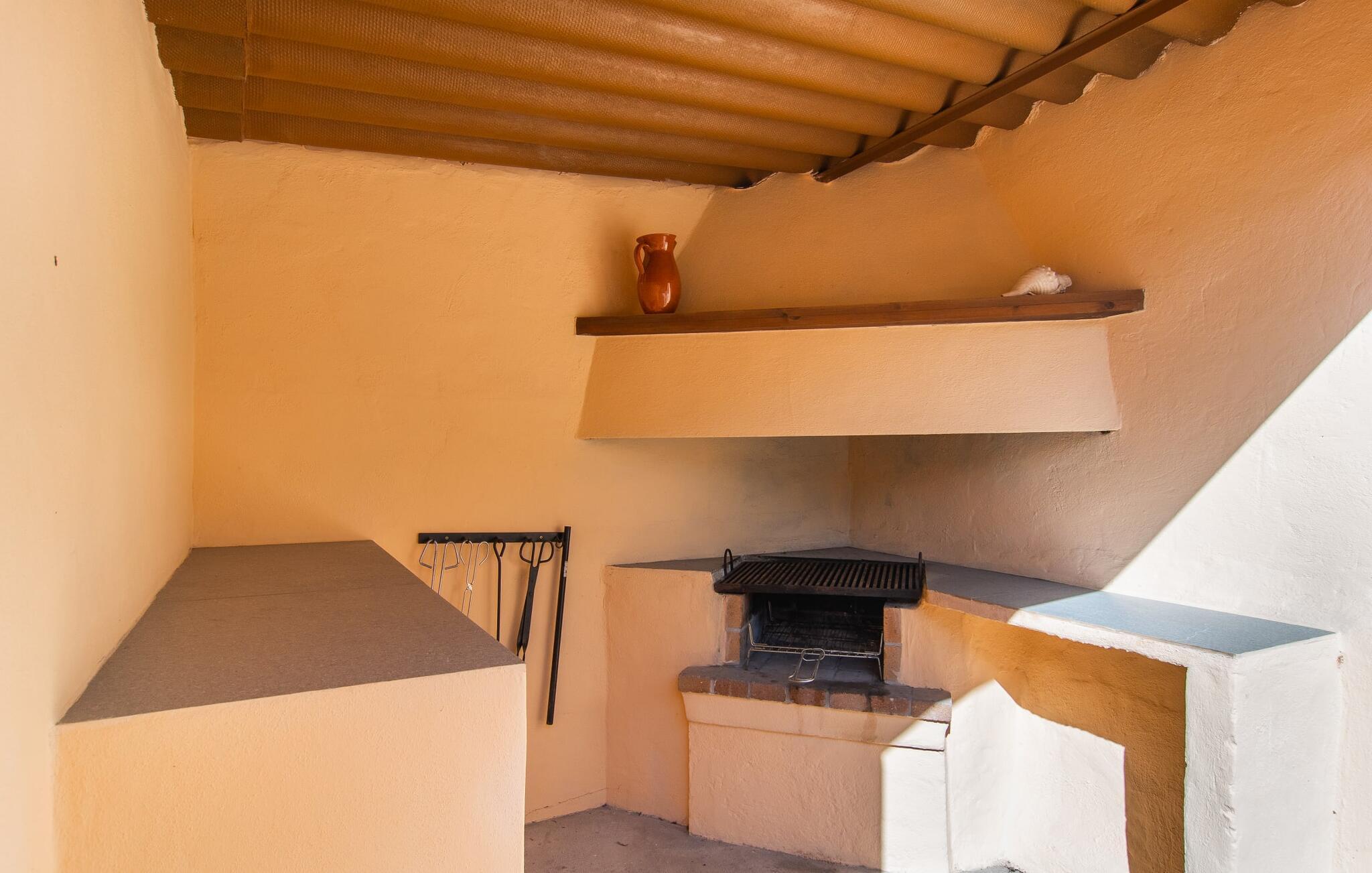 Im Inneren ist "Can Tiró" mit einer sorgfältig kuratierten Mischung aus traditionellen und modernen Elementen ebenso einladend. Dunkles Holz ergänzt strahlend weiße Wände und Fliesenböden werden mit charmanten Wohnaccessoires kombiniert. Alle Zimmer befinden sich auf einer Ebene. Der offene Wohn- und Essbereich ermöglicht es Ihnen, sich auf dem bequemen Sofa zu entspannen, während Sie den Fernseher genießen, wobei ein wunderschön geschnitzter Holzbogen zum Essbereich führt. Die kleine, aber voll ausgestattete Küche bietet zusätzliche Sitzgelegenheiten an der schicken Theke, perfekt für ein schnelles Frühstück oder ein Glas Wein beim Kochen. Zwei Schlafzimmer und ein Bad en Suite vervollständigen den Wohnraum.